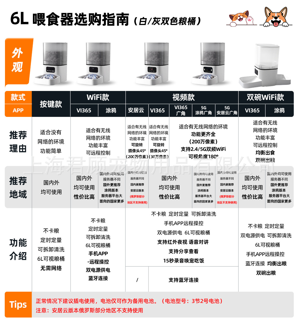 蓝牙连接 可手动调节摄像头角度 可见食盆