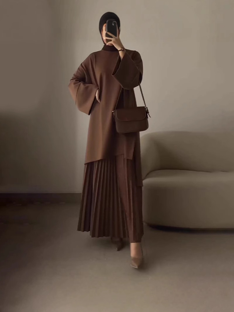 2024 년 가을 유럽과 미국의 대외 무역 여성 승무원 느슨한 캐주얼 탑 복고풍 우아한 주름 치마 세트 여성