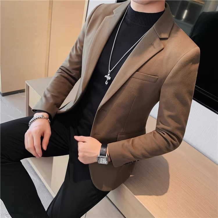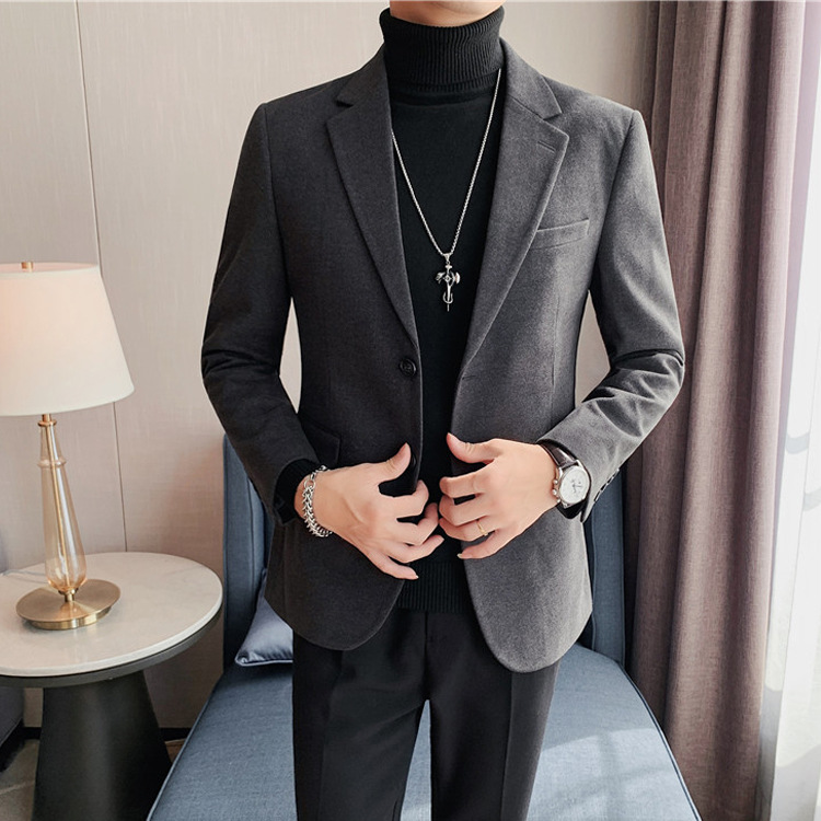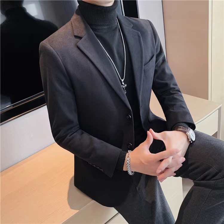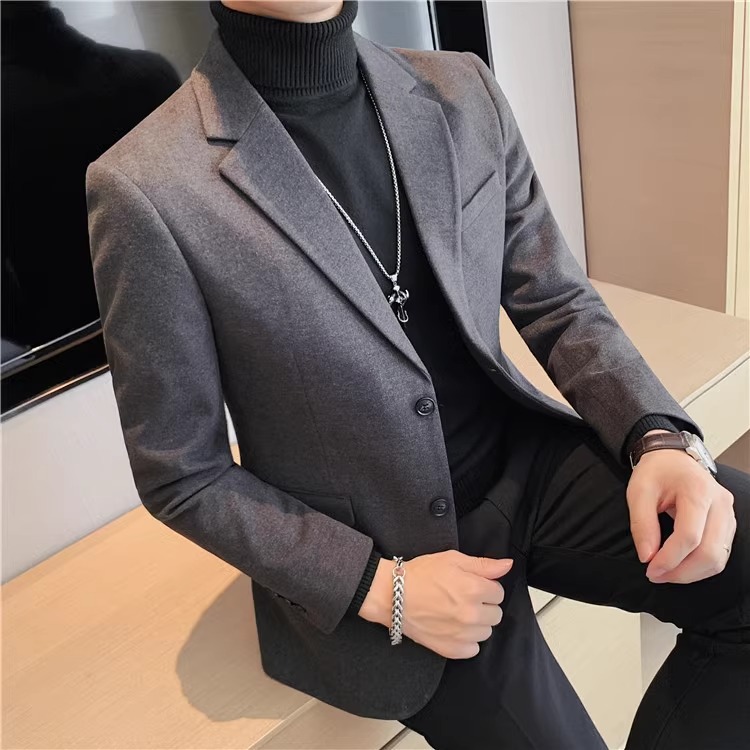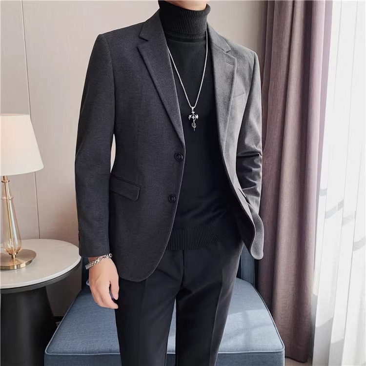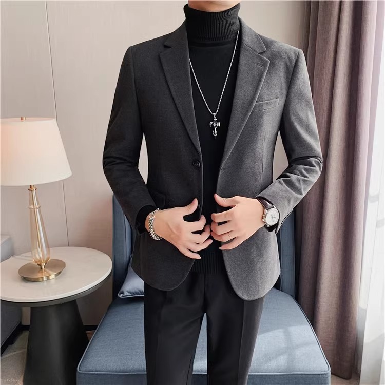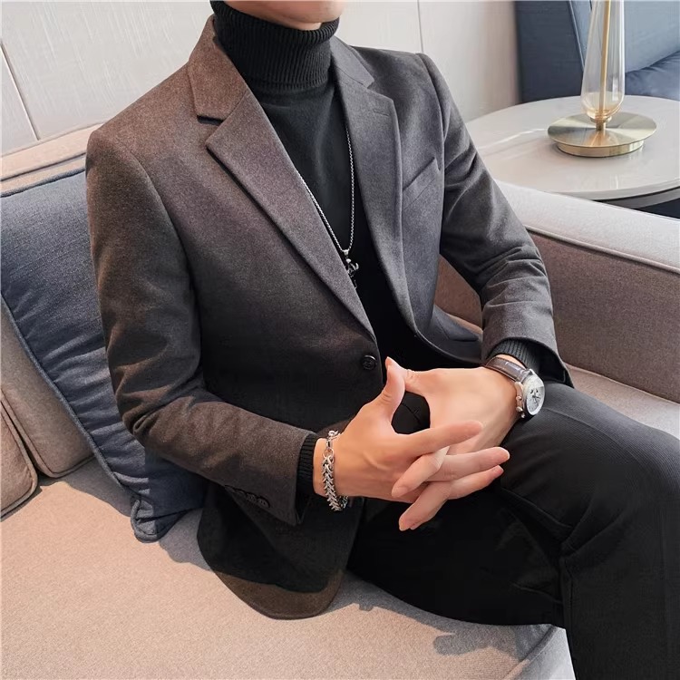 모직 세트 재킷 남자 봄과 가을 2024 새로운 높은 감각 남성 비즈니스 재킷 캐주얼 세트 싱글 피스