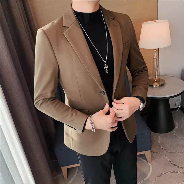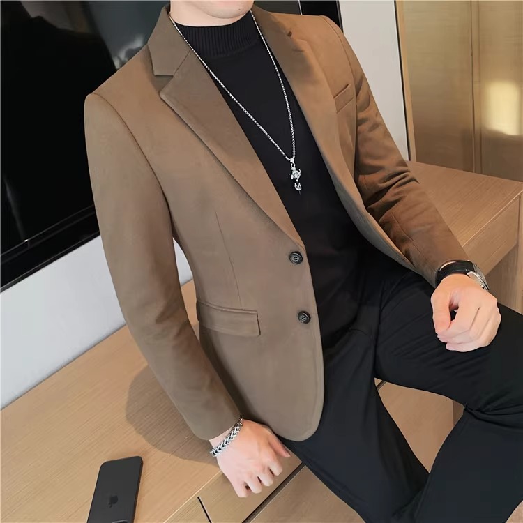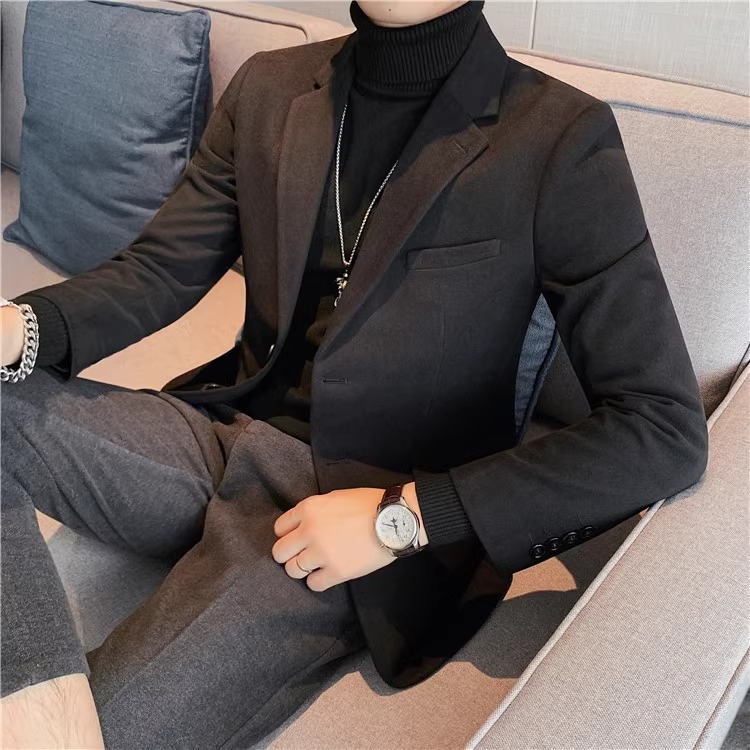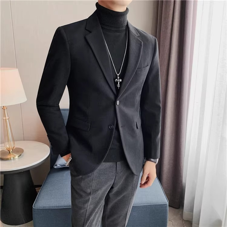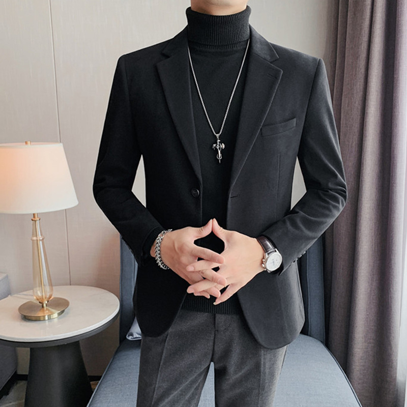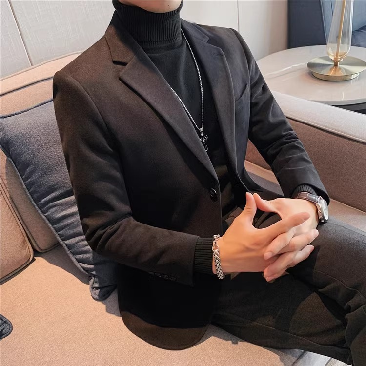 모직 세트 재킷 남자 봄과 가을 2024 새로운 높은 감각 남성 비즈니스 재킷 캐주얼 세트 싱글 피스