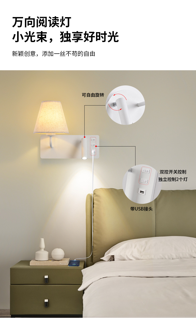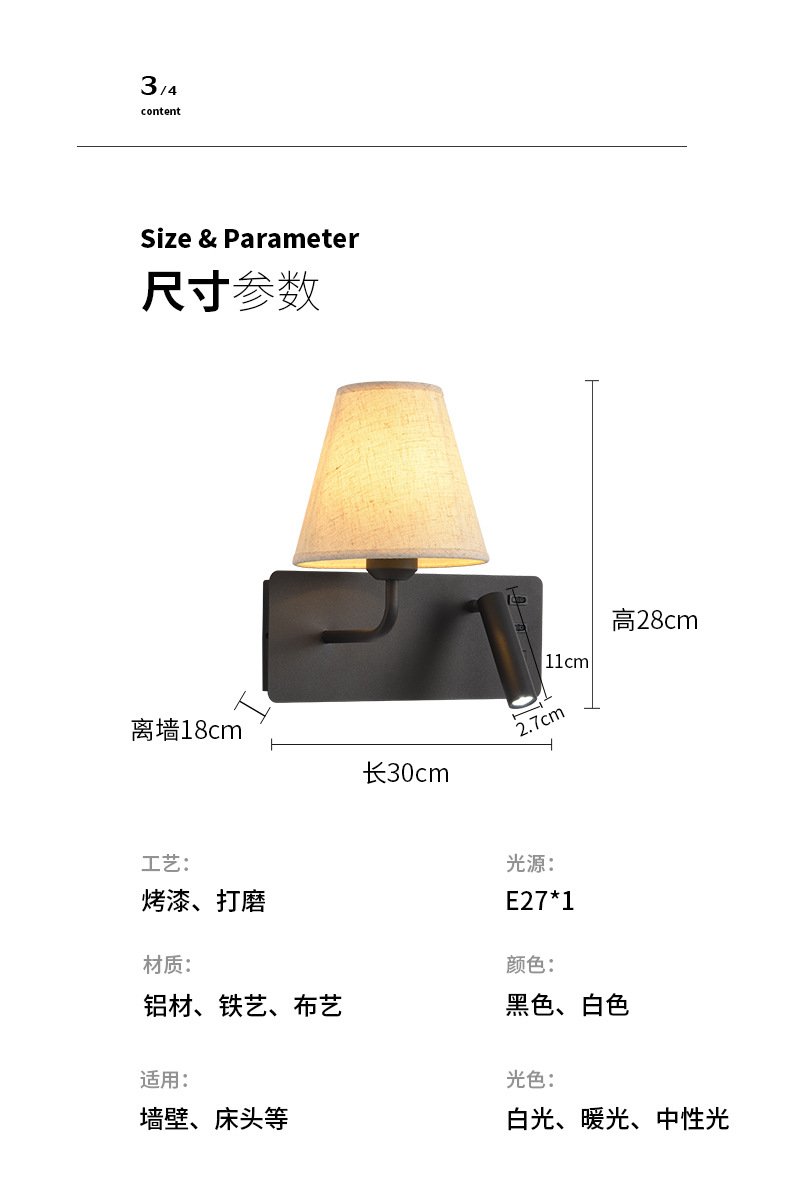 북유럽풍 창의적인 침실 침대등, 모던하고 심플한 복도 계단 벽 배경벽 LED 벽등 벽걸이형