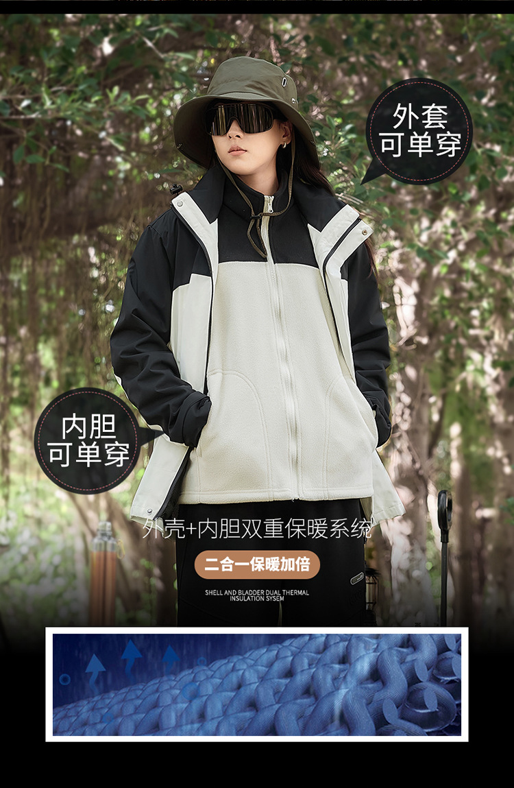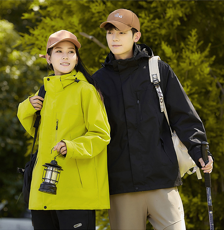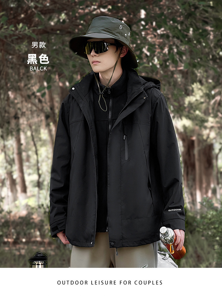 새로운 패션 브랜드 3 대 1 분리 가능한 야외 커플 등산 세트 방풍 방풍 스포츠 재킷 남성용 윈드 브레이커 재킷