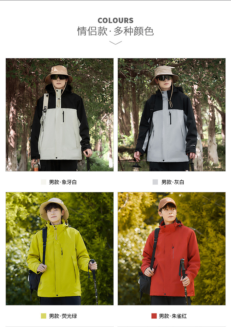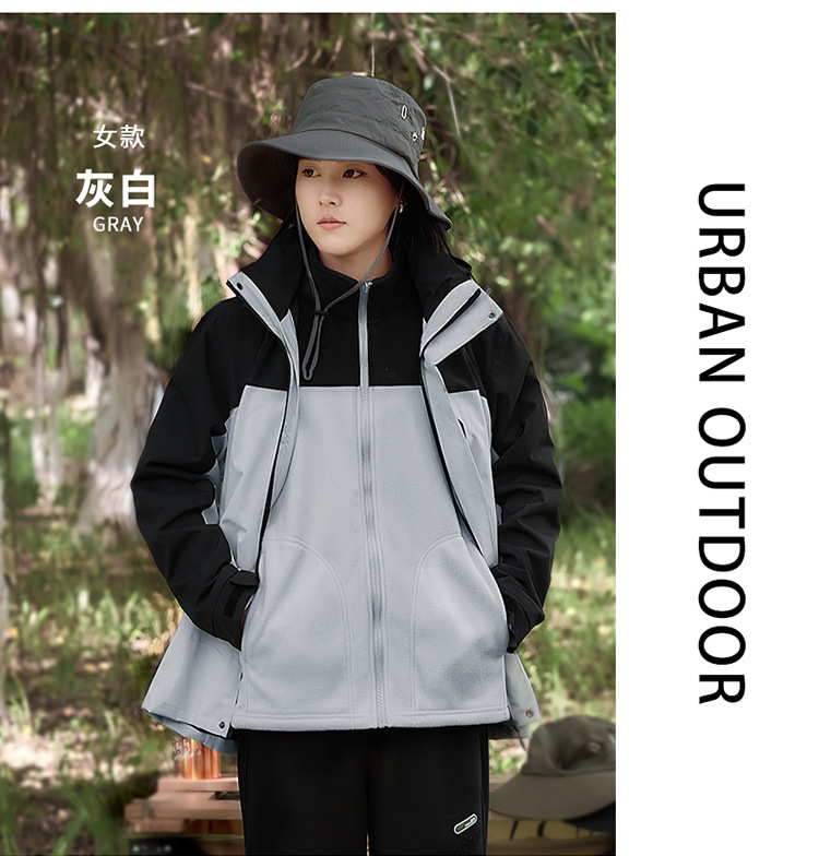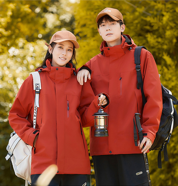 새로운 패션 브랜드 3 대 1 분리 가능한 야외 커플 등산 세트 방풍 방풍 스포츠 재킷 남성용 윈드 브레이커 재킷스토어 가기