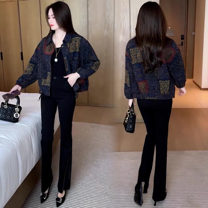 패셔너블한 프린트 숏 자켓, 2025년 봄/가을 여성 신상, 슬림핏, 몸매를 가려주는, 작은 키에도 잘 어울리는 만능 자켓 상의