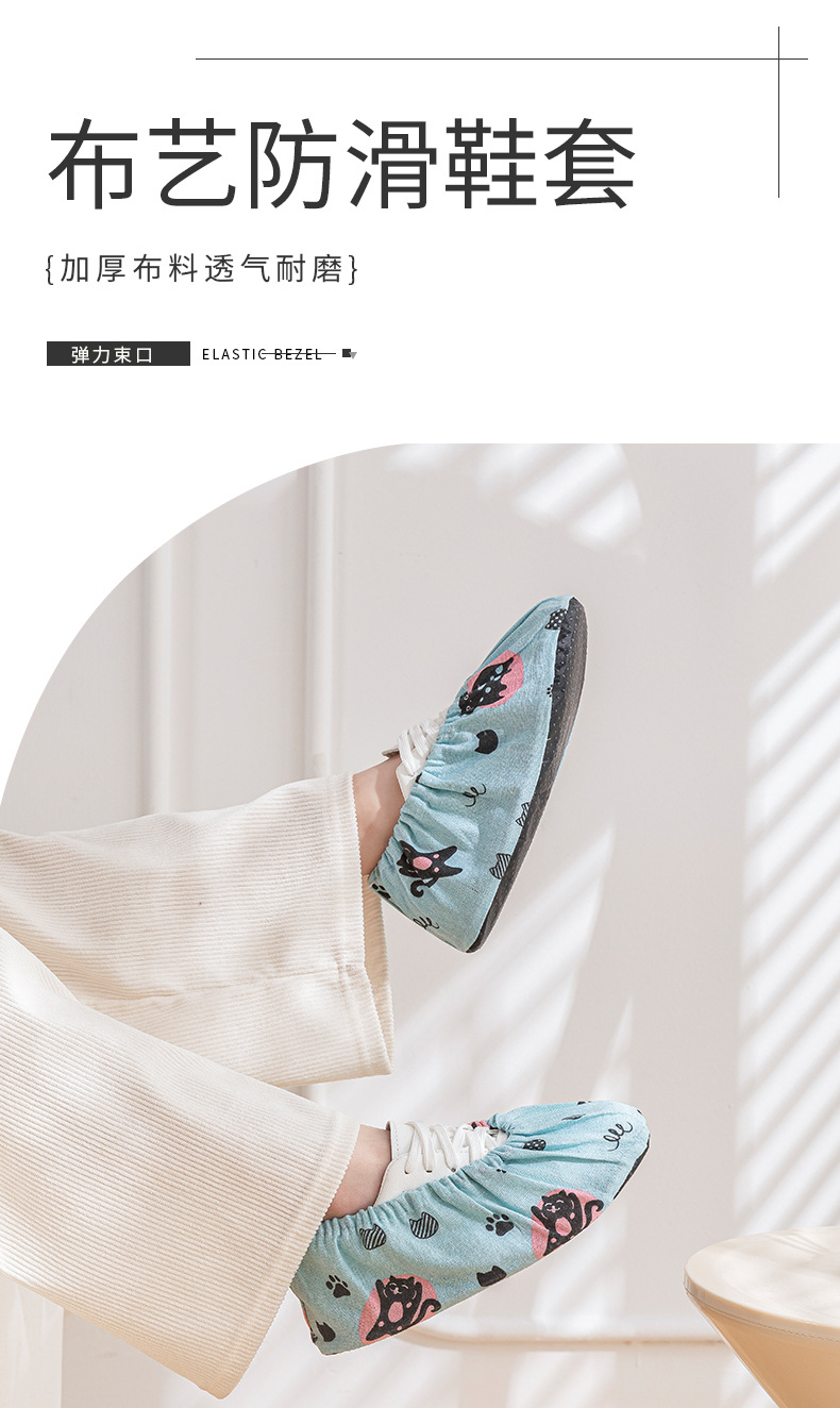 신발 커버 가구 재발 성 세척 가능한 캔버스 인쇄 천 신발 커버 어린이 만화 미끄럼 방지 바닥 학생 컴퓨터 룸 헝겊 발 커버