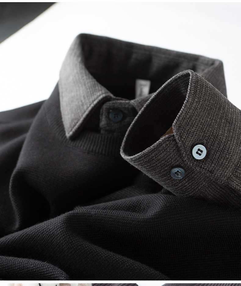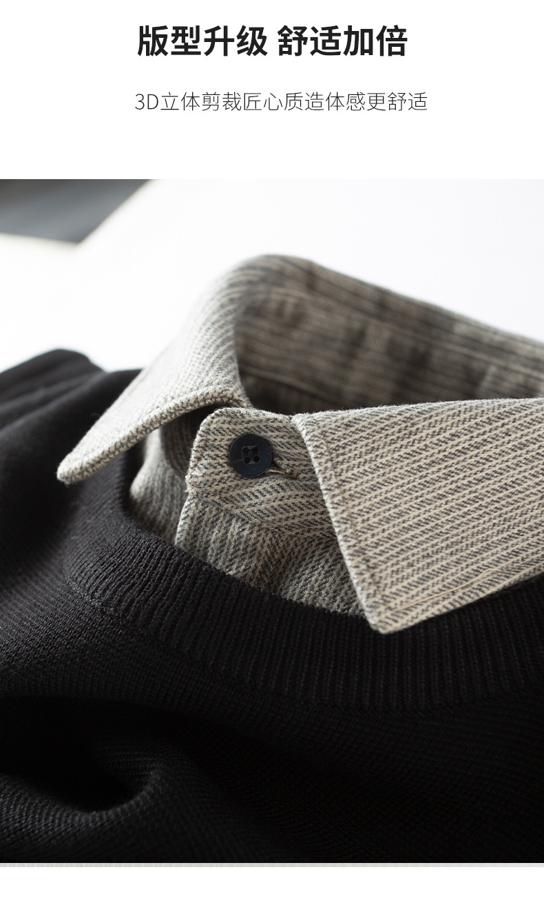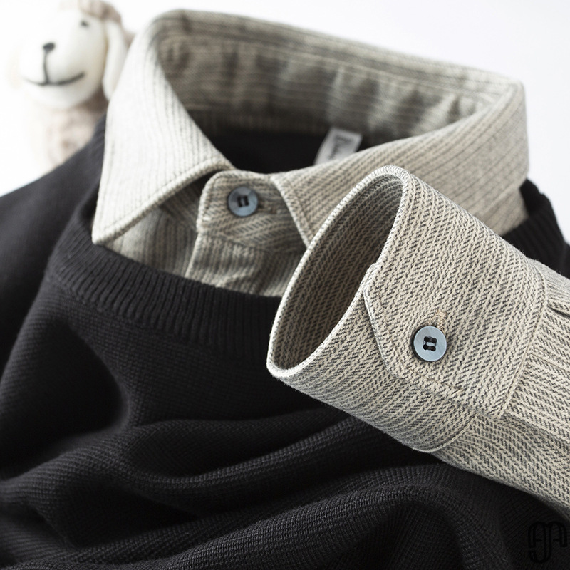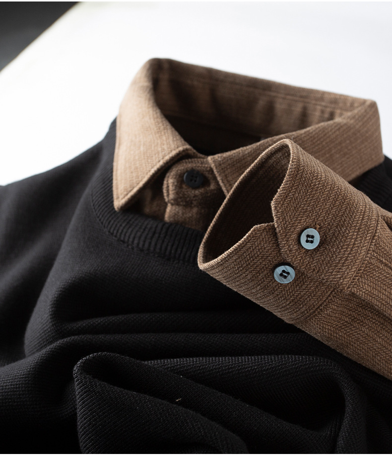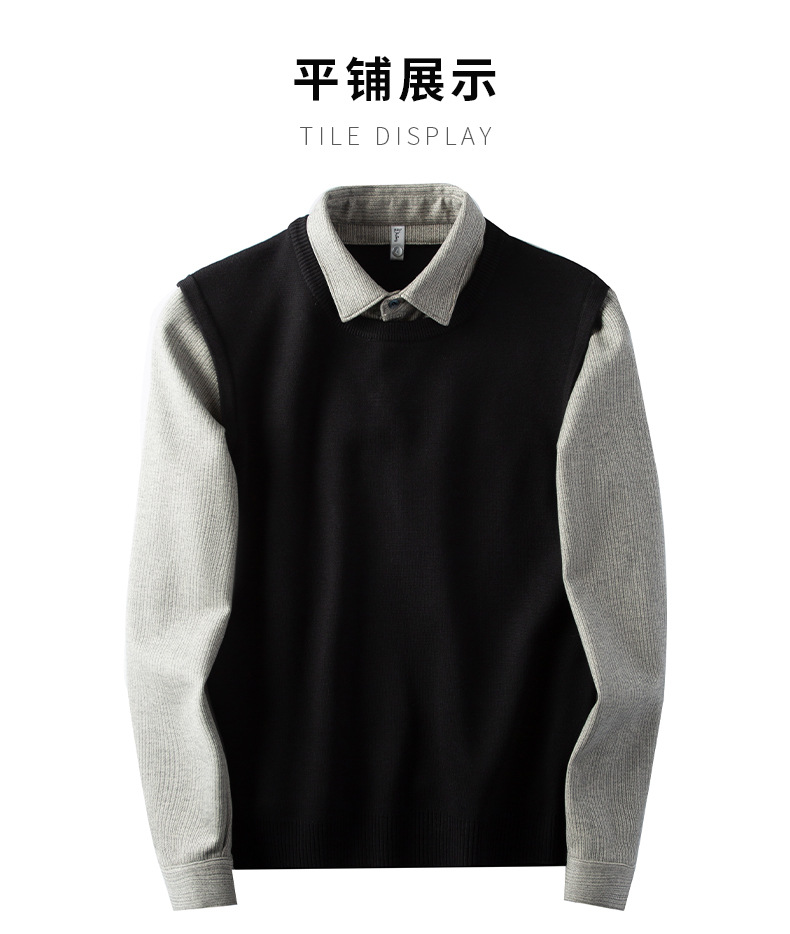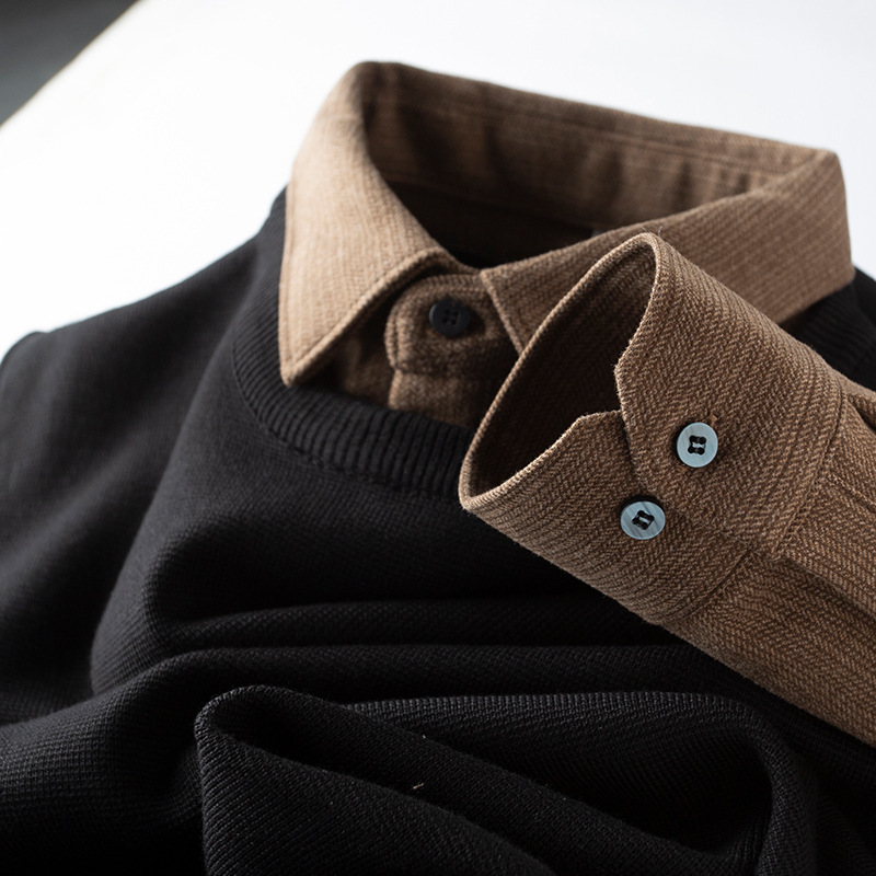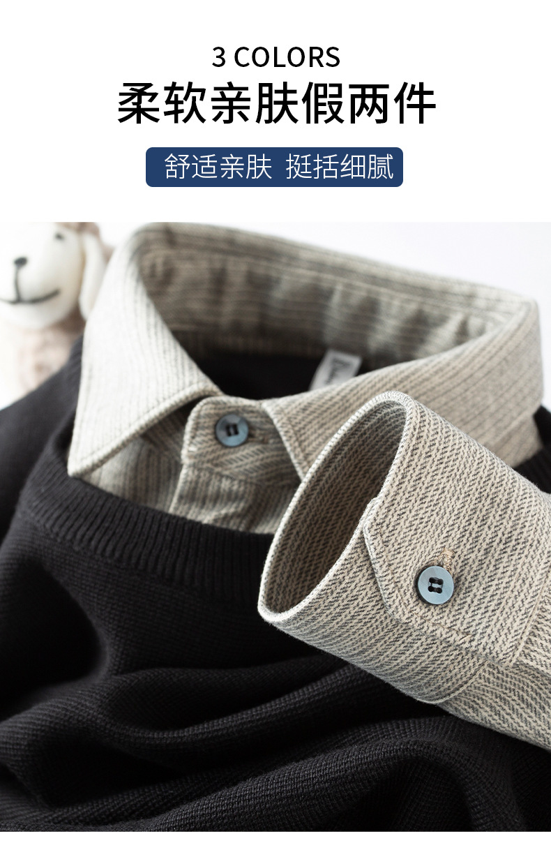 얼어 붙는 것을 두려워하지 않음 ~ 자가 가열 샌딩 울 셔츠 칼라 스티칭 가짜 투피스 스웨터 남성 가을과 겨울 두꺼운 따뜻한
