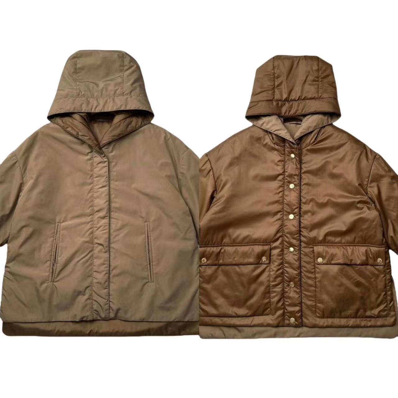 MAX2024 가을과 겨울 새로운 하이 레벨 편안한 양면 스트레이트 후드 재킷면 패딩 재킷