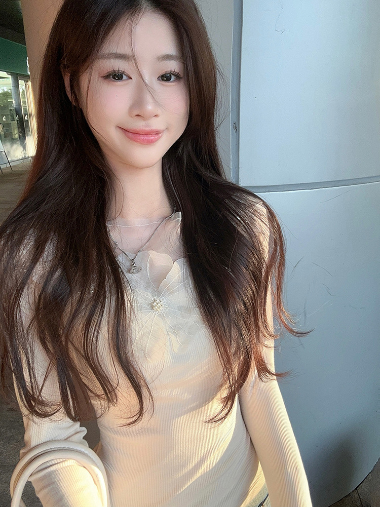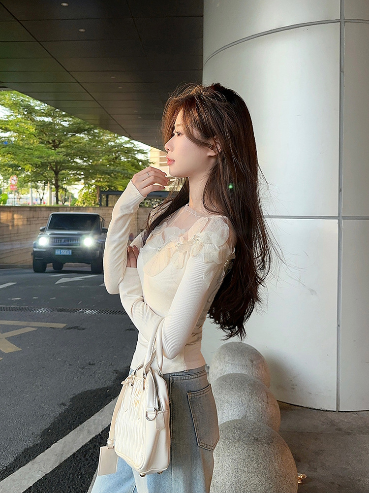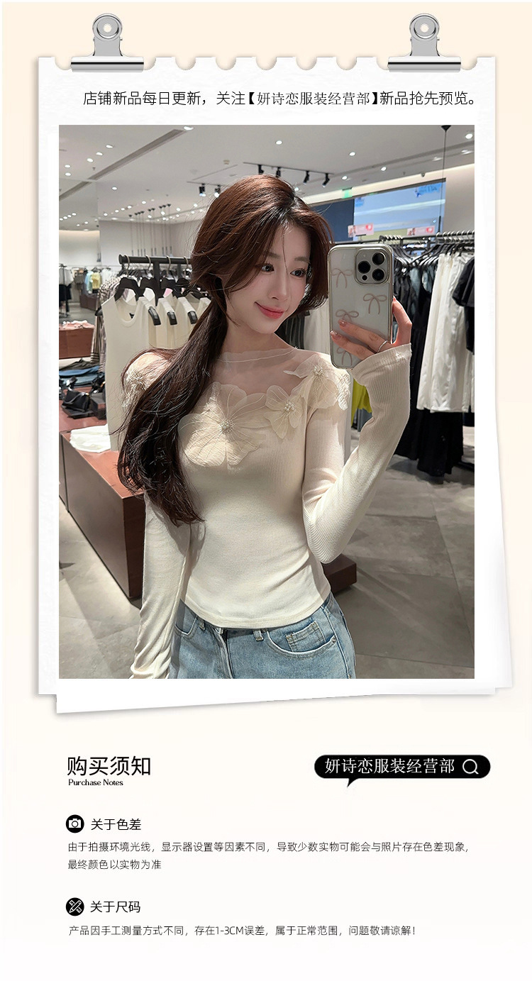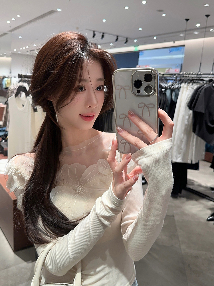 프랑스 스타일 3 차원 꽃 긴팔 티셔츠 여성의 초가을 새로운 디자인 센스 슬림 핏 슬리밍 아름다운 트렌디 탑스토어 가기