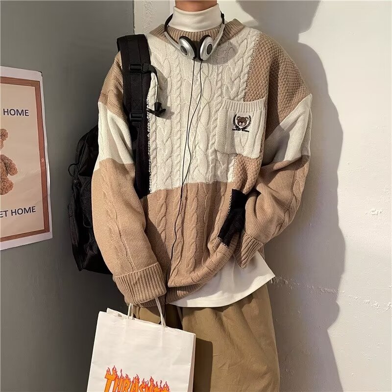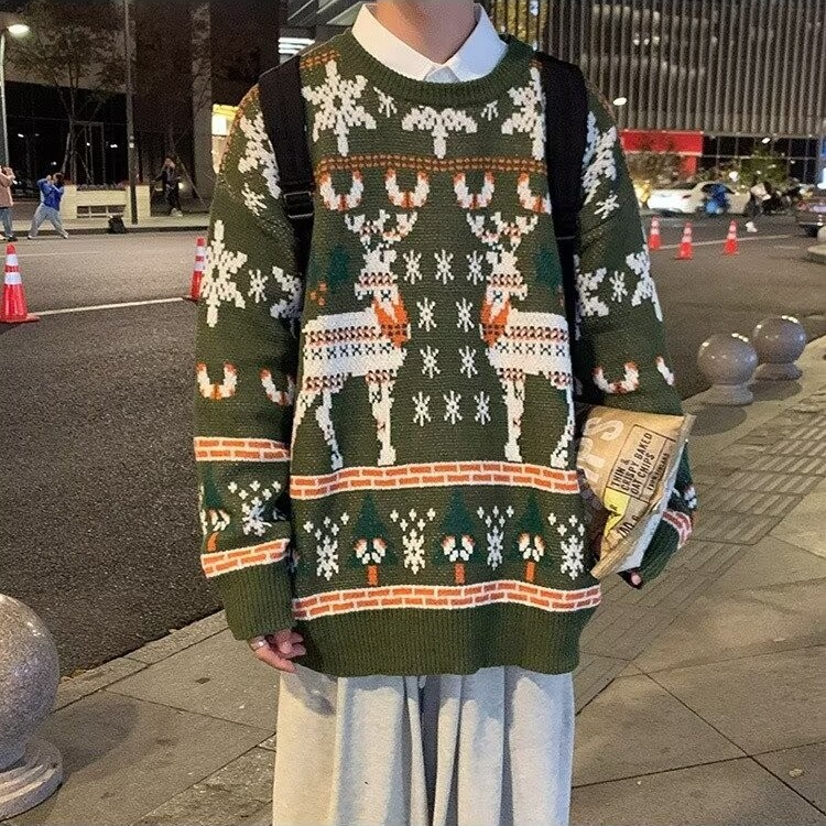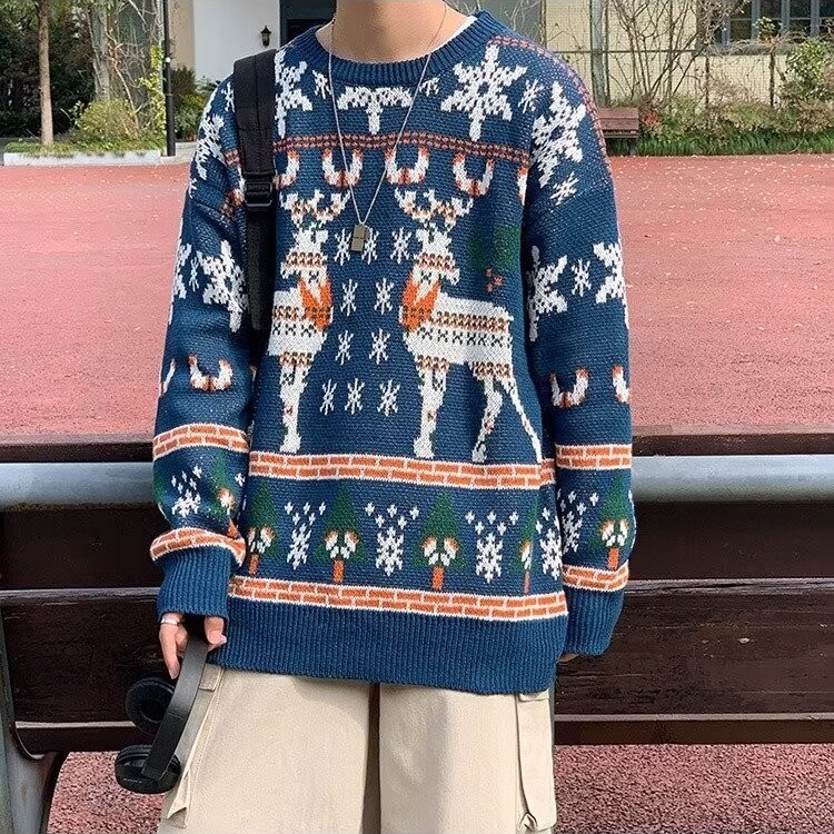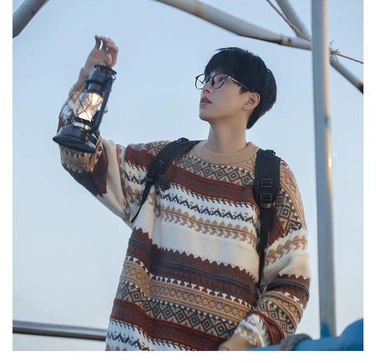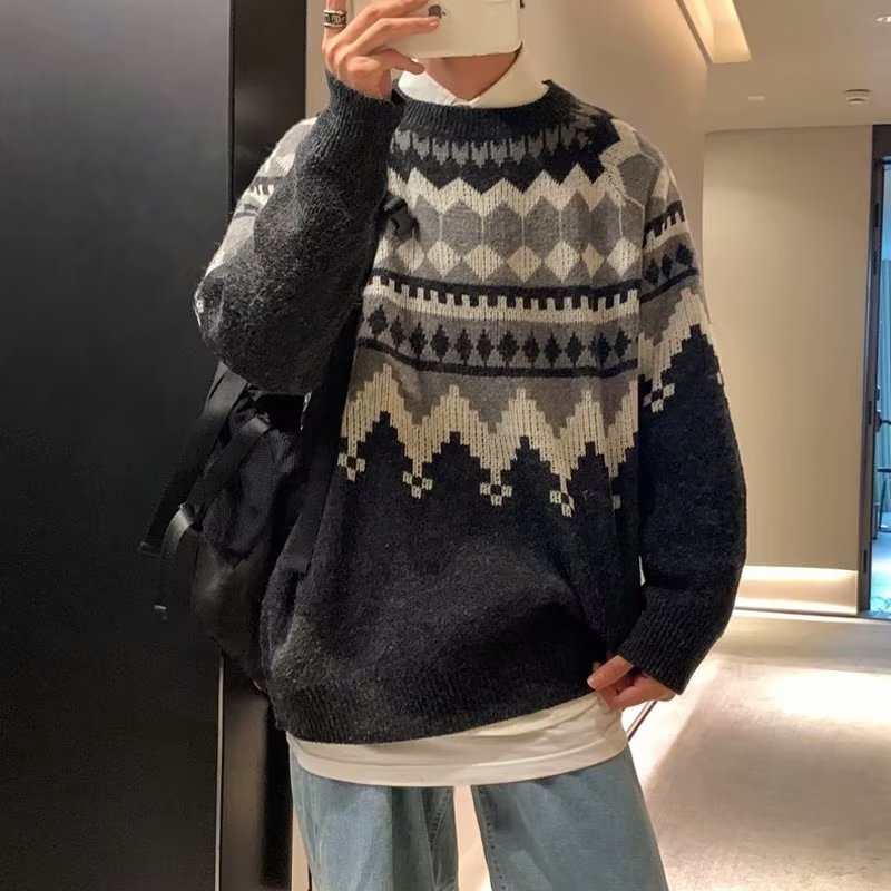 페어 아일 크리스마스 스웨터 남자 일본 복고풍 게으른 두꺼운 빈티지 유행 브랜드 내부 겨울 스웨터 도매스토어 가기