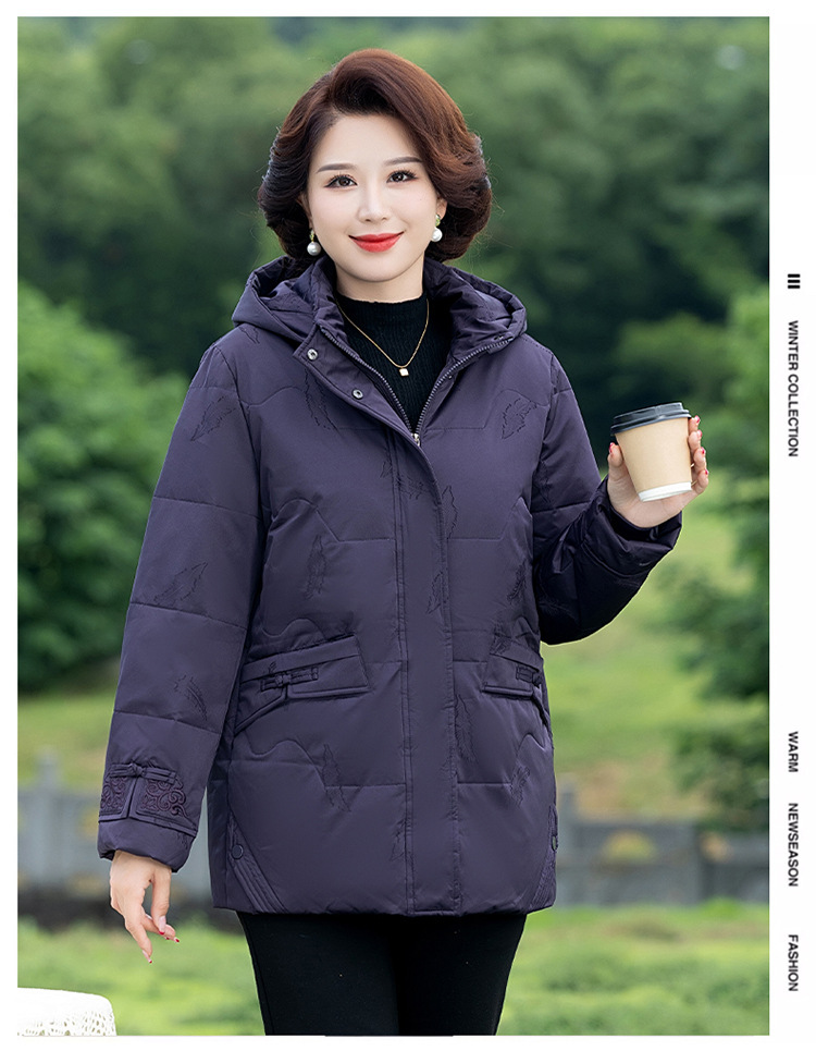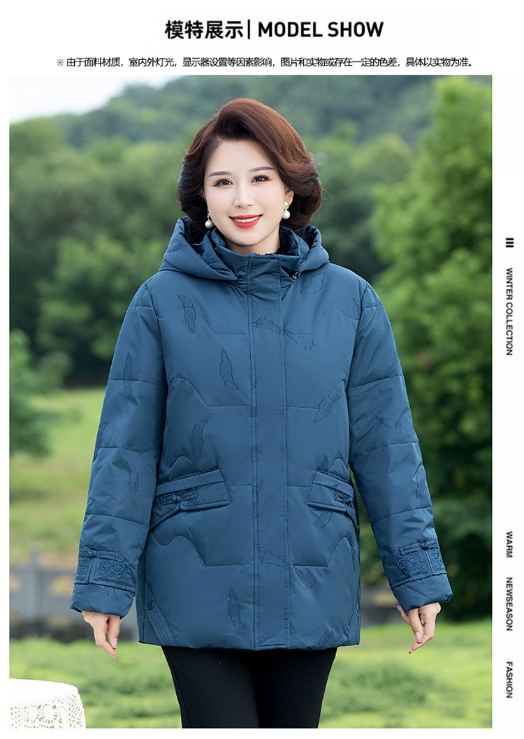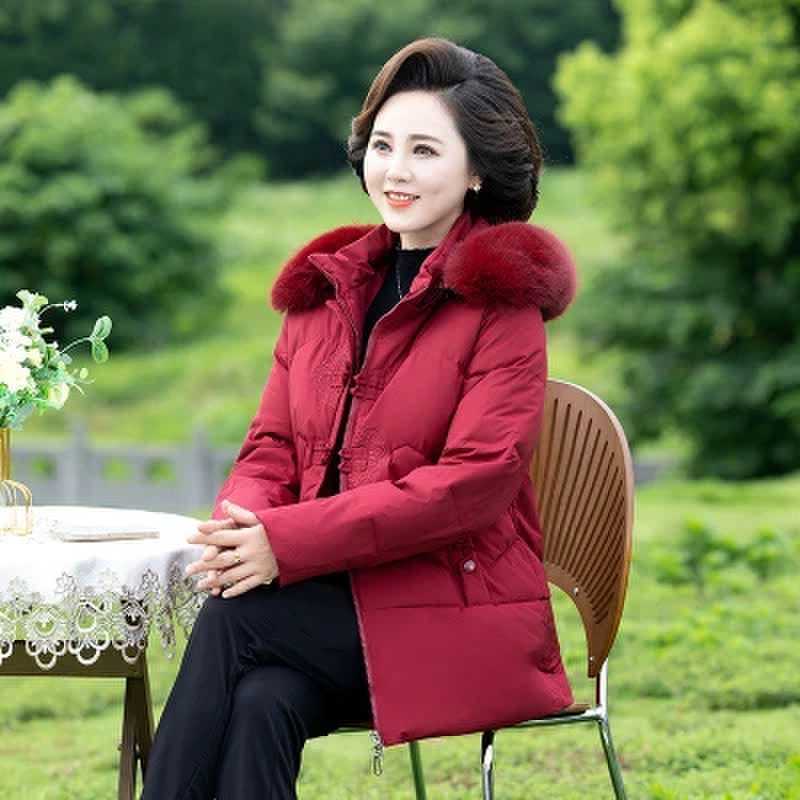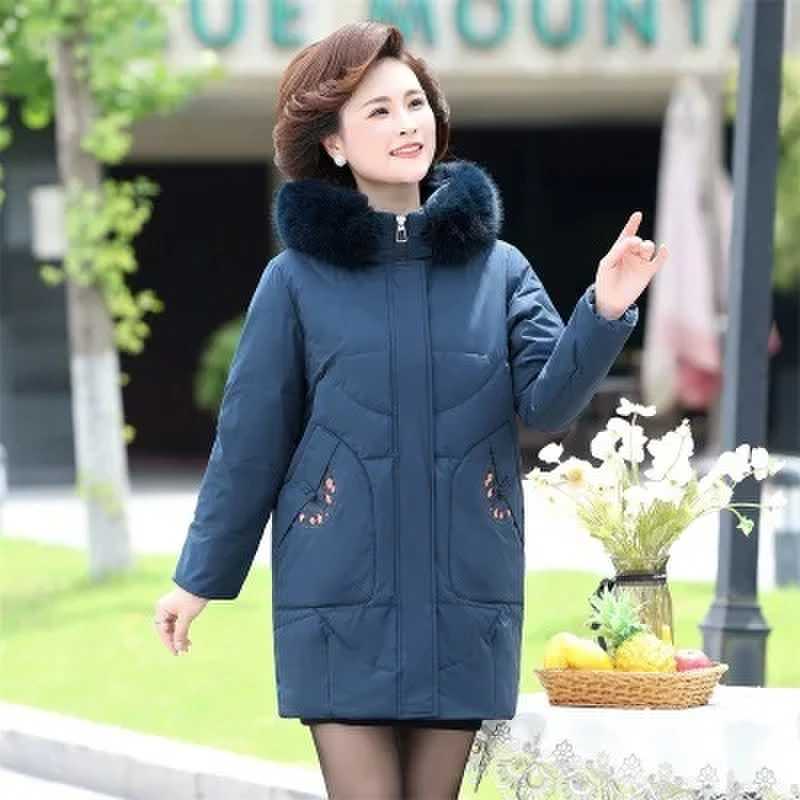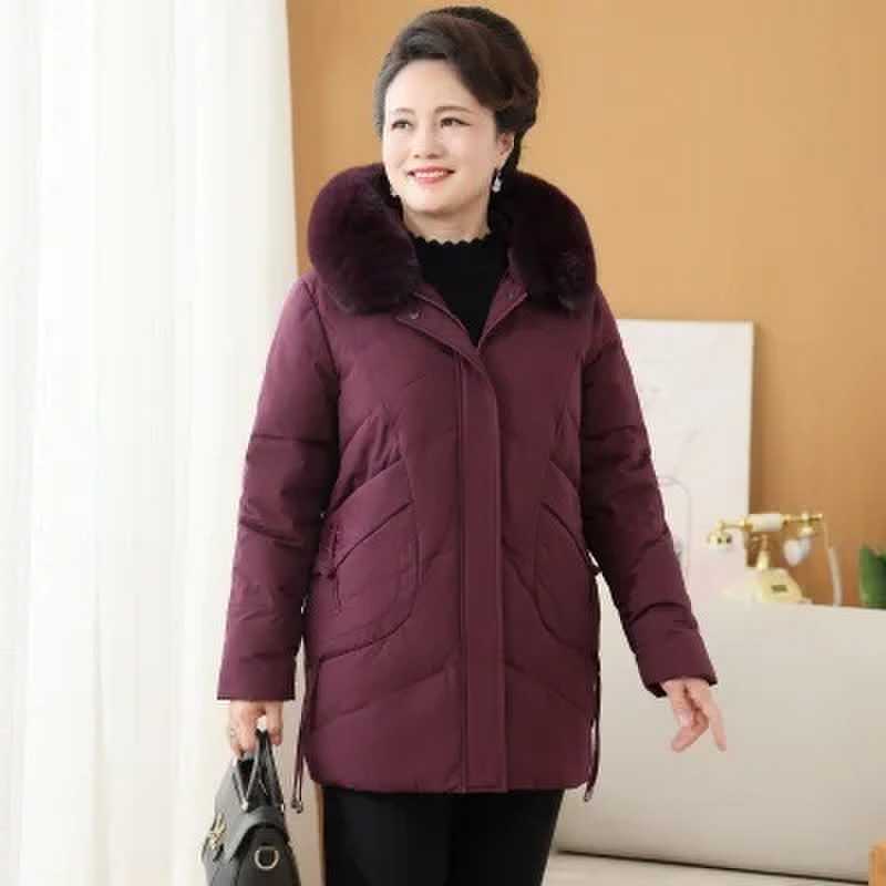 중년 중년 중년 및 노인을위한 여성 가을 및 겨울 코트 두꺼운 면화 패딩 재킷 다운 재킷