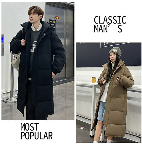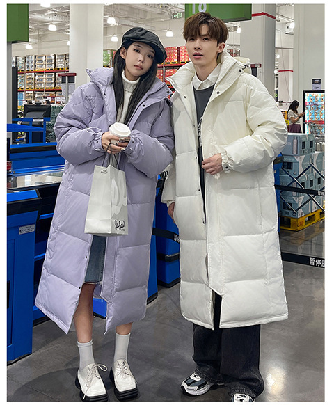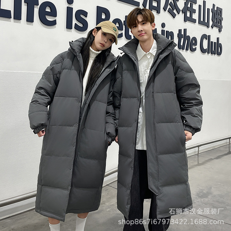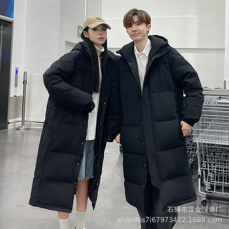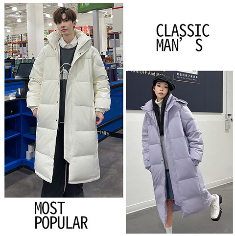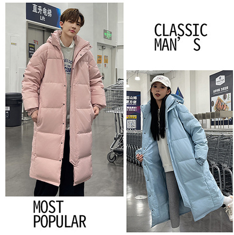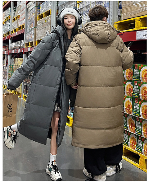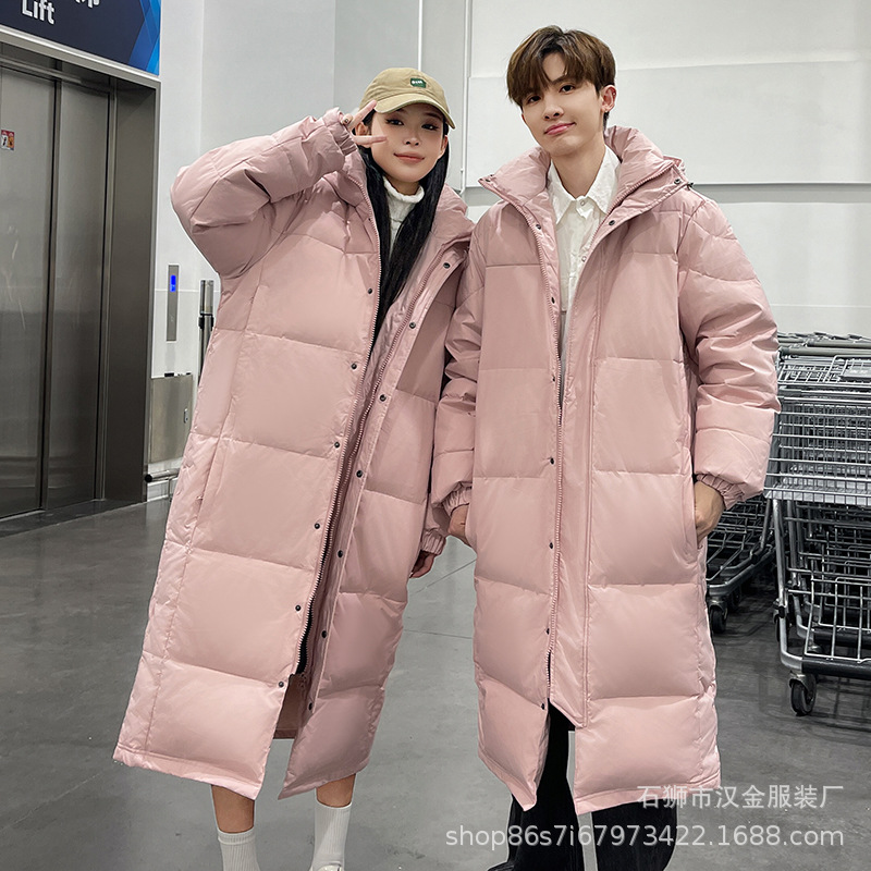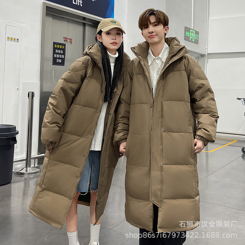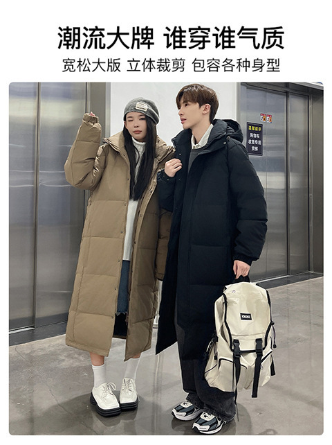 겨울 커플을 가진 남성과 여성을위한 새로운 다운 재킷 긴 두꺼운 느슨한 캐주얼 무릎 따뜻한 재킷 도매스토어 가기