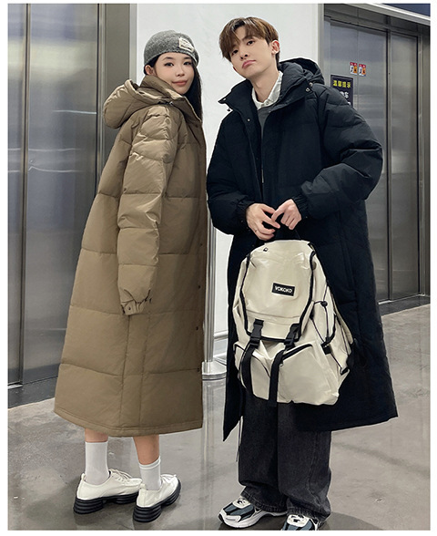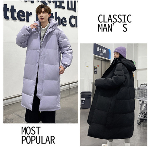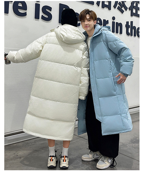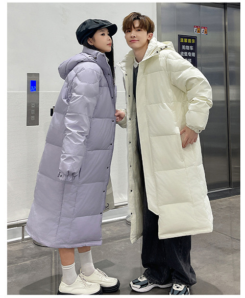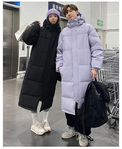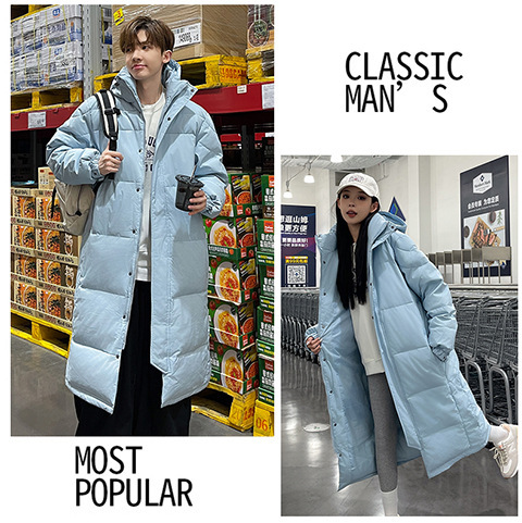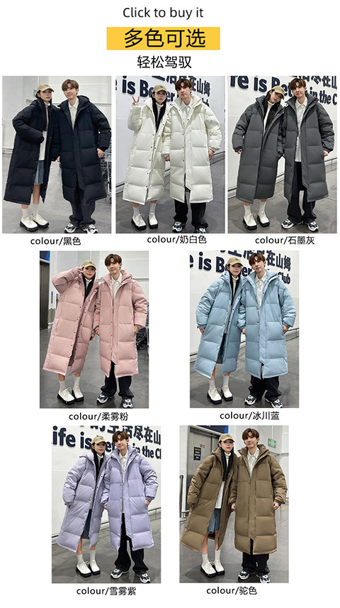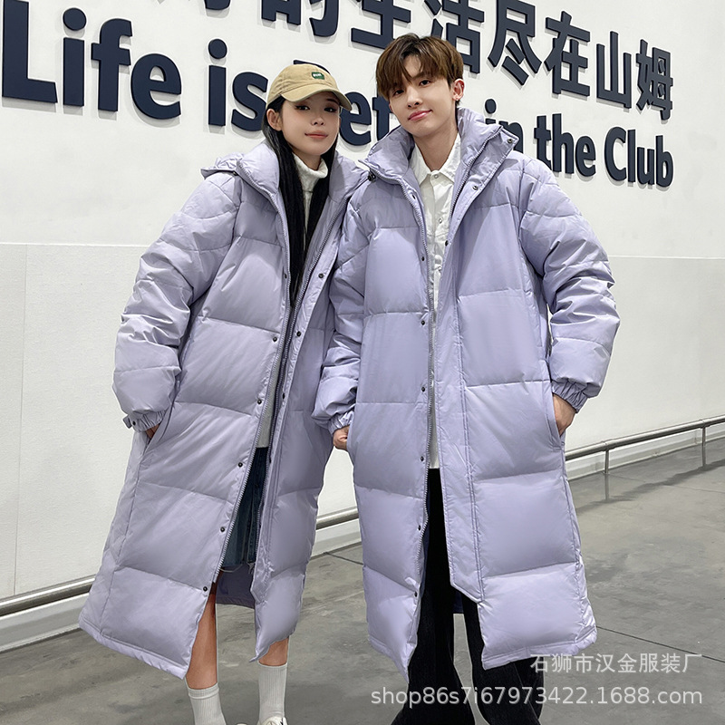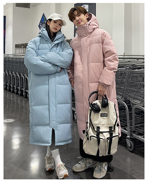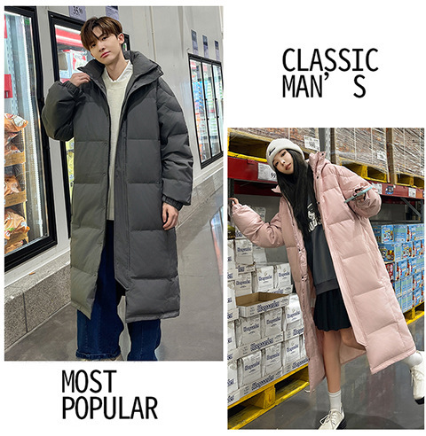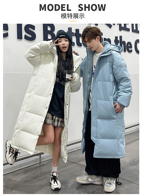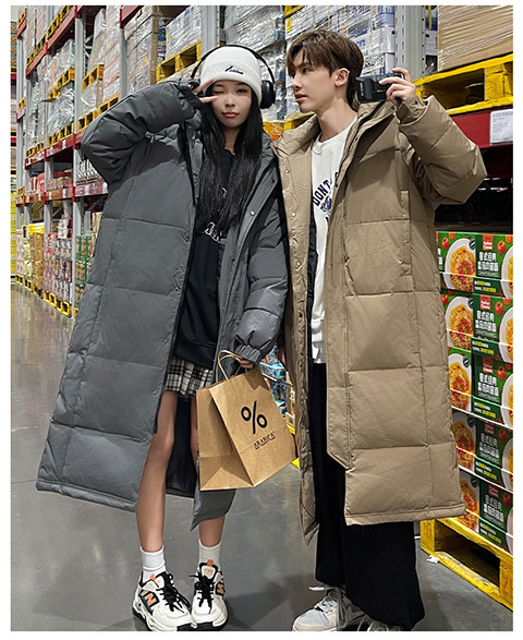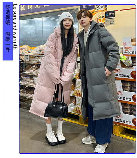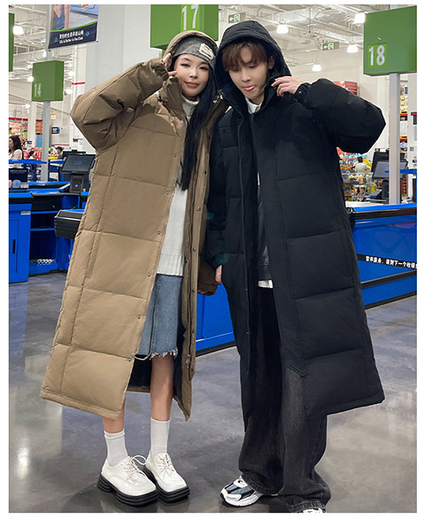 겨울 커플을 가진 남성과 여성을위한 새로운 다운 재킷 긴 두꺼운 느슨한 캐주얼 무릎 따뜻한 재킷 도매스토어 가기