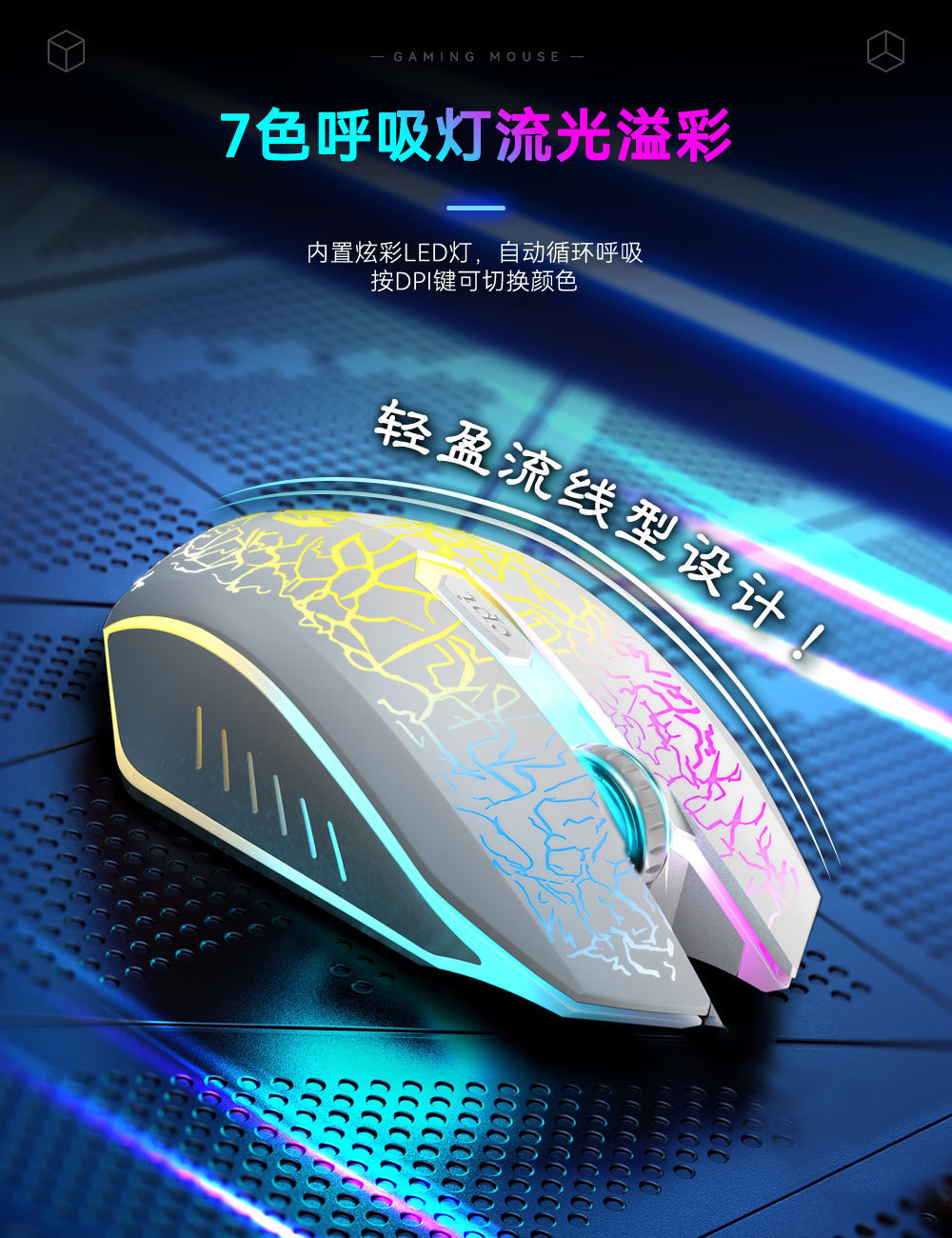 랭글러 데스크톱 노트북 USB 유선 마우스 다채로운 호흡 발광 전자 스포츠 게임 오피스 마우스
