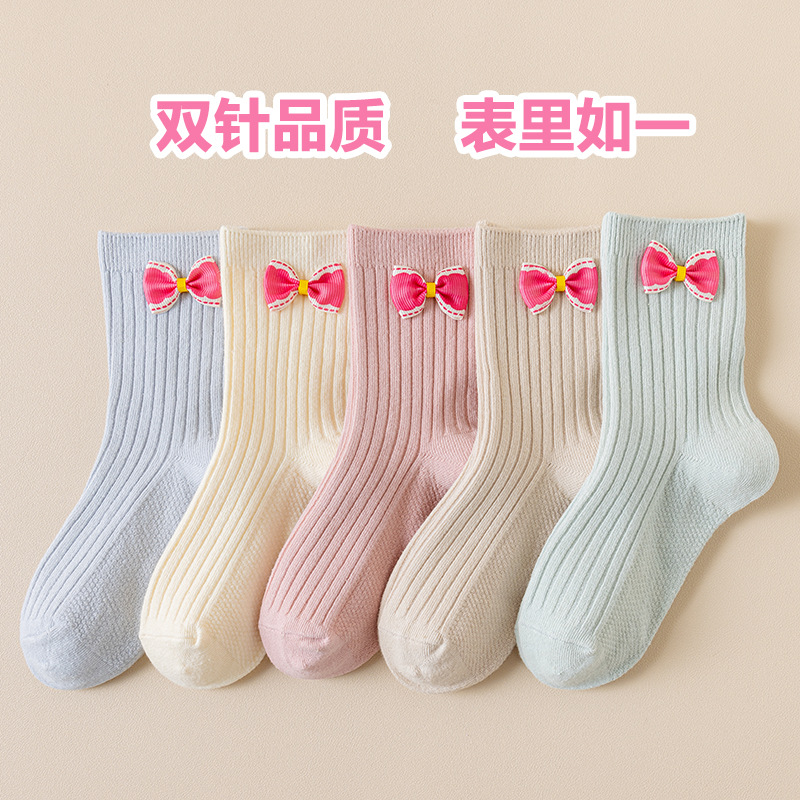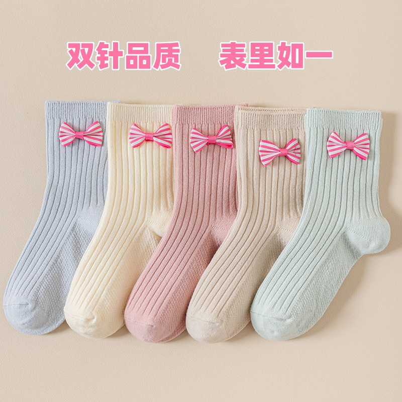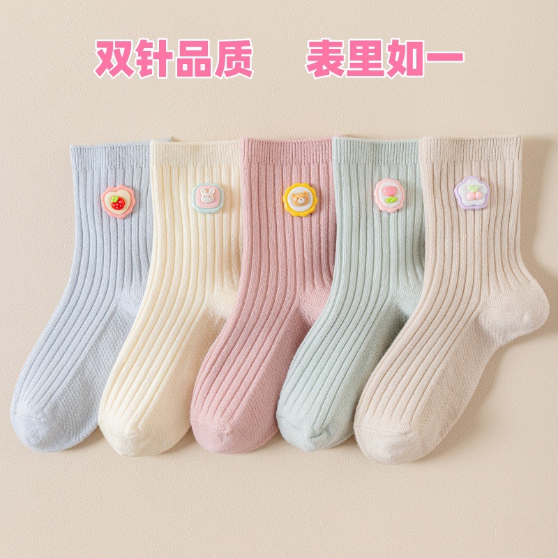 어린이 양말 면 소녀 더블 바늘 만화 중간 튜브 봄과 가을 겨울 귀여운 소녀 양말 아기 학생 양말