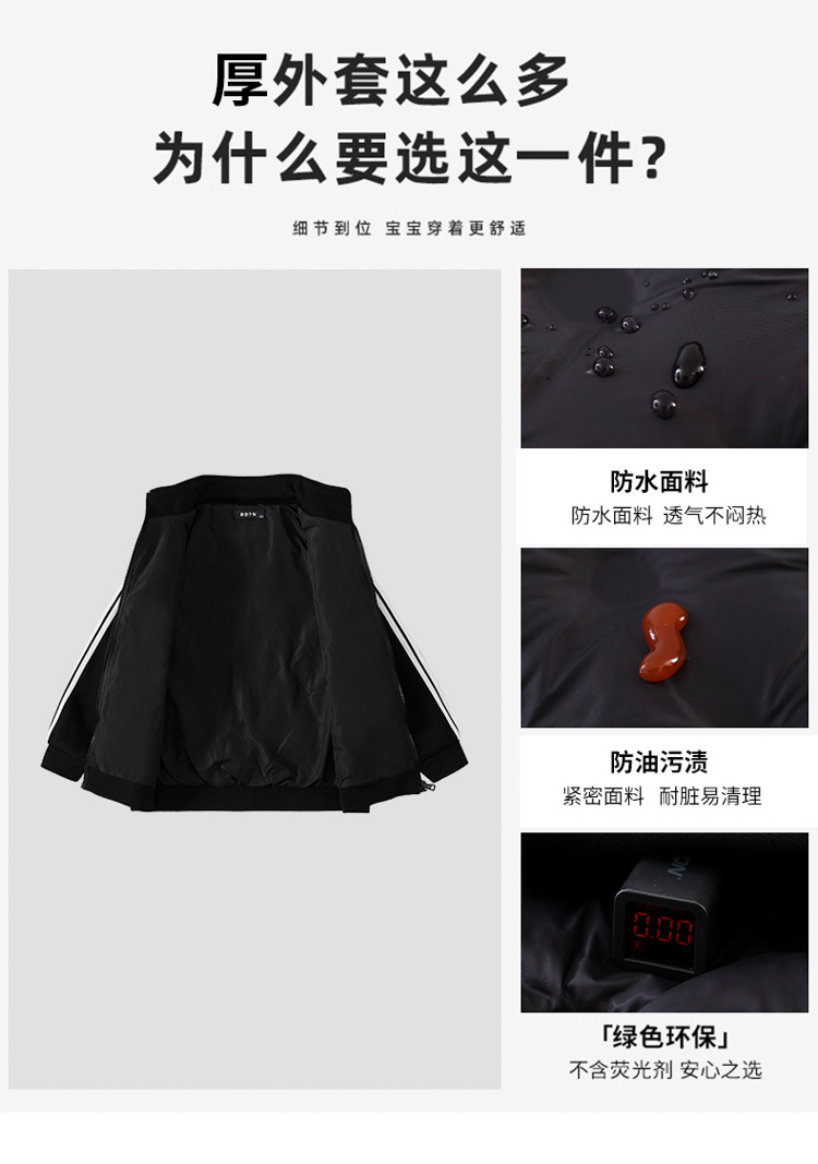 2025冬季撞色男童棉服户外防水连帽外套织里童装儿童冬装夹棉棉衣