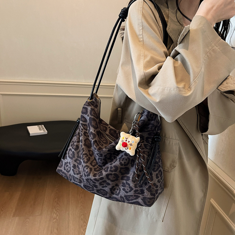 2024 가을과 겨울 새로운 레오파드 무늬 질감 여성 어깨 메신저 가방 대용량 통근 서양식 겨드랑이 가방 토트 백 여성스토어 가기