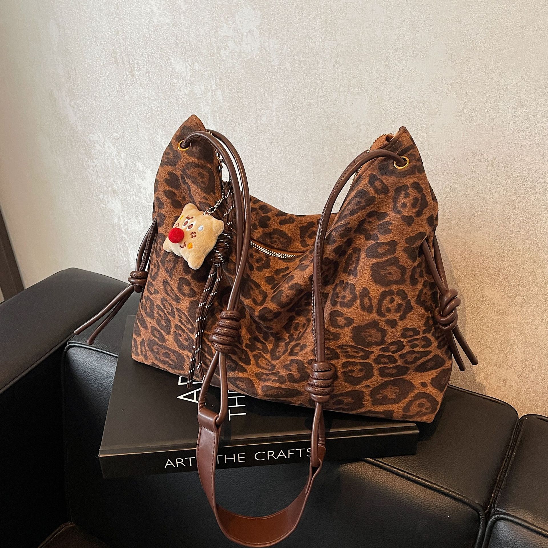 2024 가을과 겨울 새로운 레오파드 무늬 질감 여성 어깨 메신저 가방 대용량 통근 서양식 겨드랑이 가방 토트 백 여성