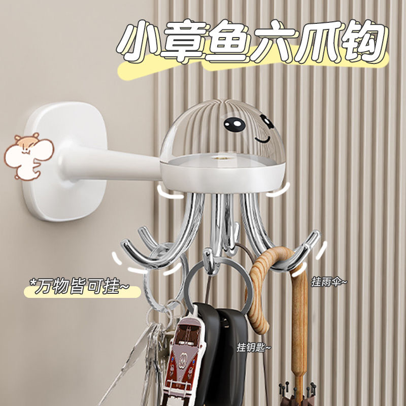 새로운 다기능 6 발 회전 후크 랙 주방 보관 360 도 원활한 후크 가정용 구멍이 뚫린 후크스토어 가기
