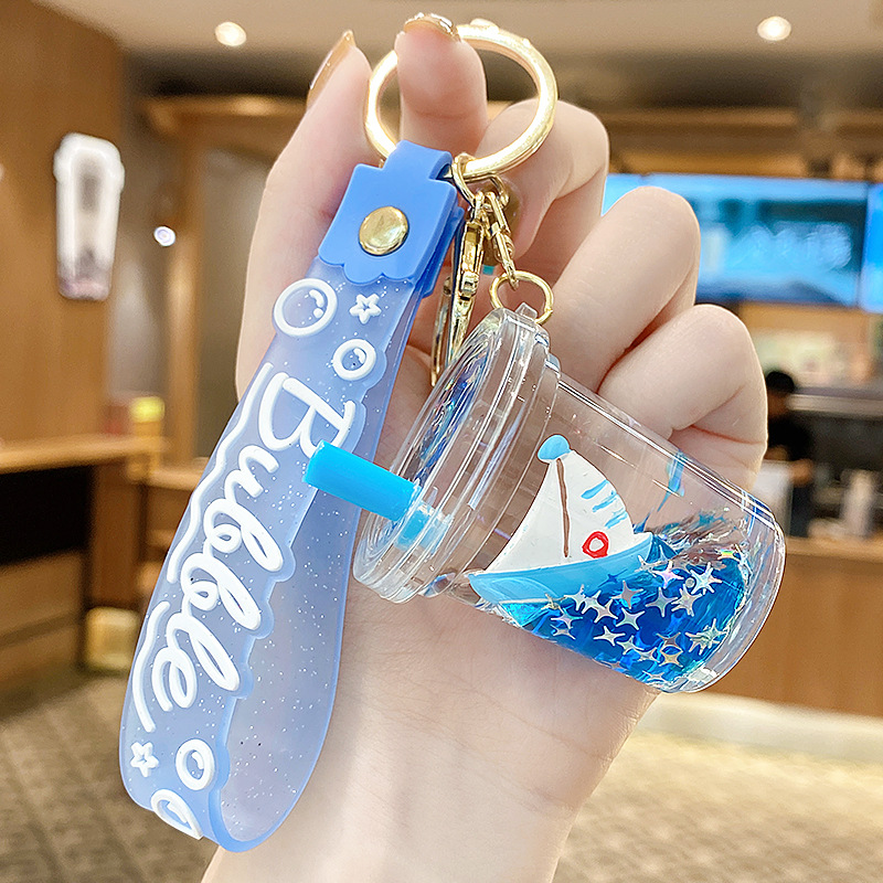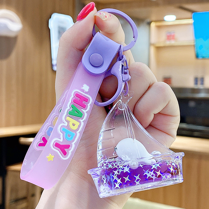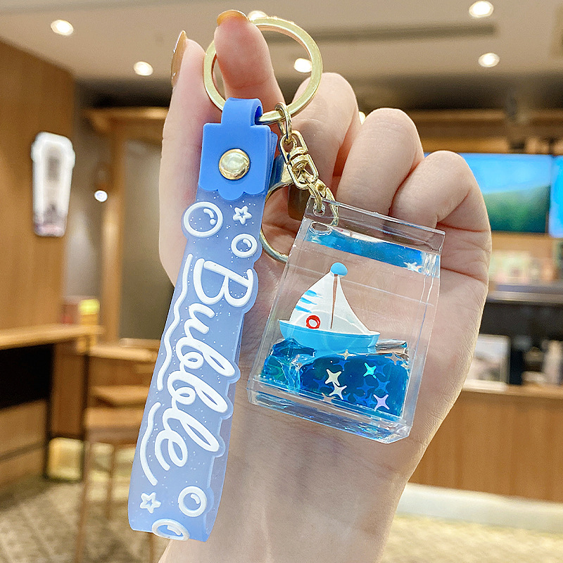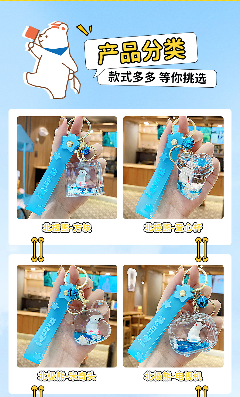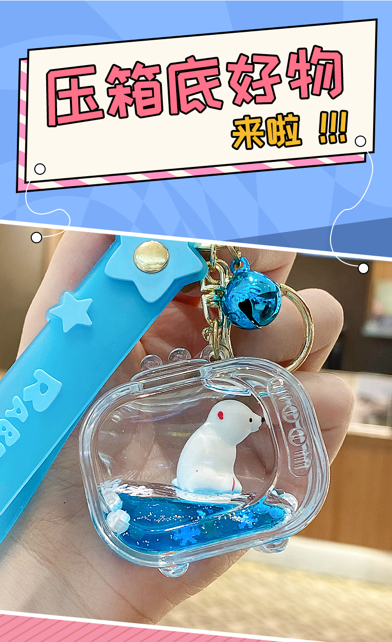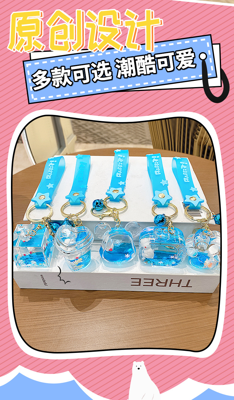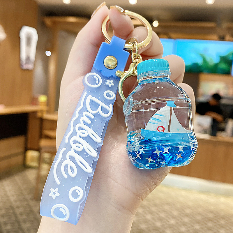 모래 속의 기름 병 바다 북극곰 귀여운 만화 크리스탈 키 체인 절묘한 소녀의 작은 보석 학교 가방 매달려 장식품스토어 가기