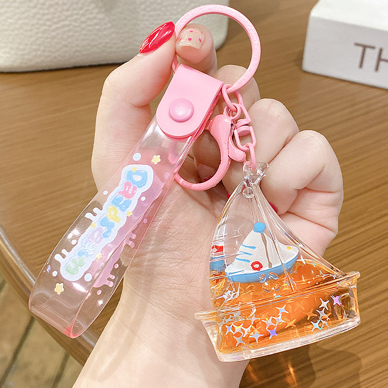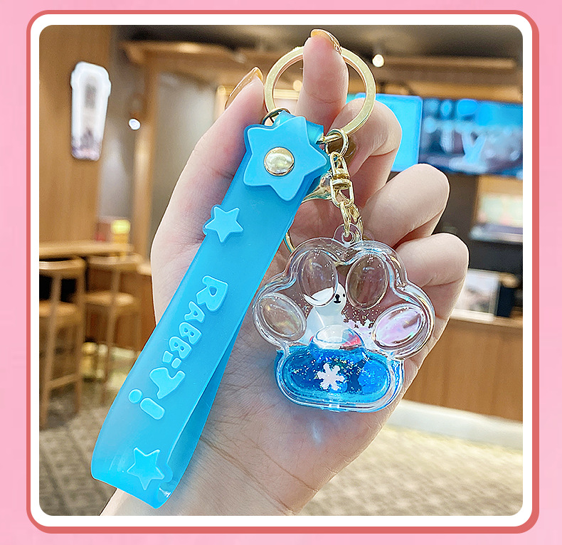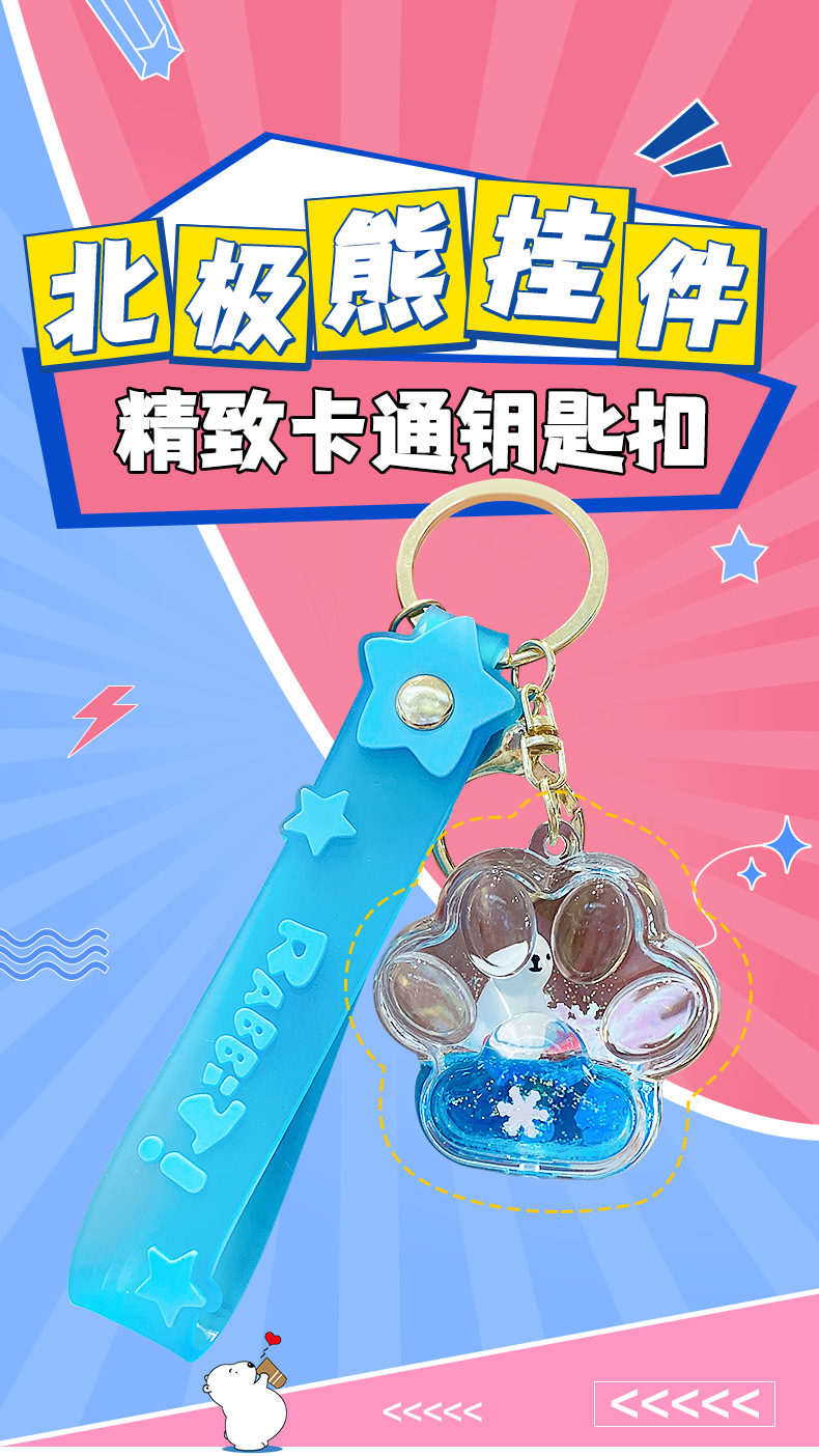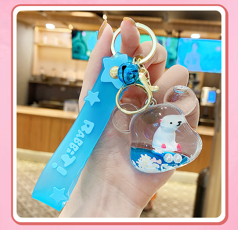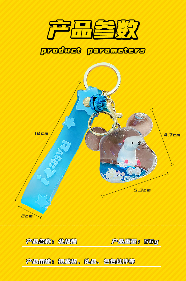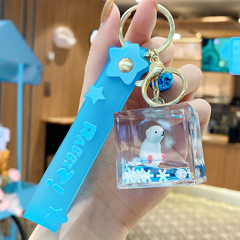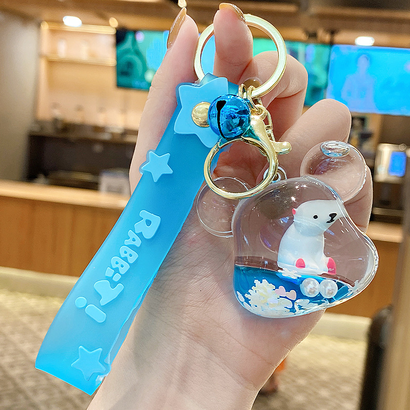 모래 속의 기름 병 바다 북극곰 귀여운 만화 크리스탈 키 체인 절묘한 소녀의 작은 보석 학교 가방 매달려 장식품