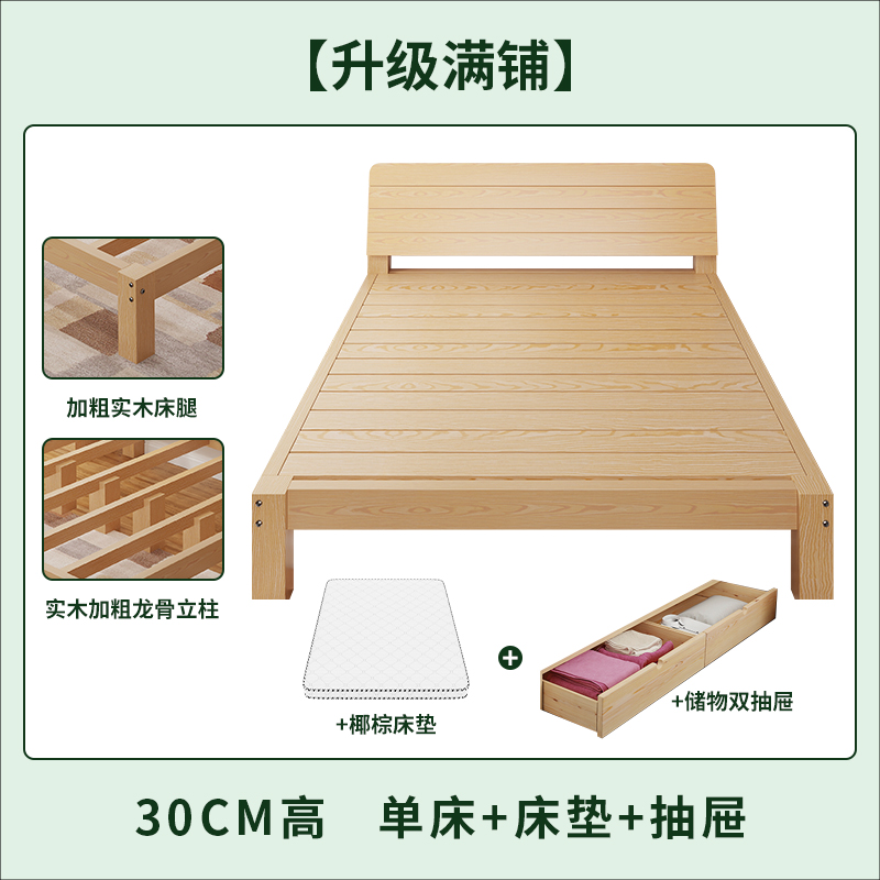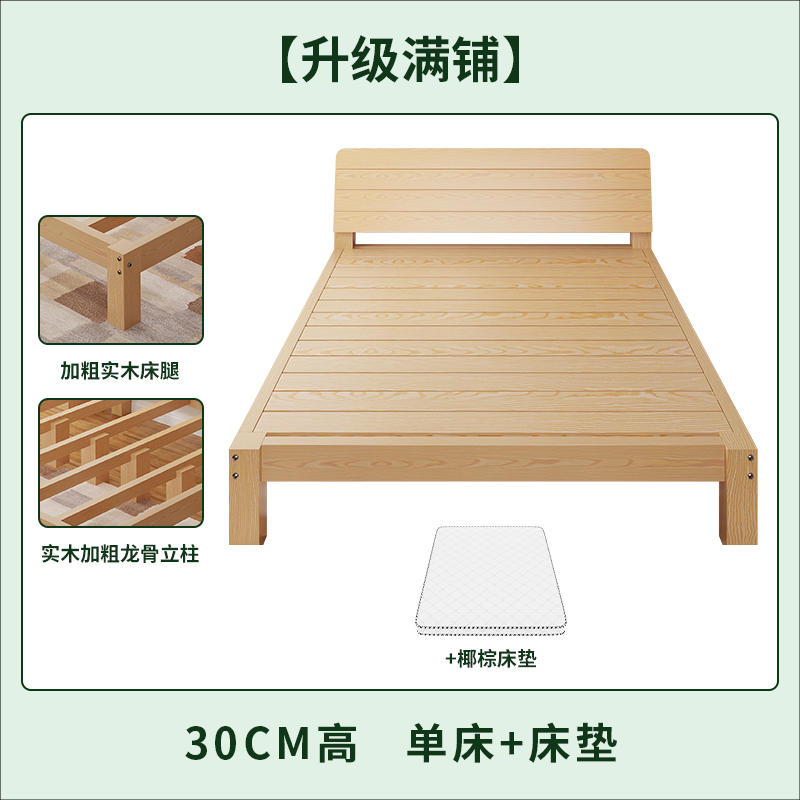 단단한 나무 침대 임대 방 현대 간단한 1.5 m 더블 침대 1.8 경제적 인 가정용 간단한 싱글 침대 프레임 1.2m스토어 가기