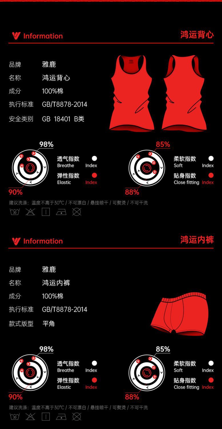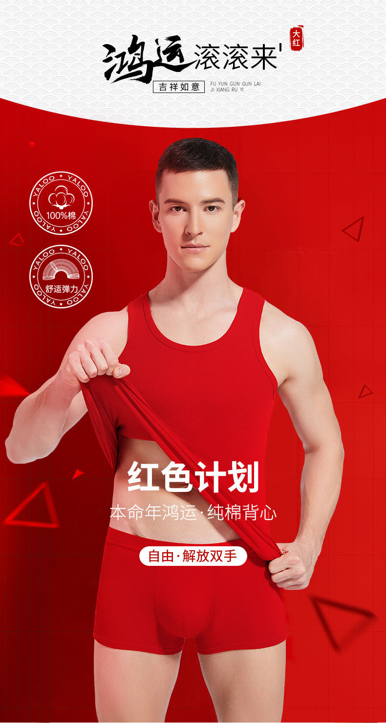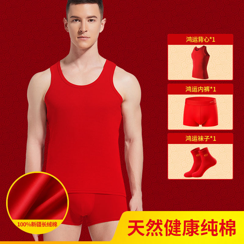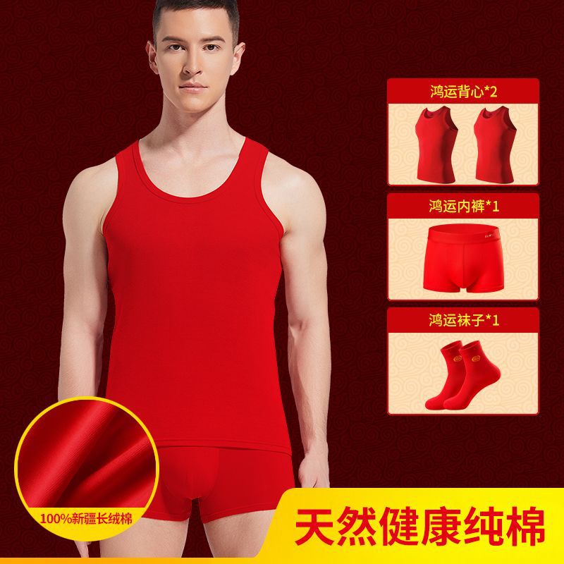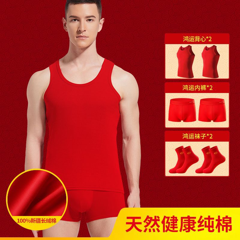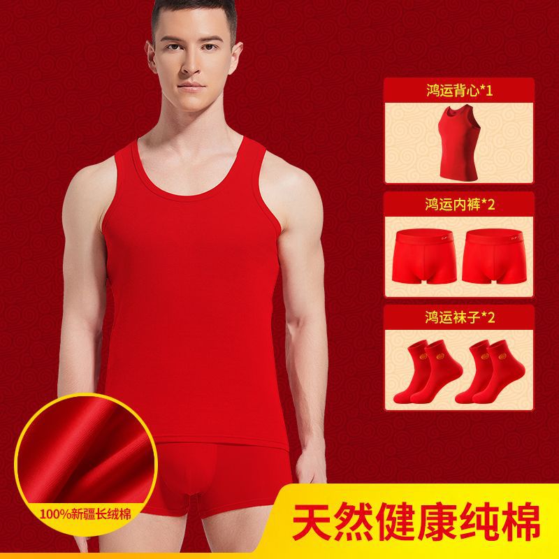 야루 남성용 순면 빨간색 결혼 선물용 조끼 속옷 양말 말의 해