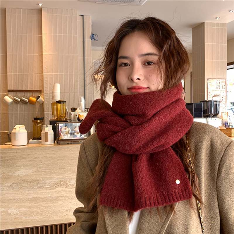 가을과 겨울 새로운 그물 레드 울 솔리드 컬러 니트 스카프 한국 버전의 조커 학생 커플 따뜻한 스카프 도매스토어 가기