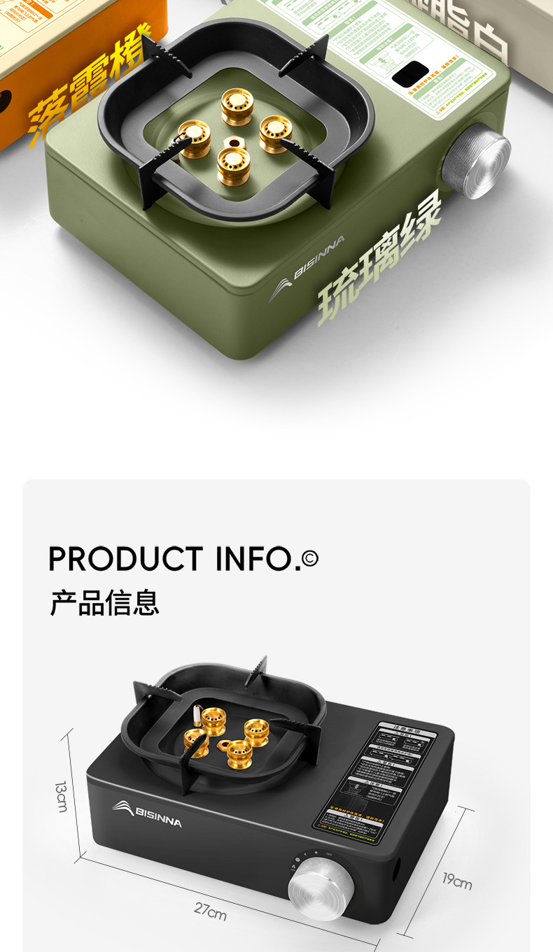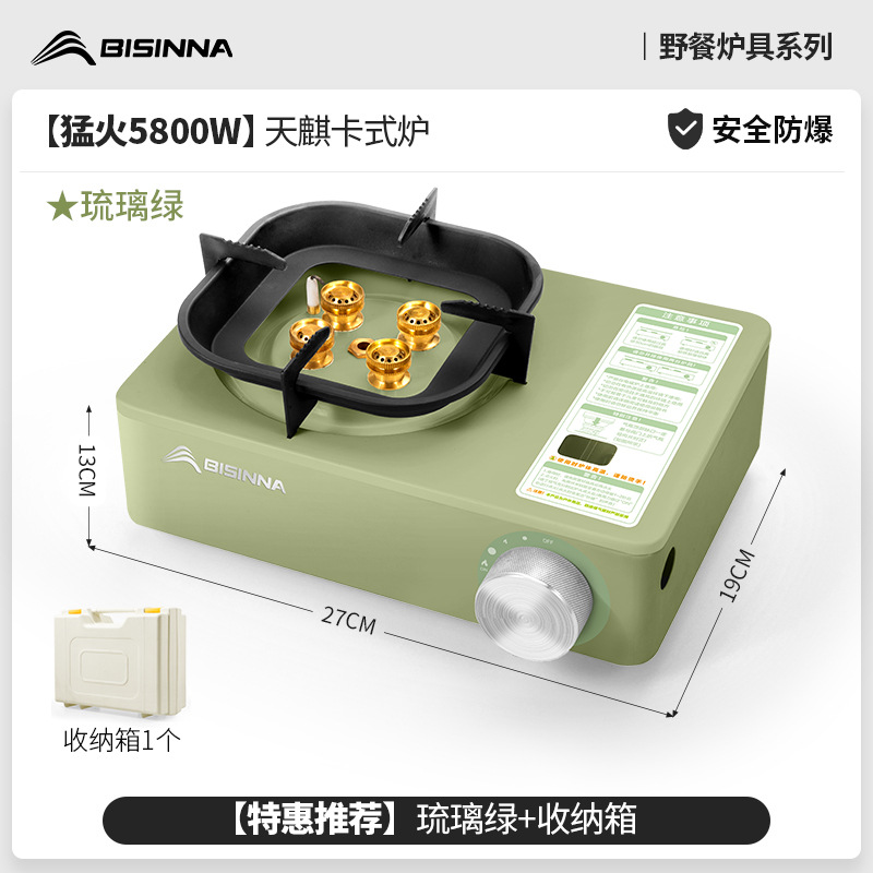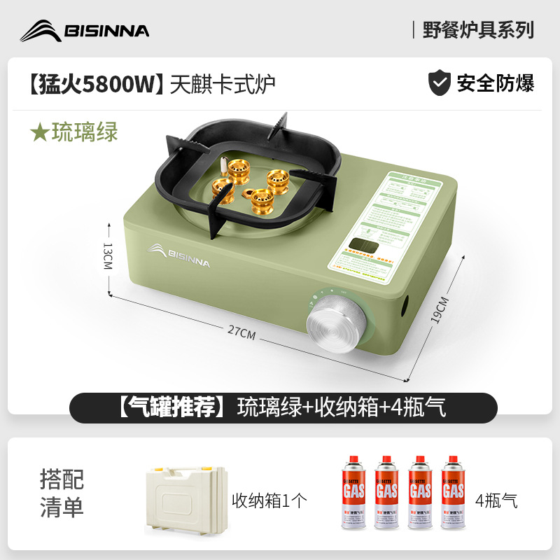 • Tianqi 5.8kw 치열한 화재 카세트 스토브: 유리 녹색 + 보관 상자
