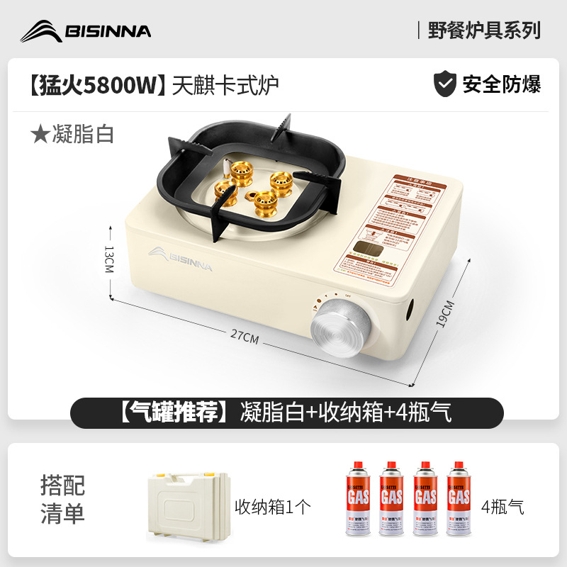 • Tianqi 5.8kw 치열한 화재 카세트 스토브: 젤 화이트 + 보관 상자 + 가스 탱크 4병