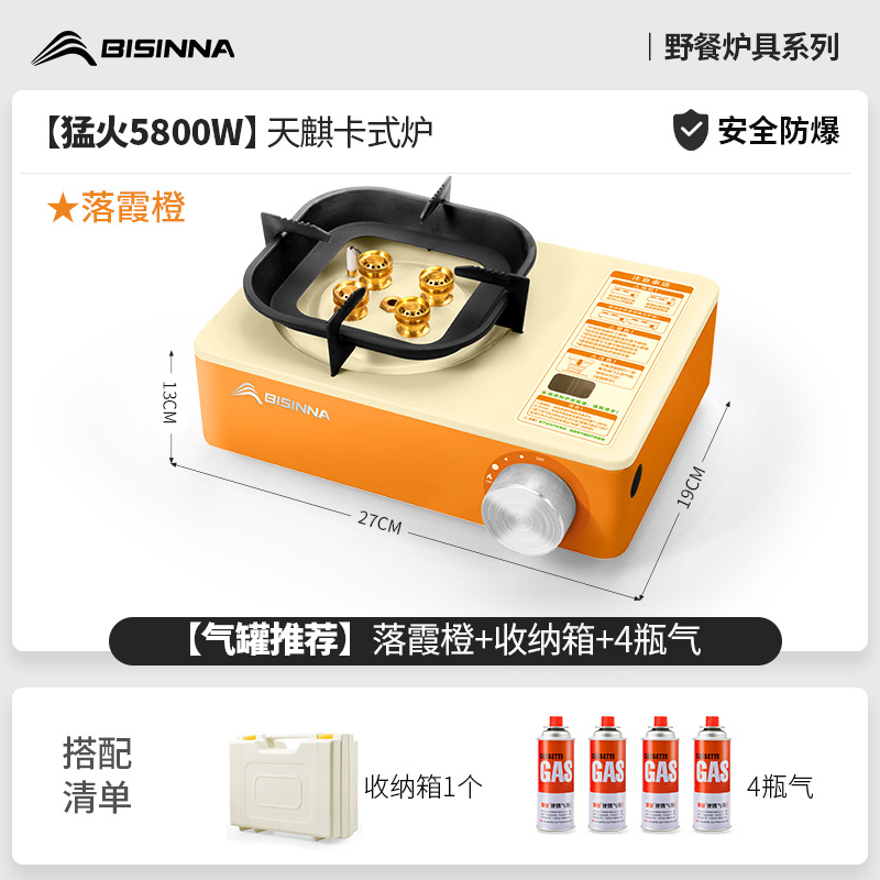• Tianqi 5.8kw Fierce Fire 카세트 스토브: Luoxia Orange + 보관함 + 가스 탱크 4병