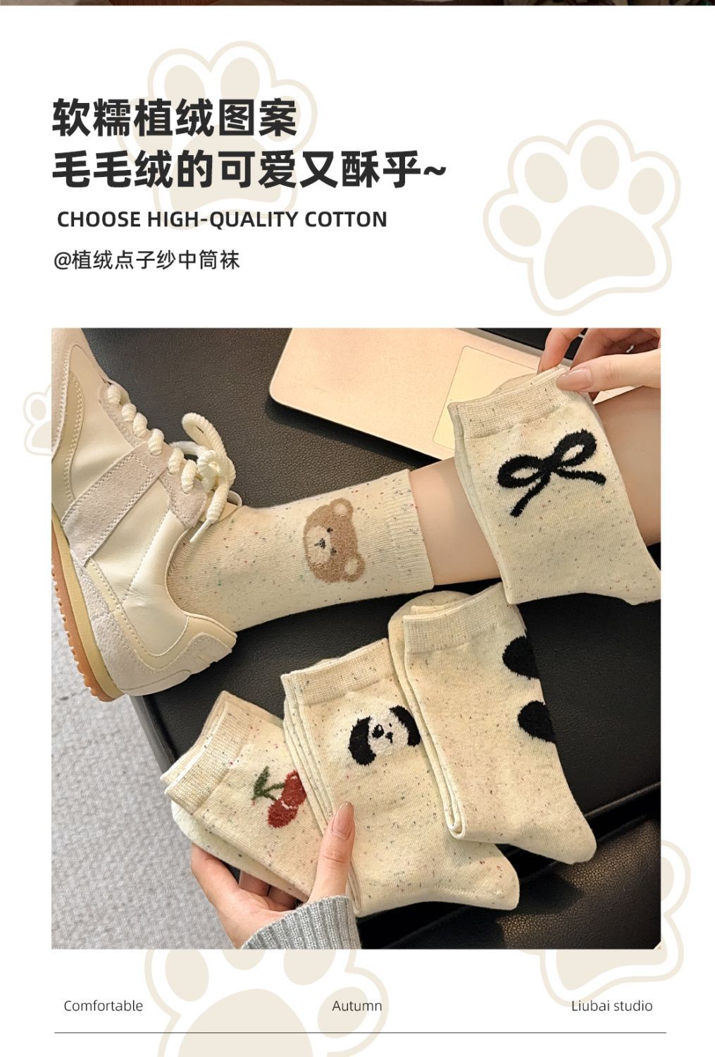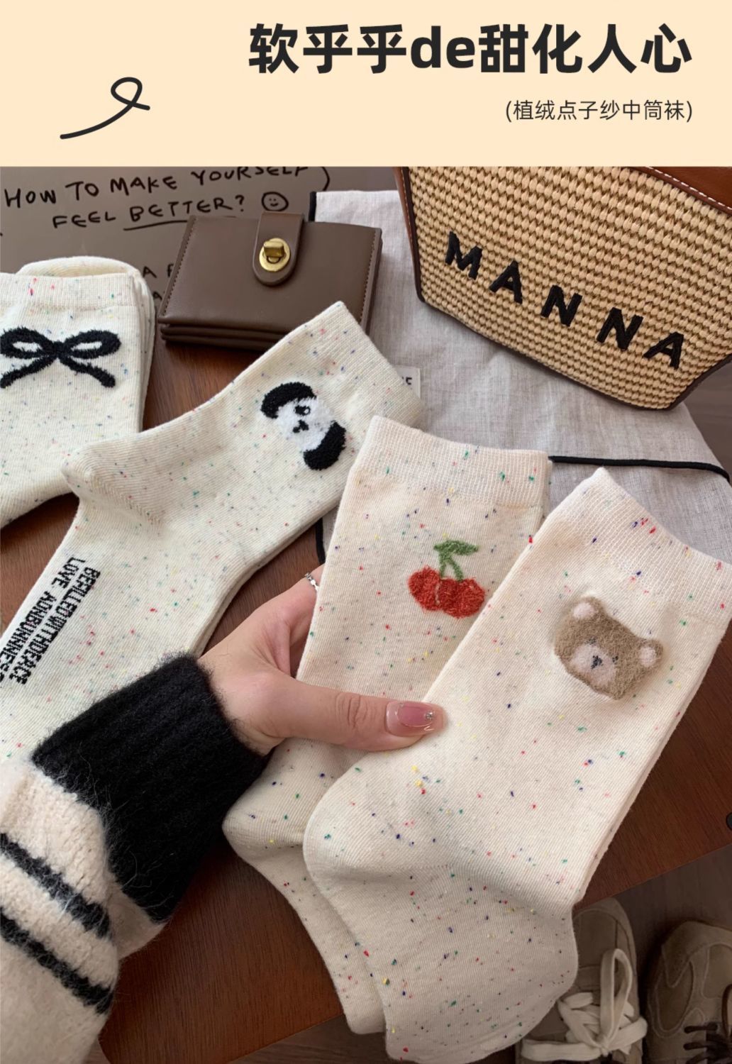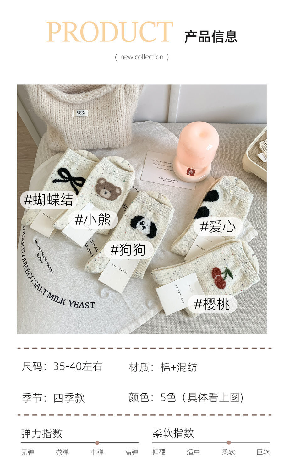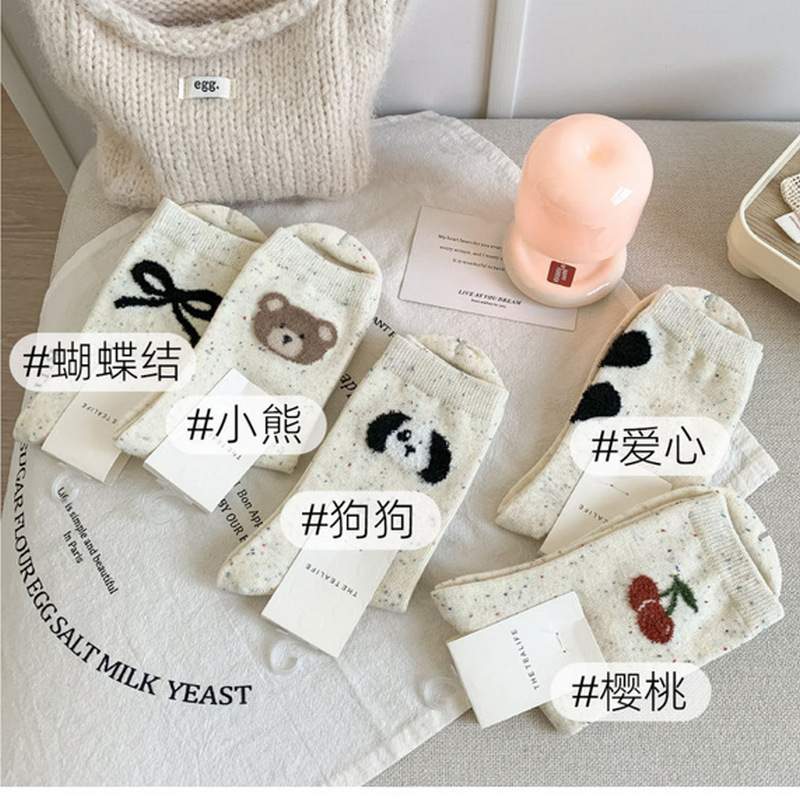 귀여운 양말 어린이 가을과 겨울 색칠 작은 동물 양말 Ins 트렌디 한 귀여운 곰 포인트 원사 단색 새로운 스타일스토어 가기