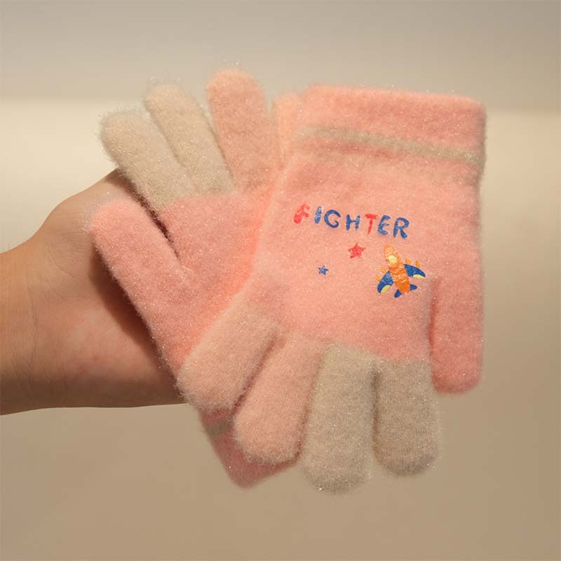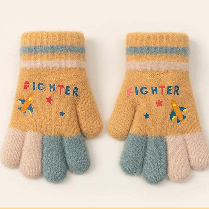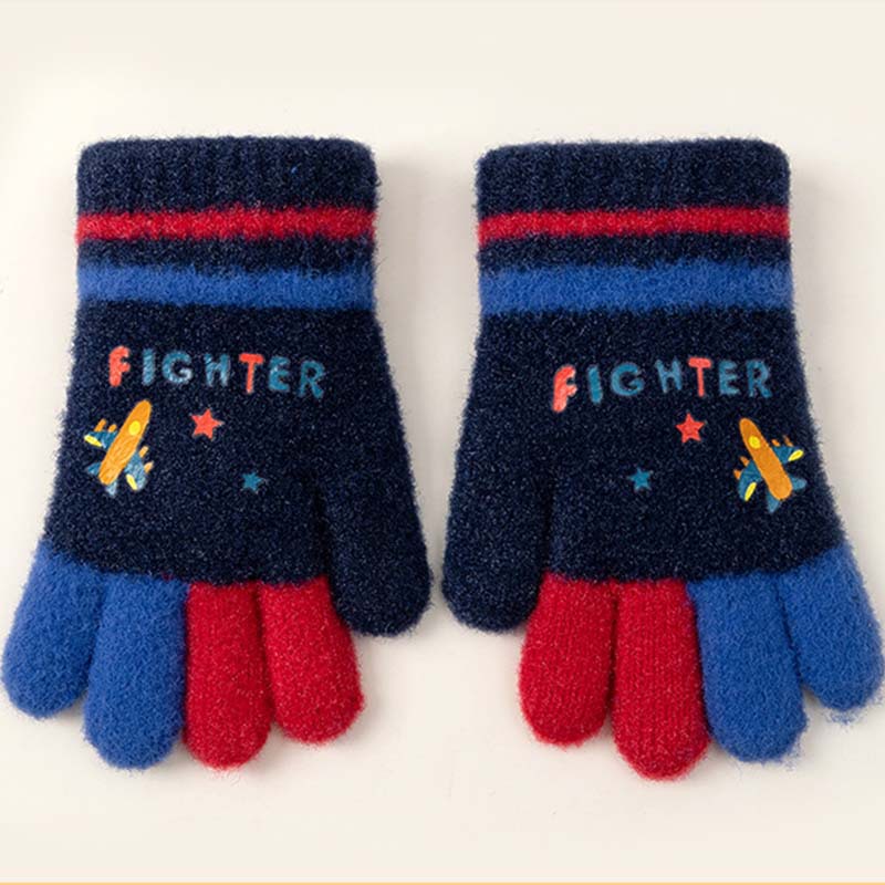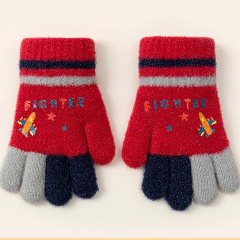 초등학생과 소년을위한 어린이 니트 손가락 귀여운 만화 비행기 두꺼운 따뜻한 겨울 야외 냉간 승마 장갑스토어 가기