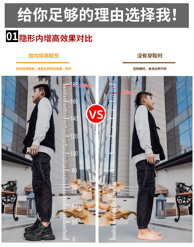 6.8CM 운동화 남성 신발 증가 가을 소년 충격 흡수 두꺼운 단독 올매치 토레 신발 통기성 매일 캐주얼 패션스토어 가기