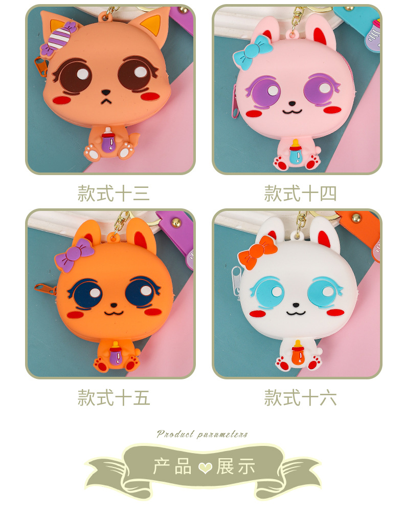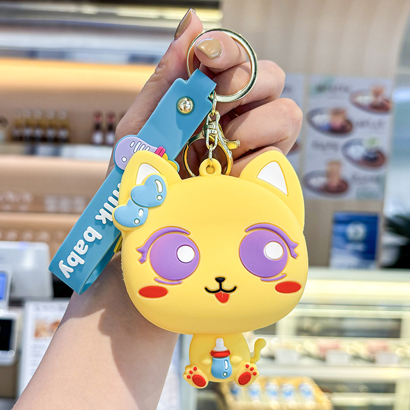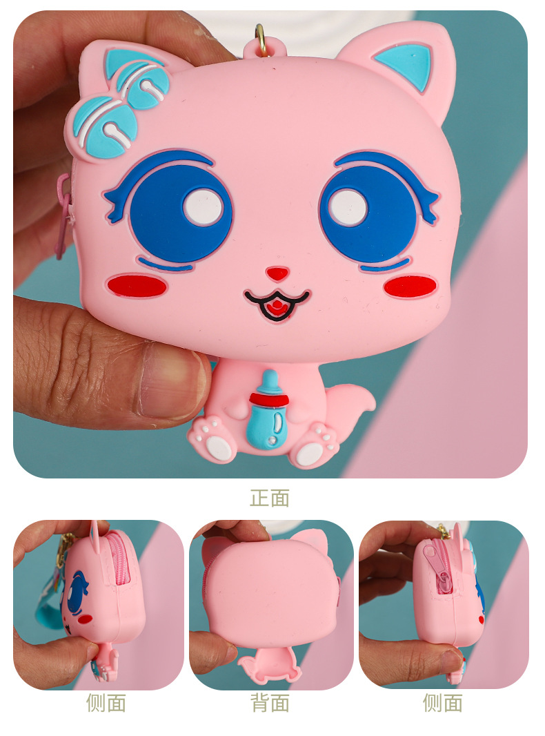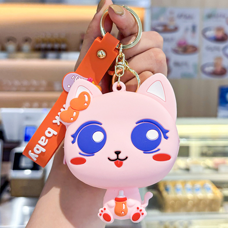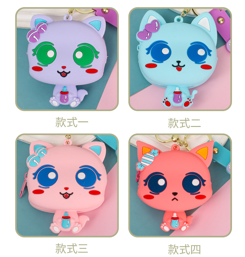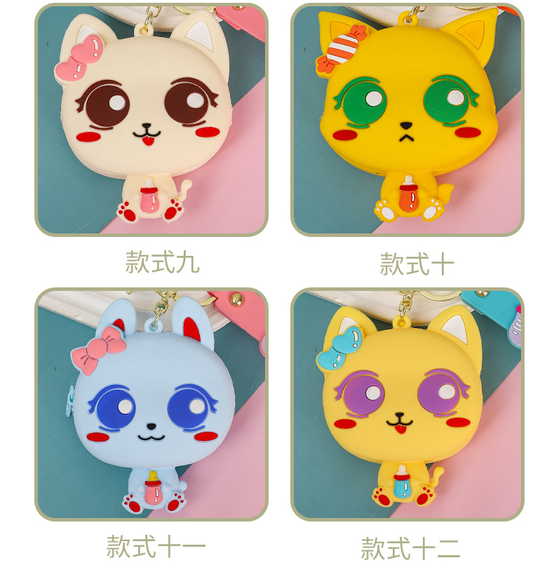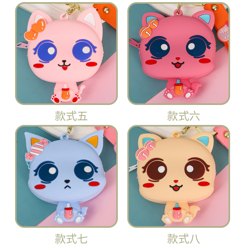 만화 귀여운 실리콘 고양이 동전 지갑 키 체인 여성 지갑 교수형 장식품 어린이 학교 가방 펜던트 선물 가방