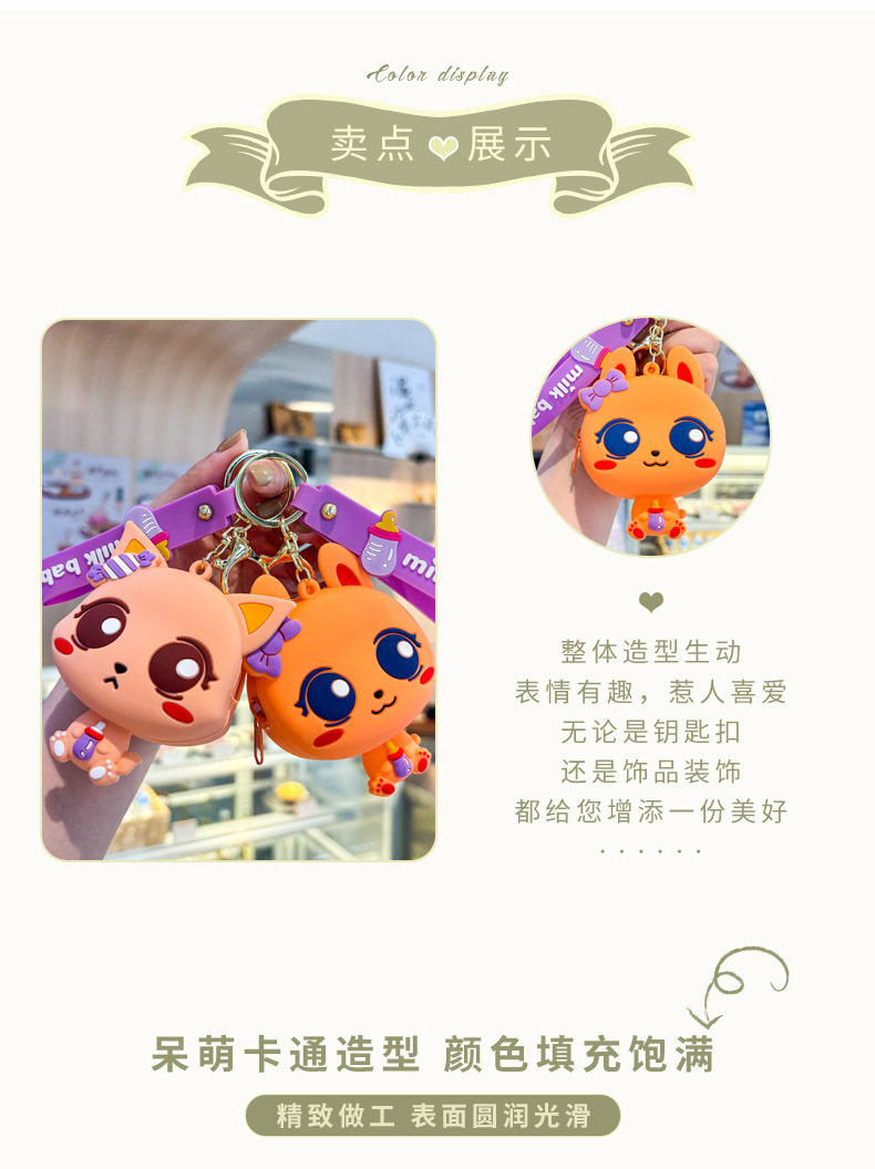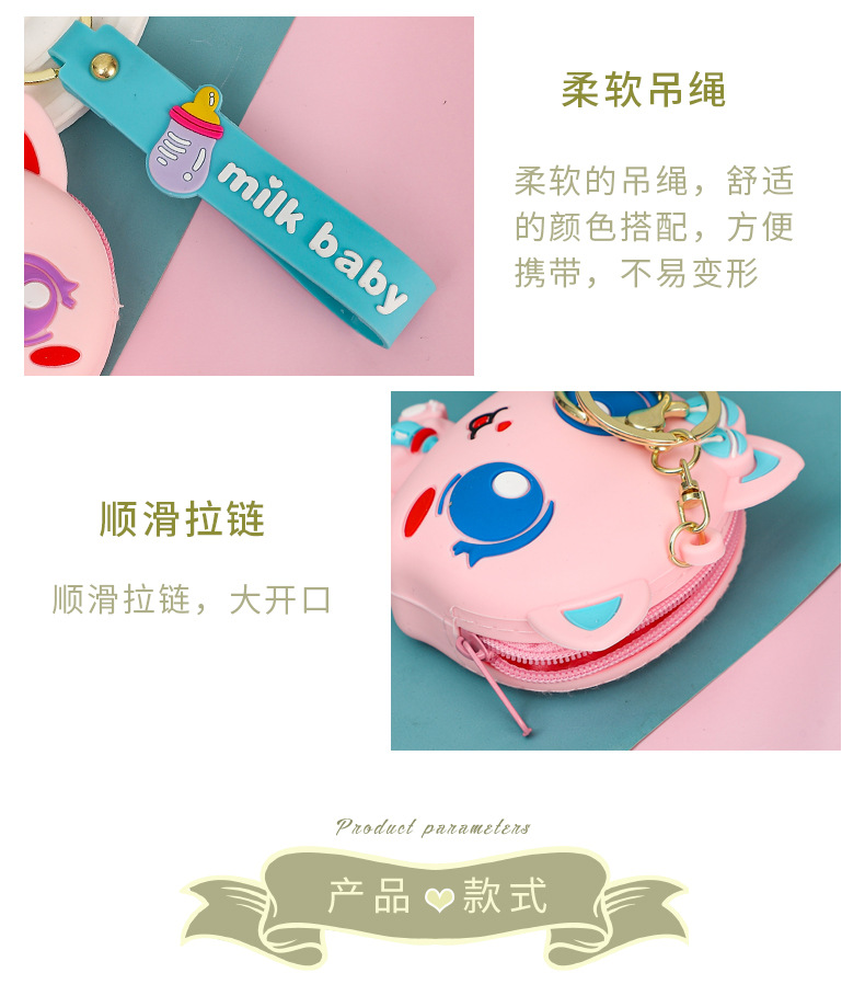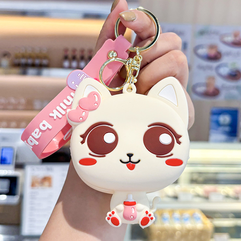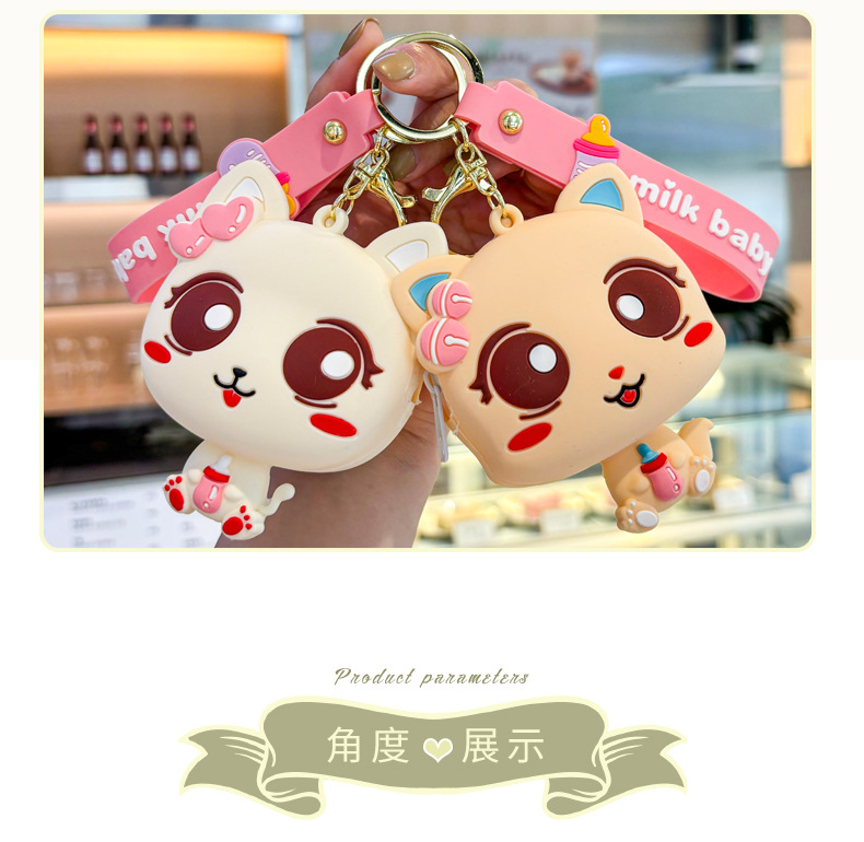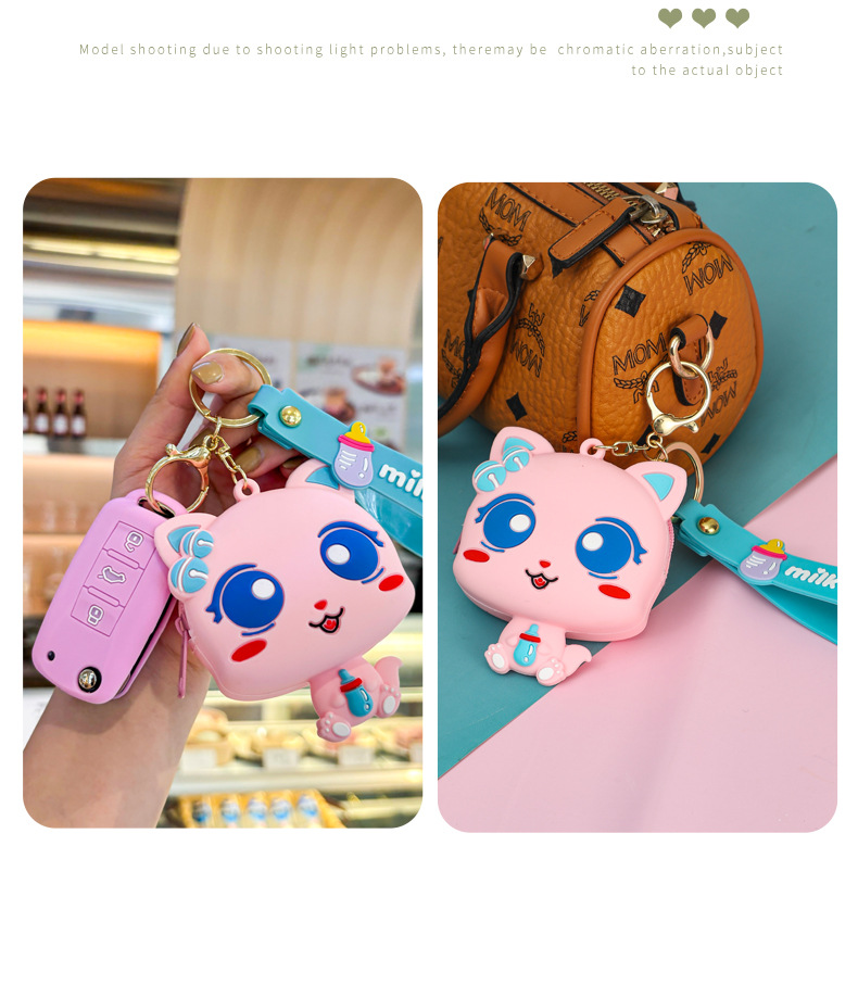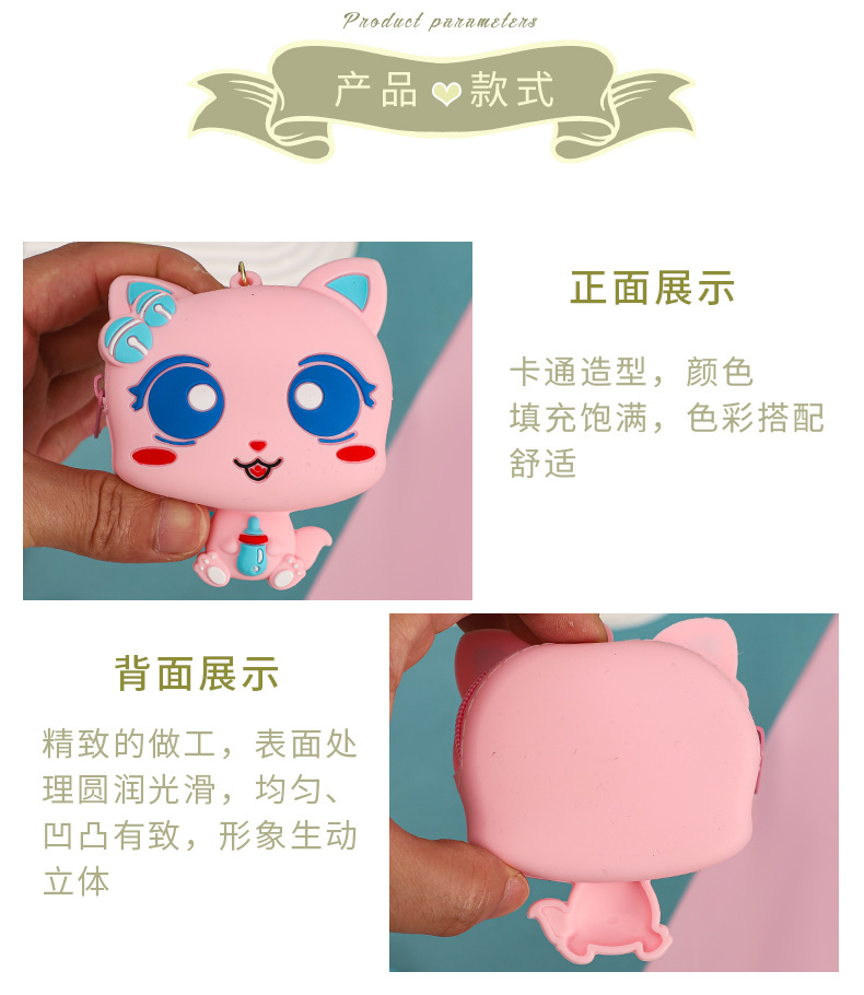 만화 귀여운 실리콘 고양이 동전 지갑 키 체인 여성 지갑 교수형 장식품 어린이 학교 가방 펜던트 선물 가방