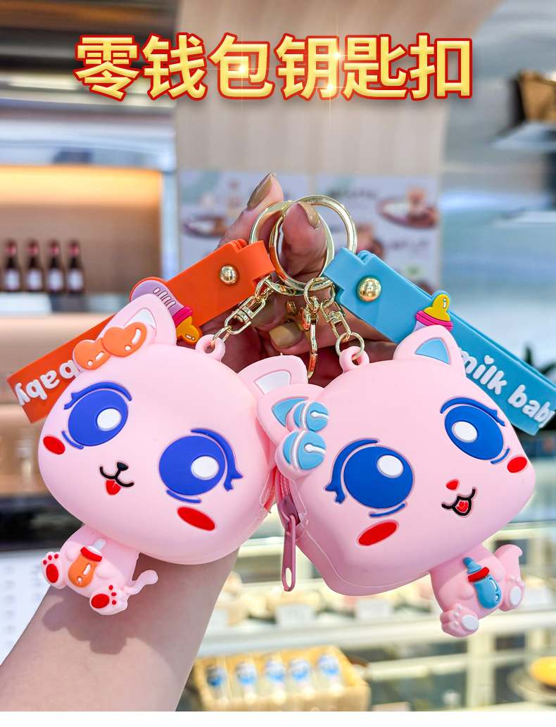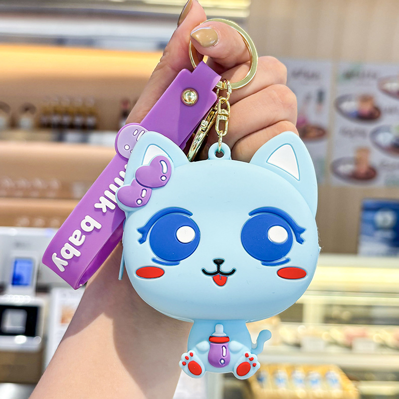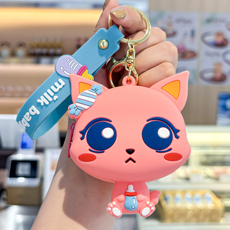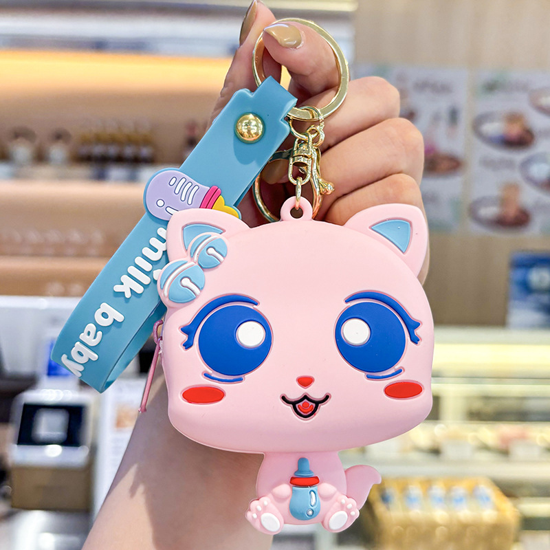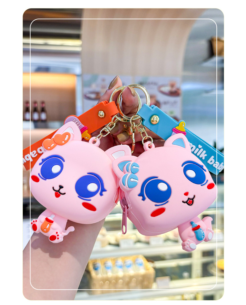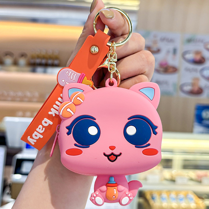 만화 귀여운 실리콘 고양이 동전 지갑 키 체인 여성 지갑 교수형 장식품 어린이 학교 가방 펜던트 선물 가방스토어 가기