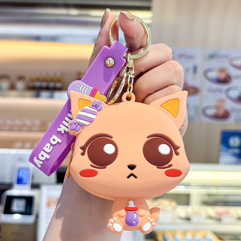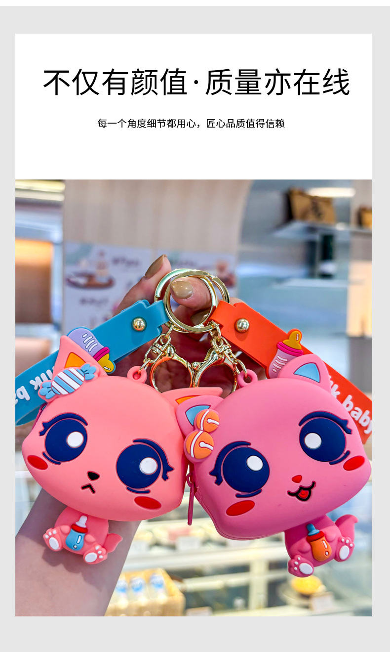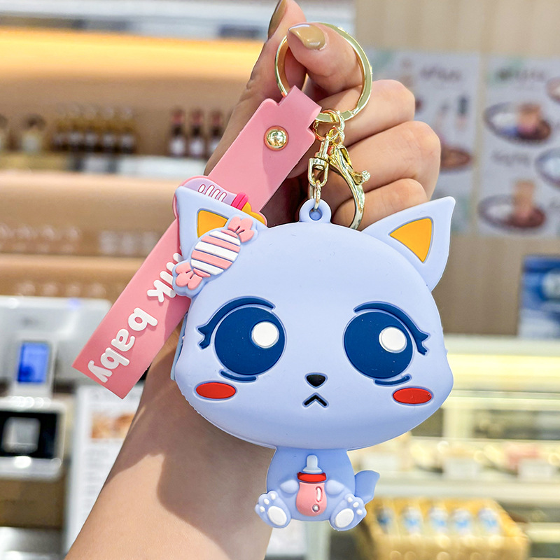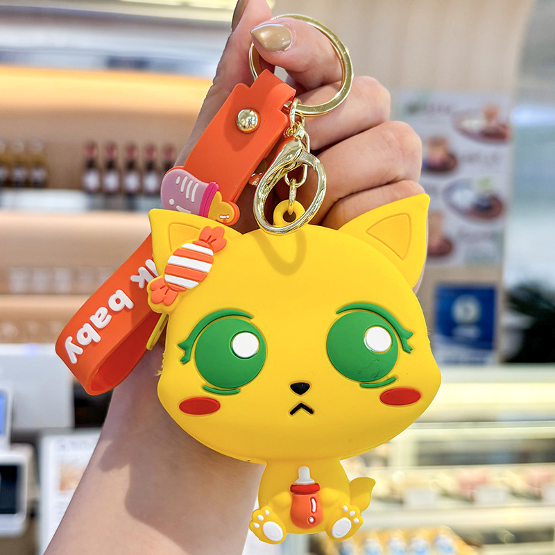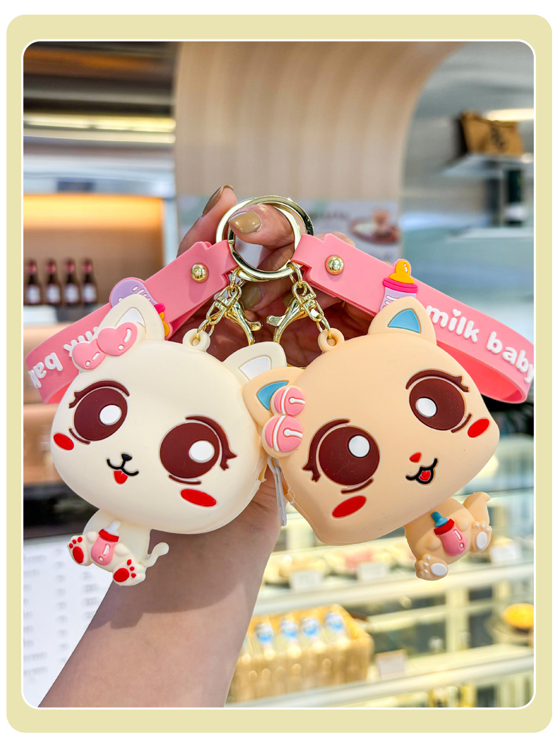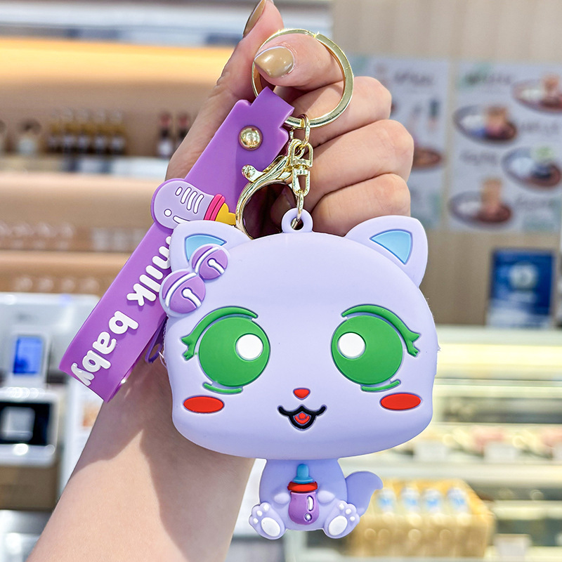 만화 귀여운 실리콘 고양이 동전 지갑 키 체인 여성 지갑 교수형 장식품 어린이 학교 가방 펜던트 선물 가방스토어 가기