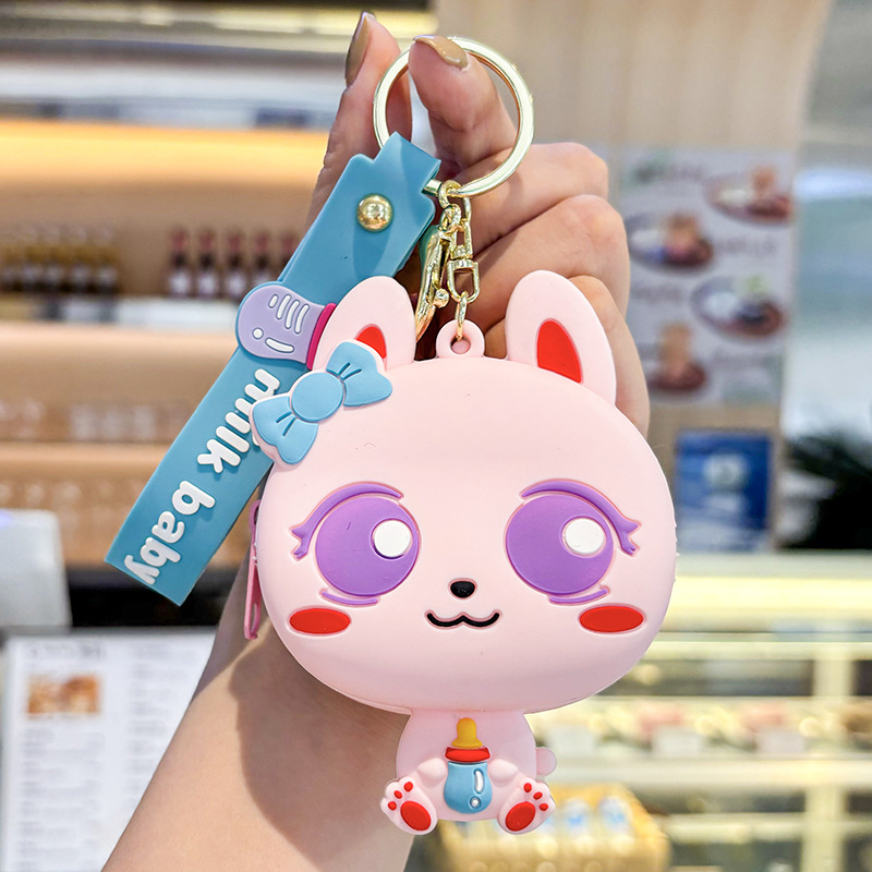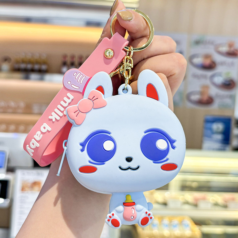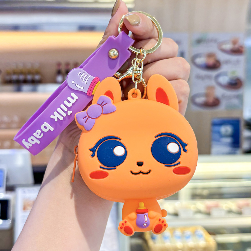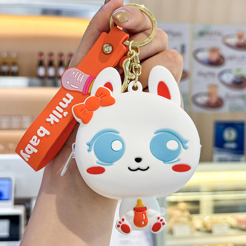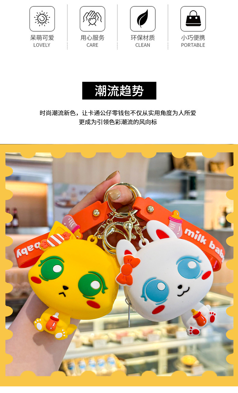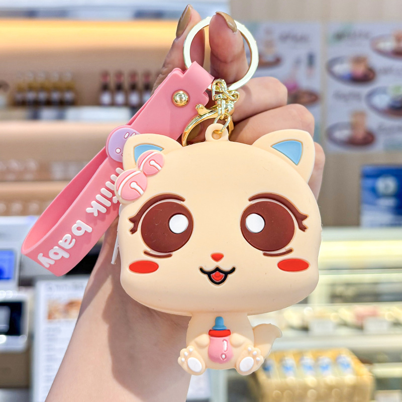 만화 귀여운 실리콘 고양이 동전 지갑 키 체인 여성 지갑 교수형 장식품 어린이 학교 가방 펜던트 선물 가방스토어 가기