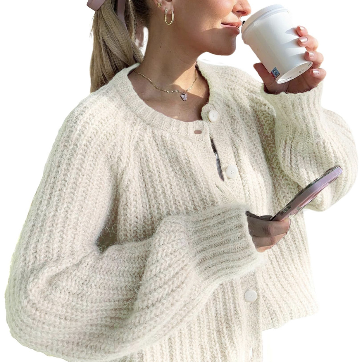 아마존 2024 유럽과 미국의 가을과 겨울 폭발 느슨한 게으른 컬러 싱글 브레스트 니트 카디건 스웨터 코트 여성