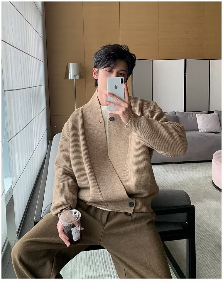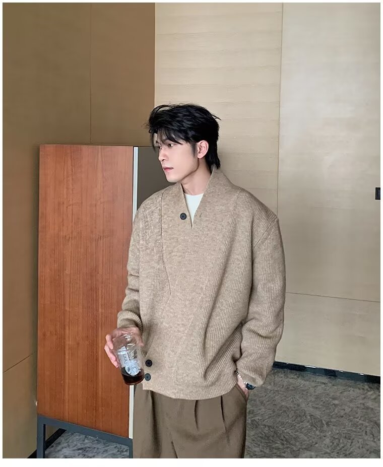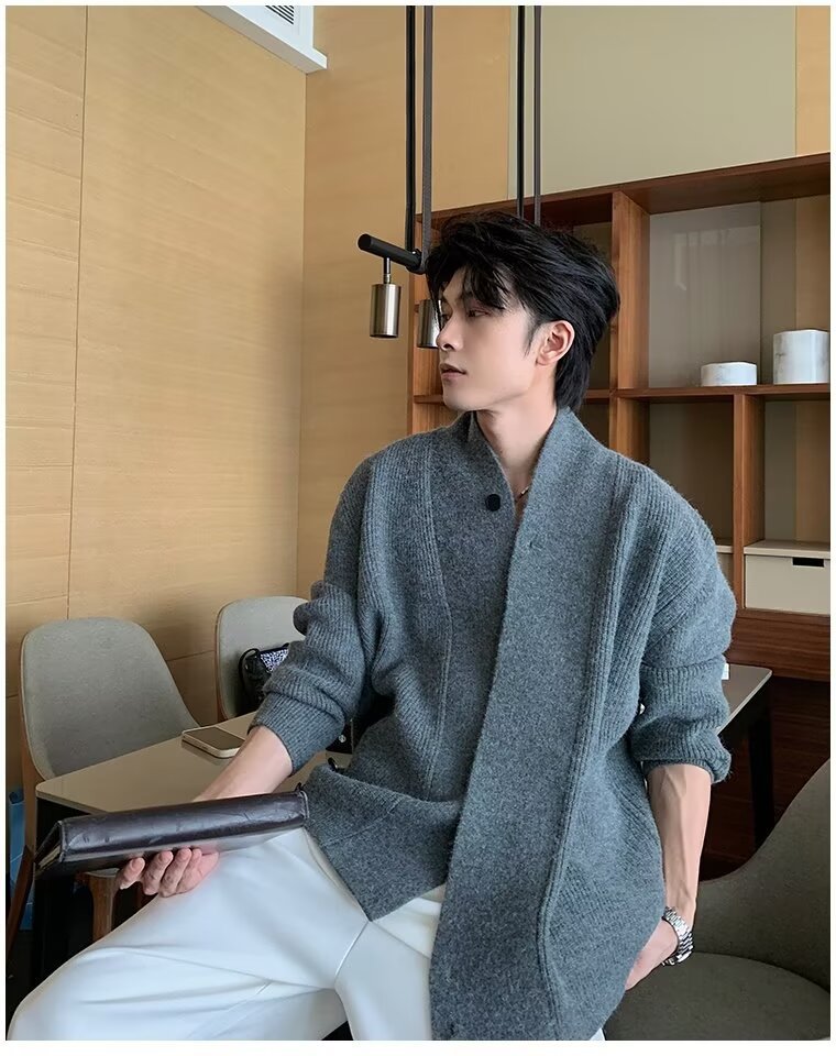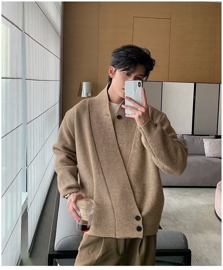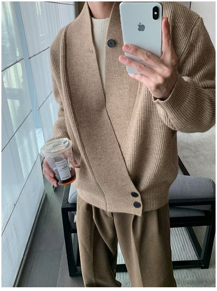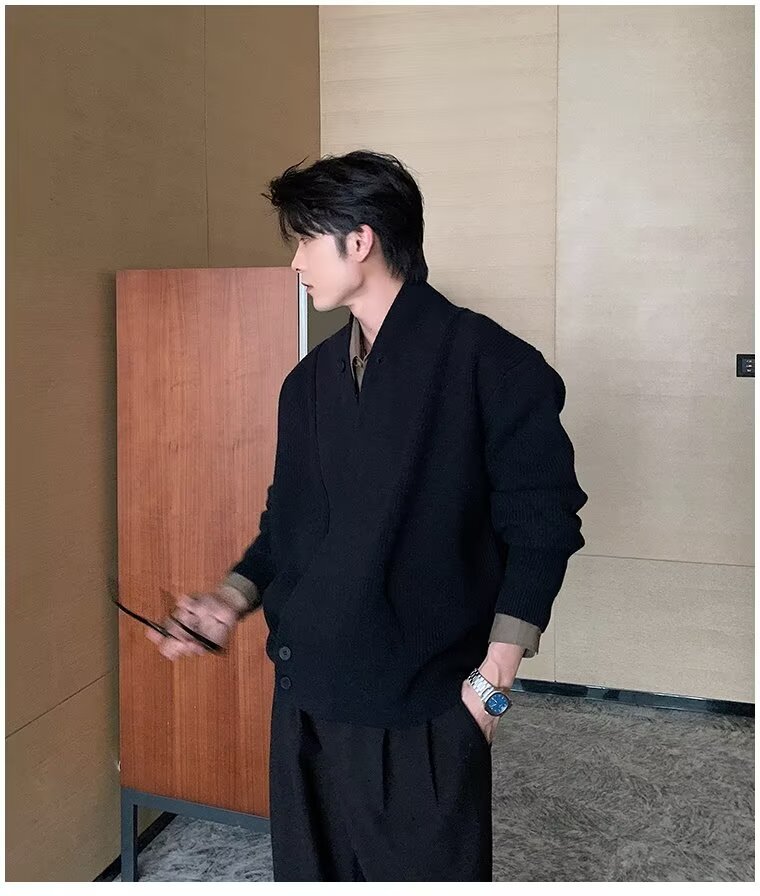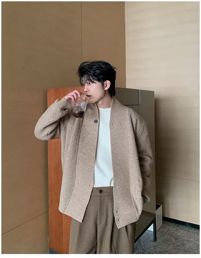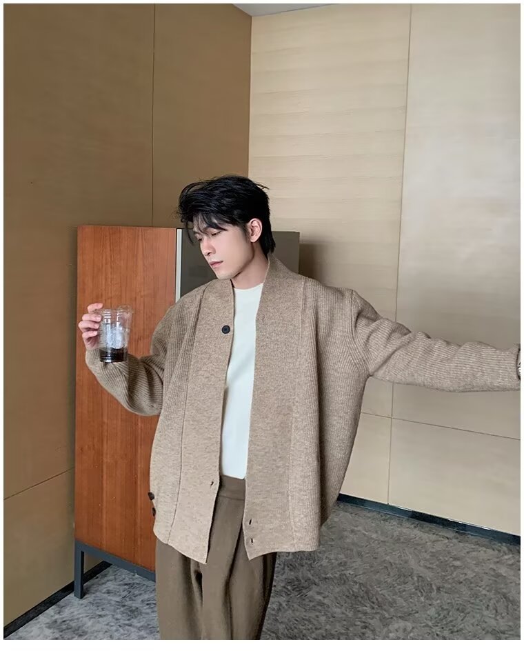 남자 2024 가을 겨울 새로운 카디건 스웨터 남자 아메리칸 스타일 레트로 캐주얼 게으른 V 넥 스웨터 재킷 남성 의류스토어 가기