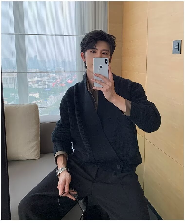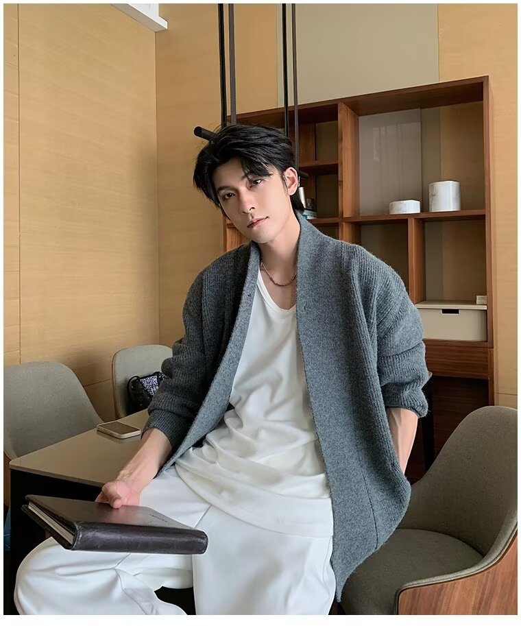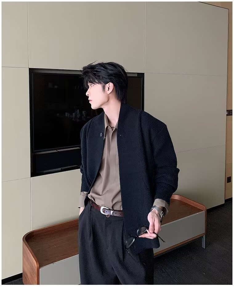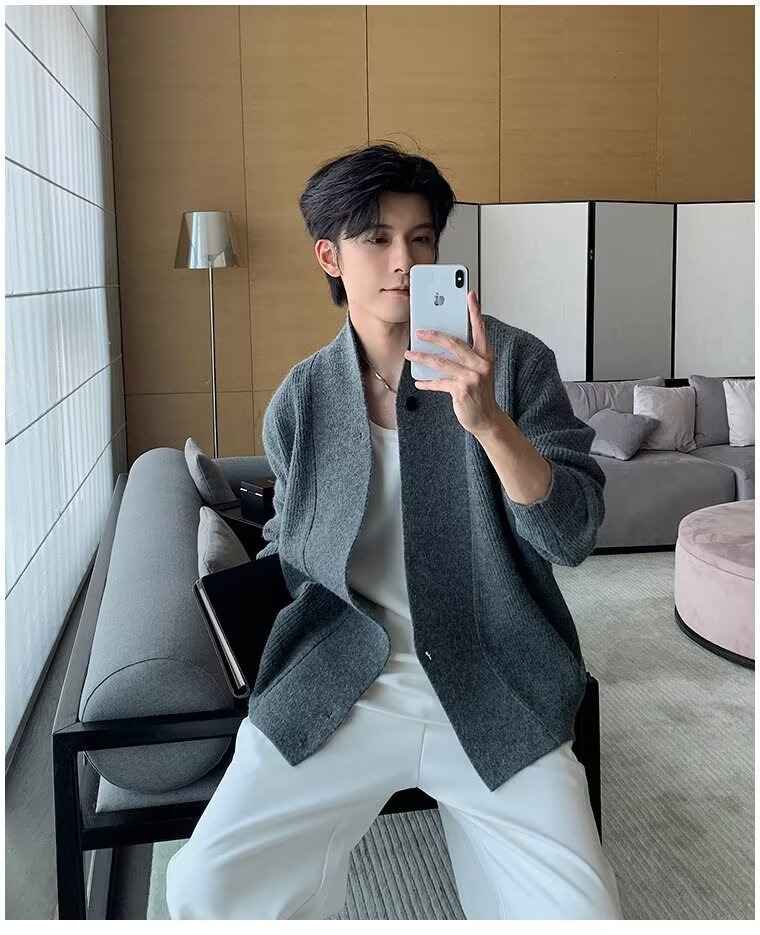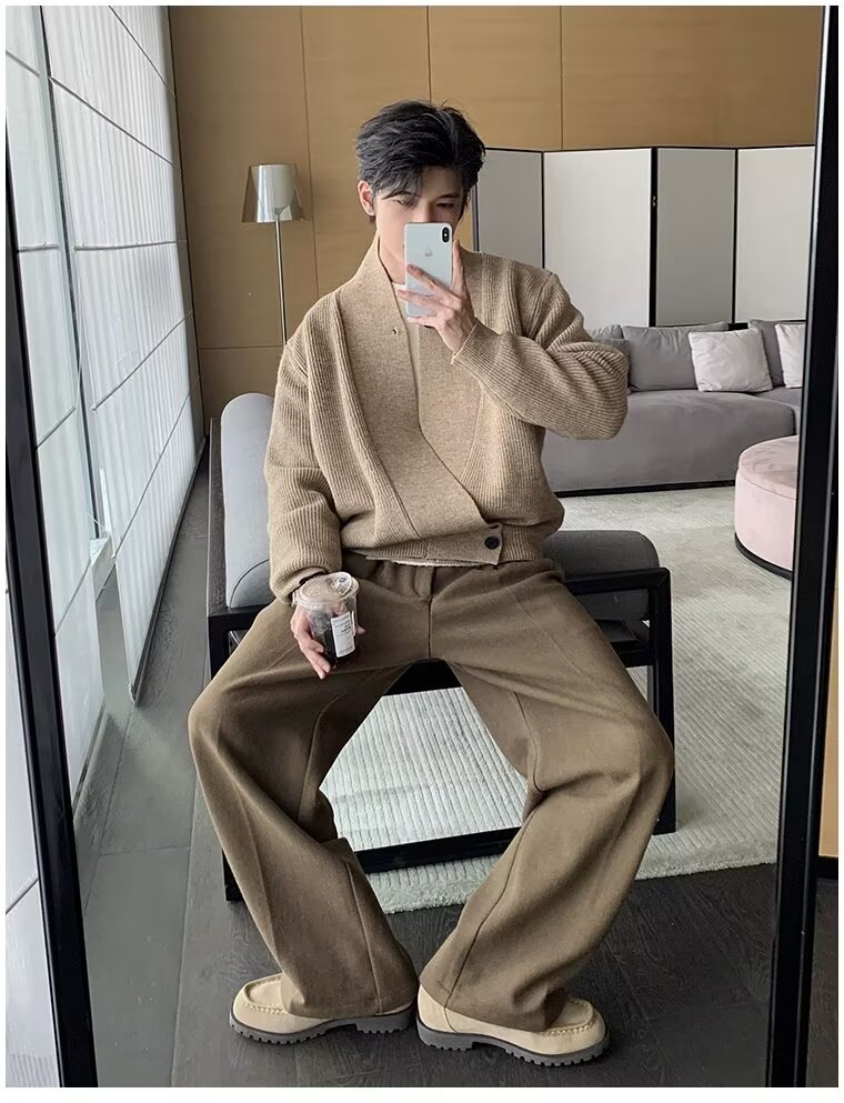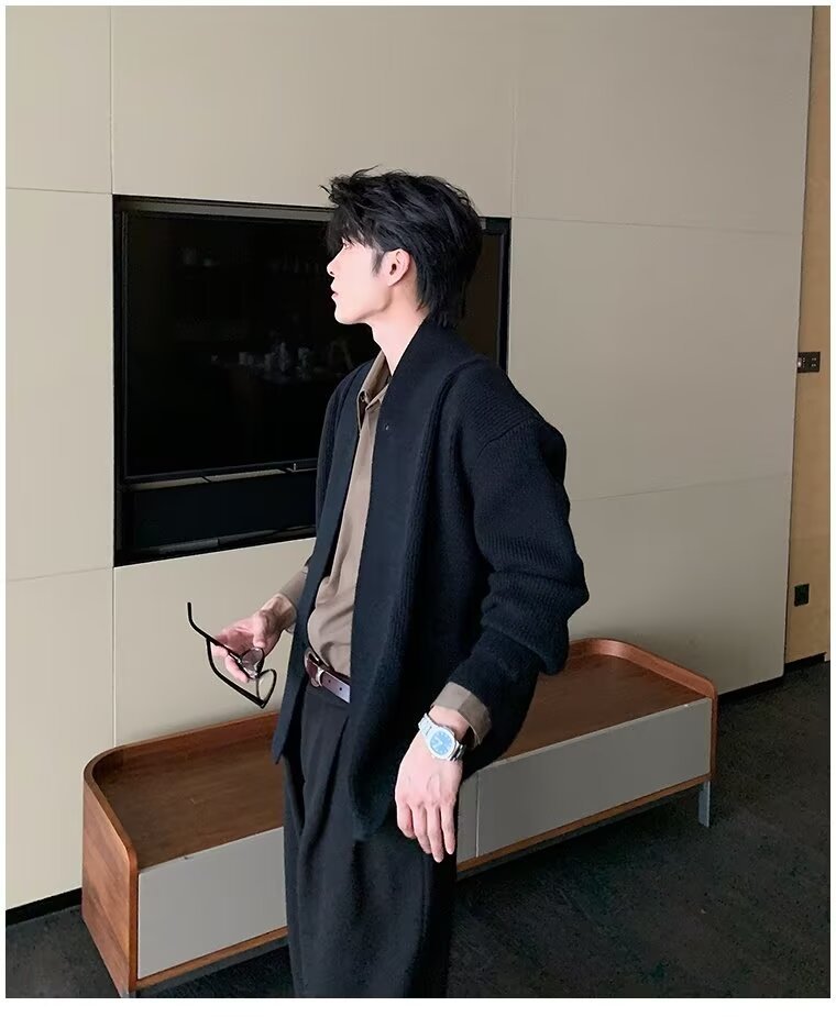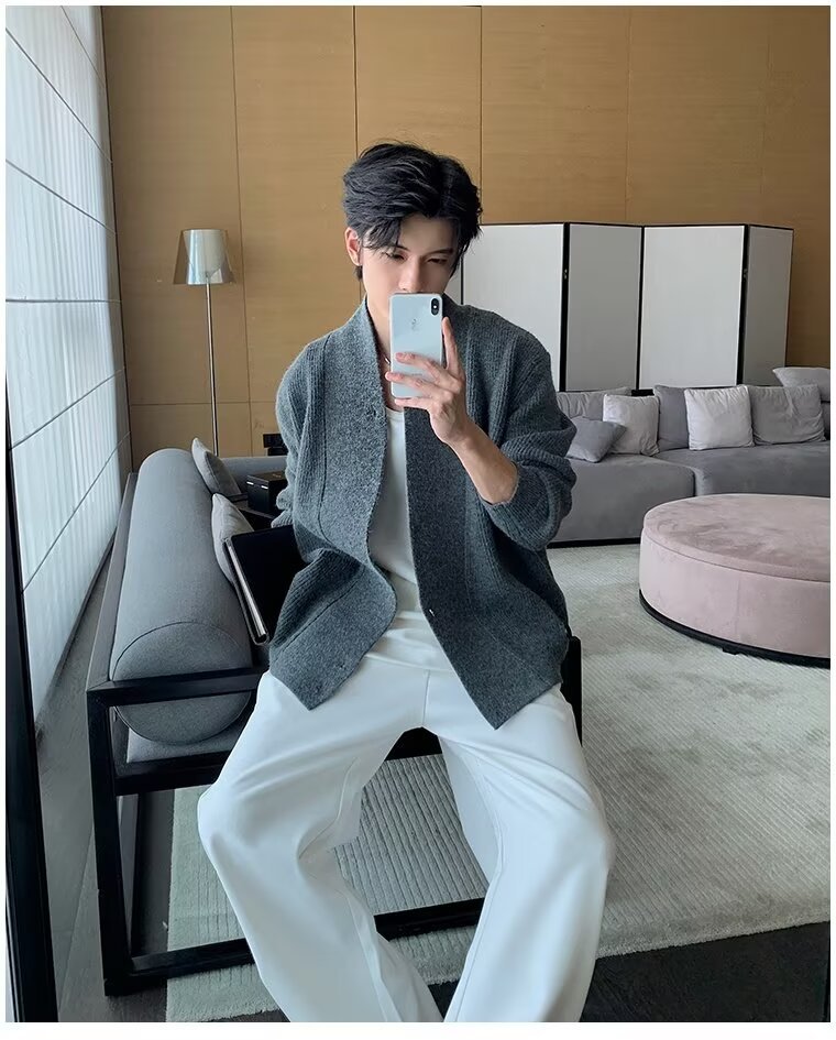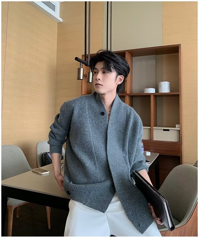 남자 2024 가을 겨울 새로운 카디건 스웨터 남자 아메리칸 스타일 레트로 캐주얼 게으른 V 넥 스웨터 재킷 남성 의류스토어 가기