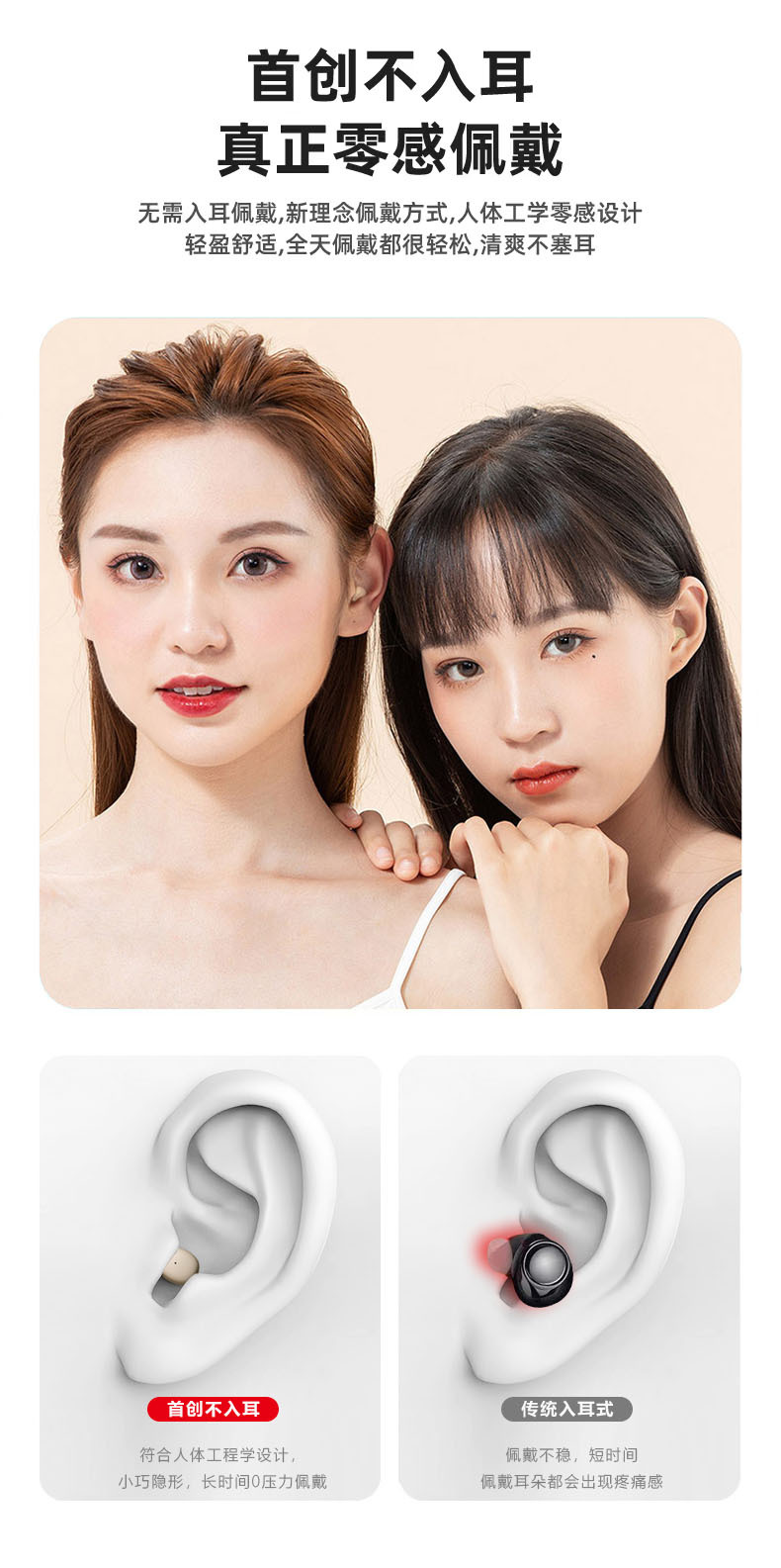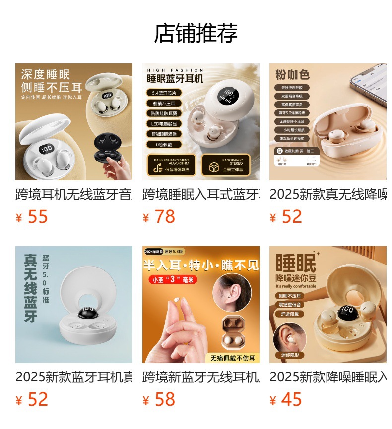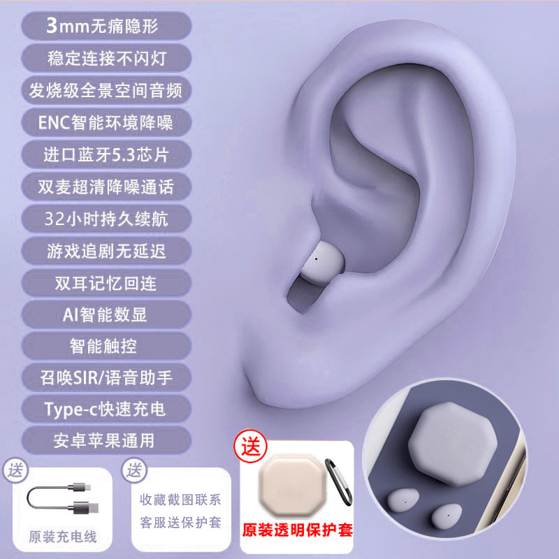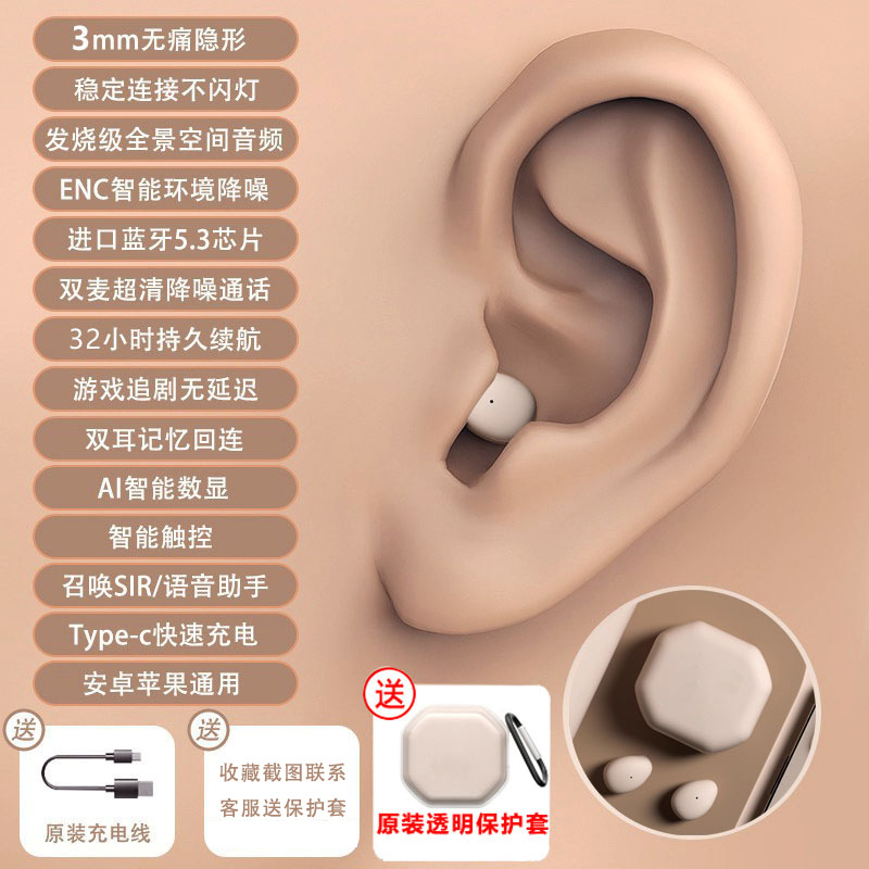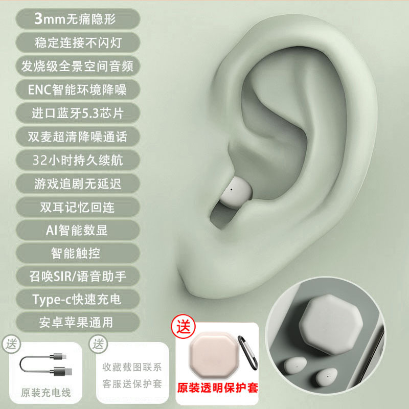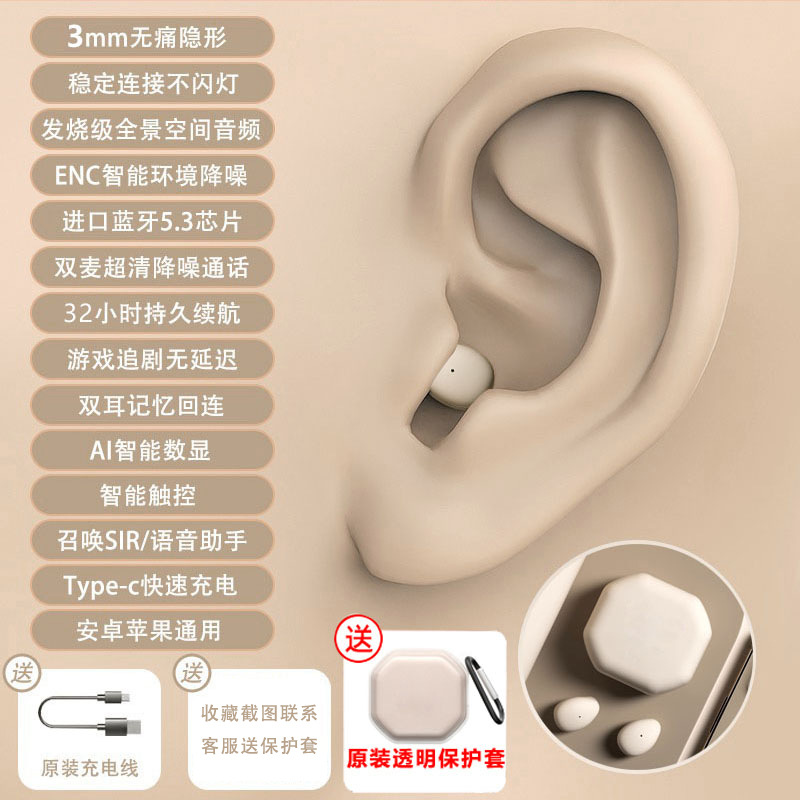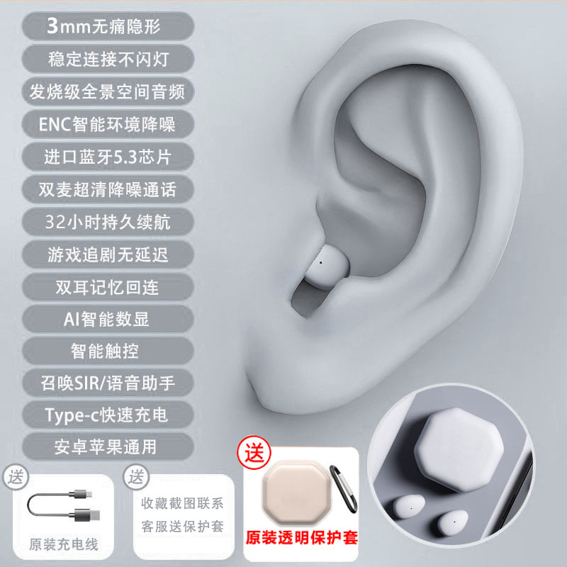 국경을 넘는 새로운 블루투스 무선 이어폰, 인이어형, 긴 배터리 수명, 소음 감소, 수면용, 미니 블루투스 이어폰, 숨김형스토어 가기