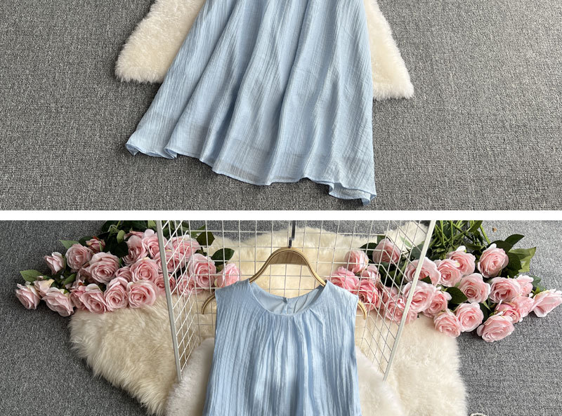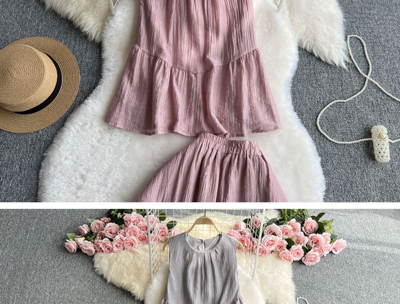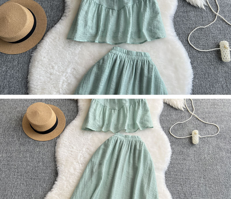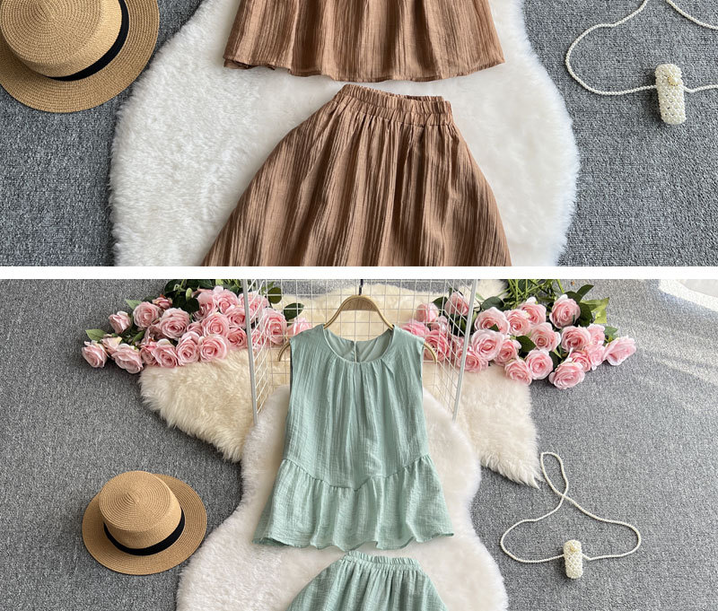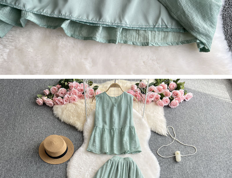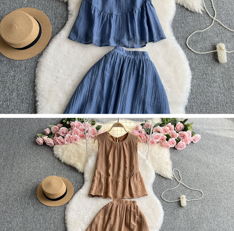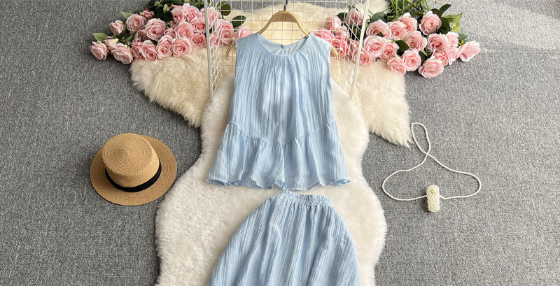부드러운 스타일 원피스 여성 프랑스 스타일 달콤한 느슨한 민소매 탑 높은 허리 슬리밍 대형 스윙 스커트 투피스 세트스토어 가기