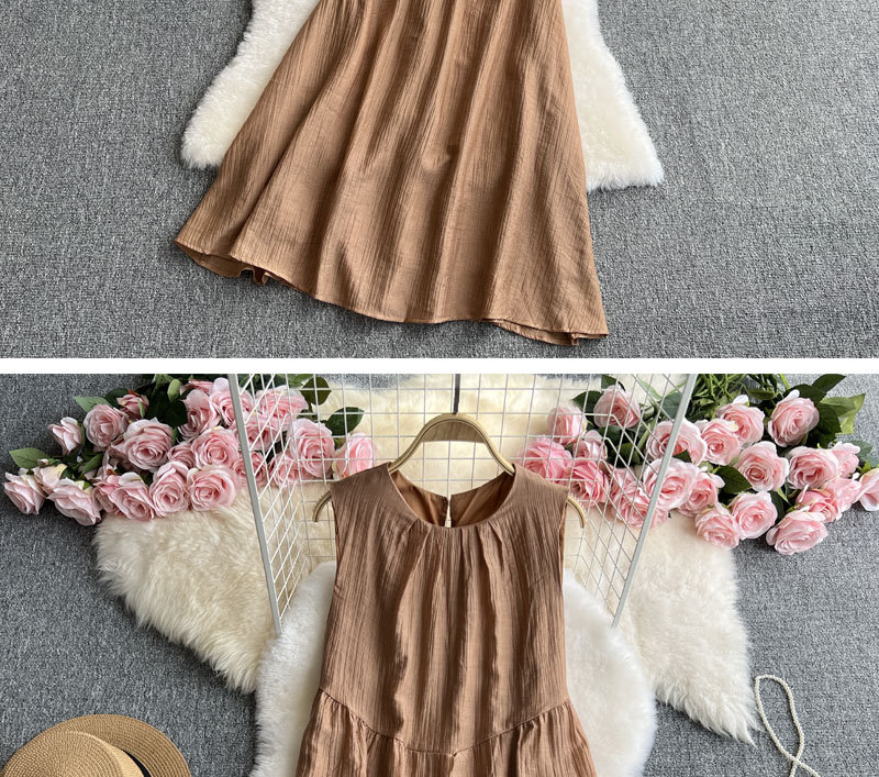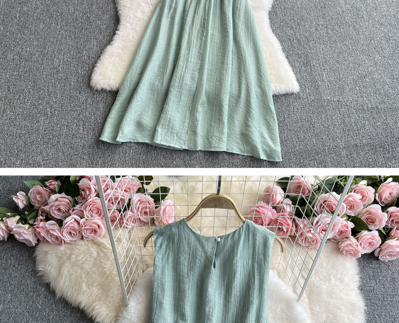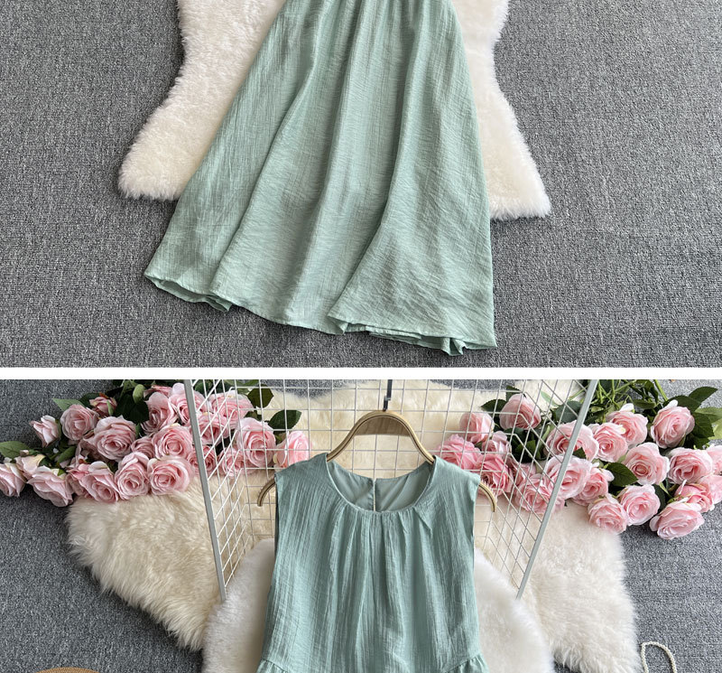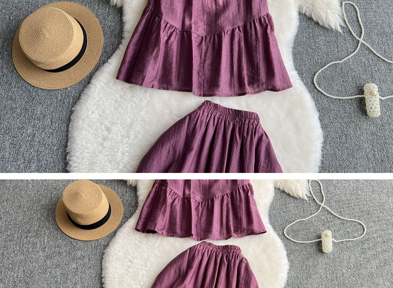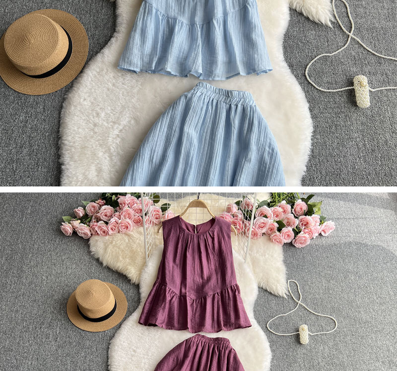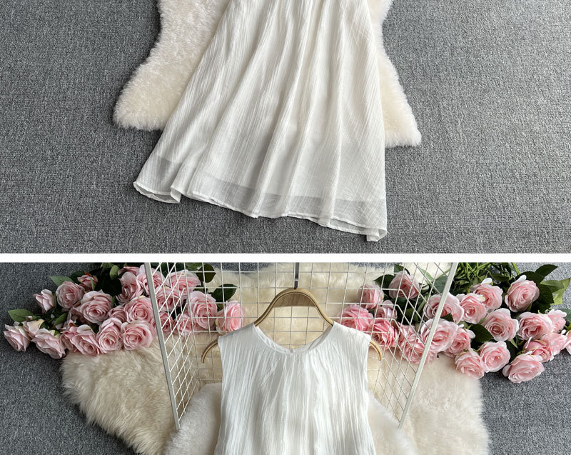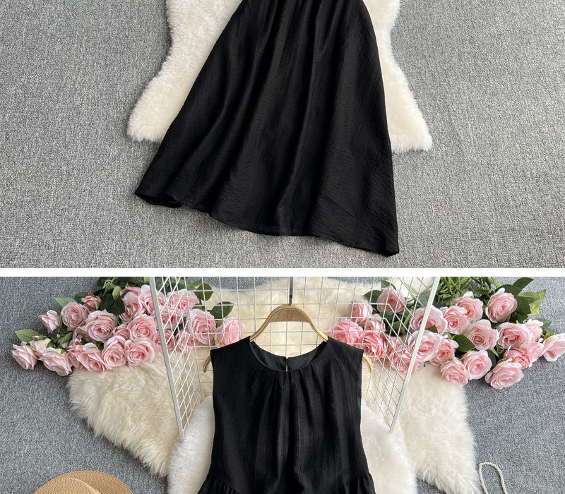 부드러운 스타일 원피스 여성 프랑스 스타일 달콤한 느슨한 민소매 탑 높은 허리 슬리밍 대형 스윙 스커트 투피스 세트스토어 가기