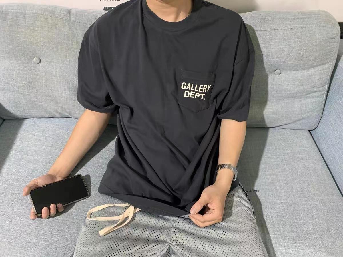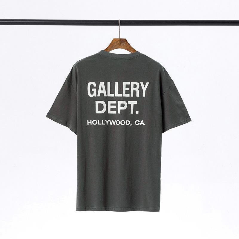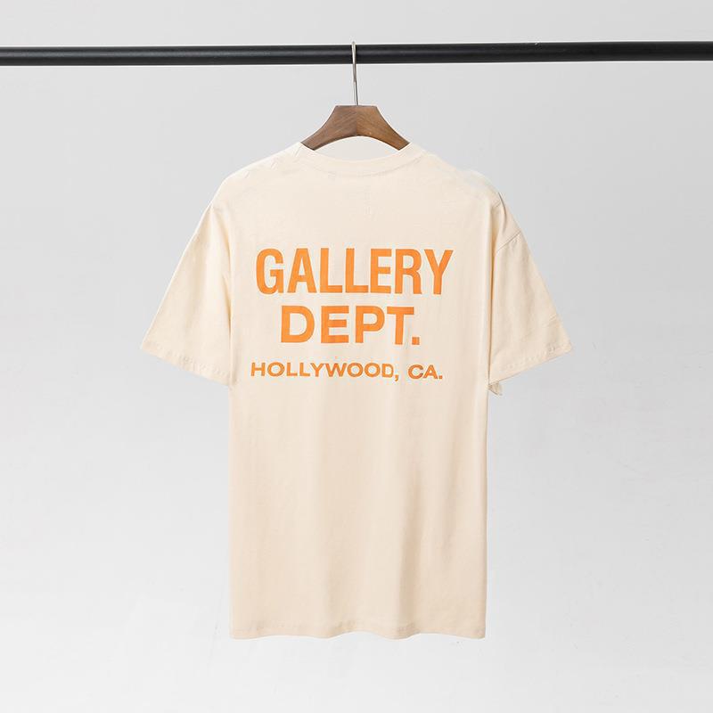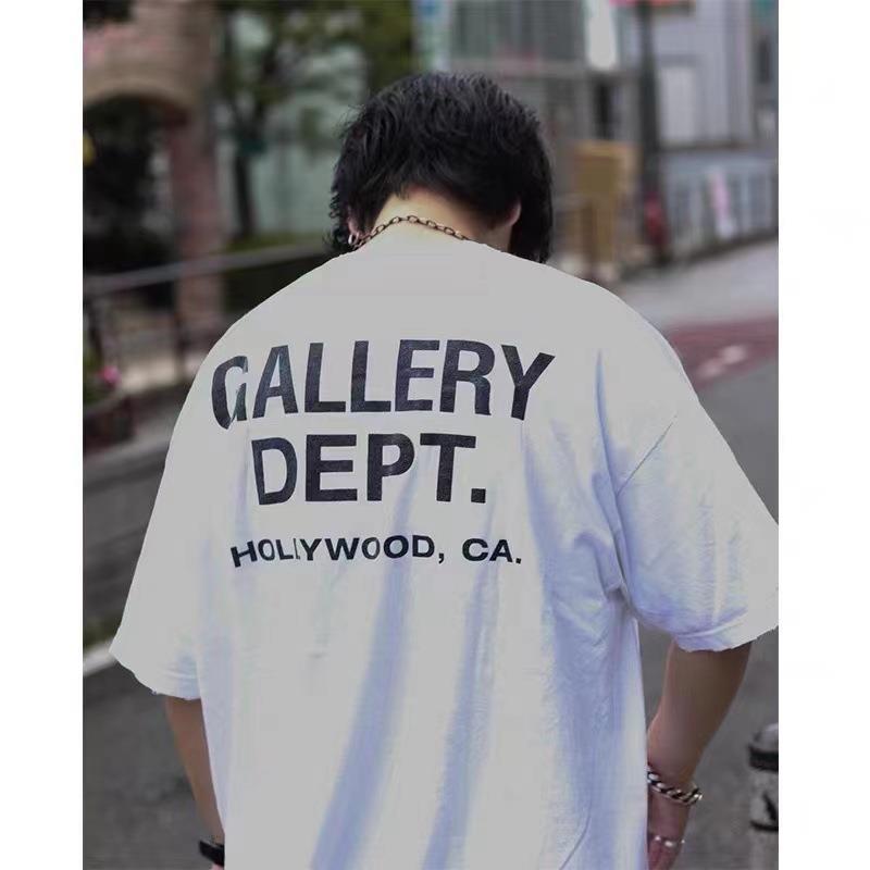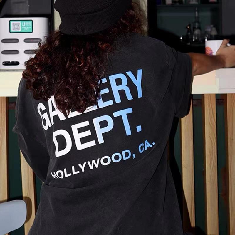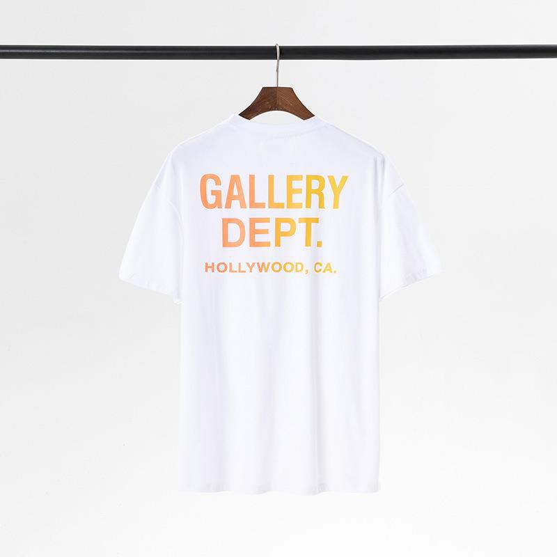 GALLERY 트렌디 브랜드 DEPT 클래식 레터 슬로건 로고 그라디언트 반팔 티셔츠 남성과 여성의 타나바타 커플 원피스스토어 가기