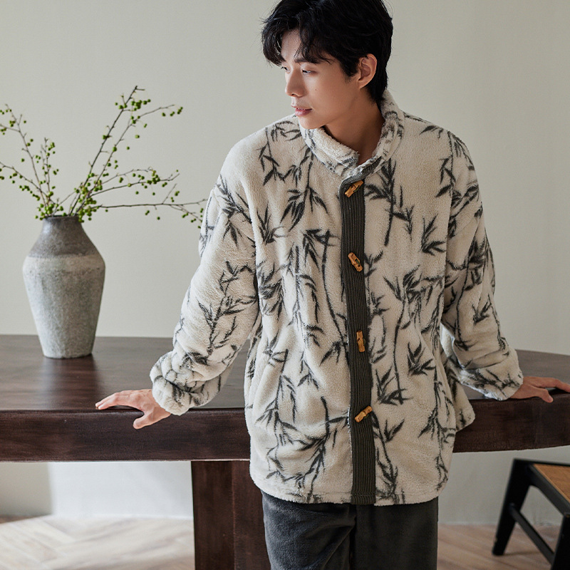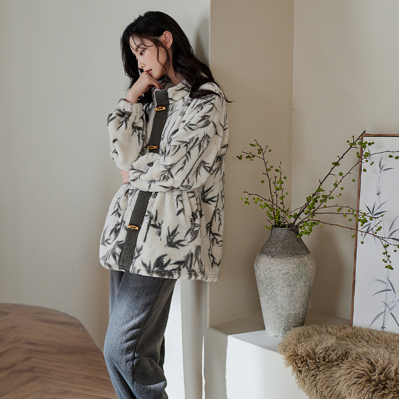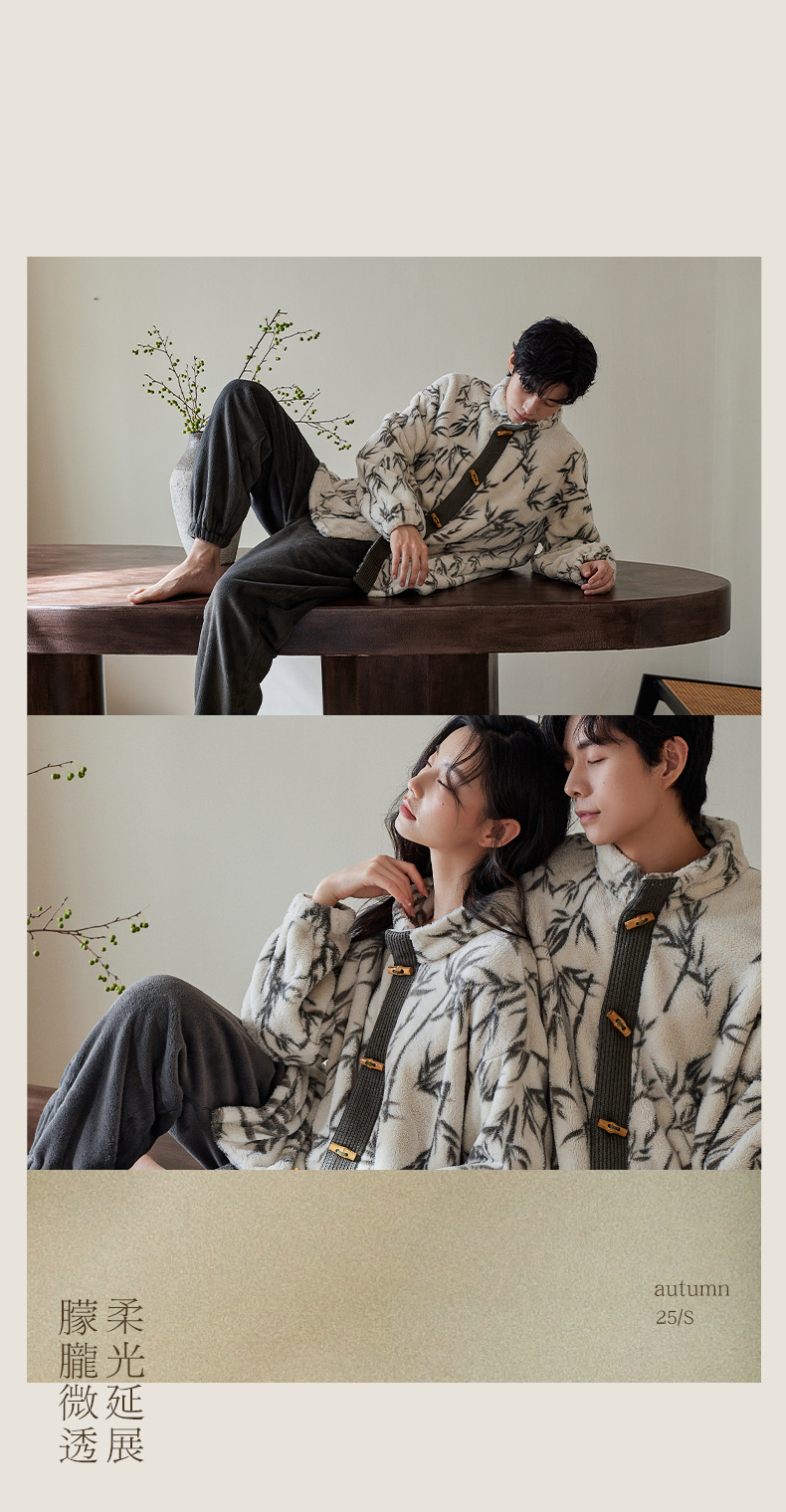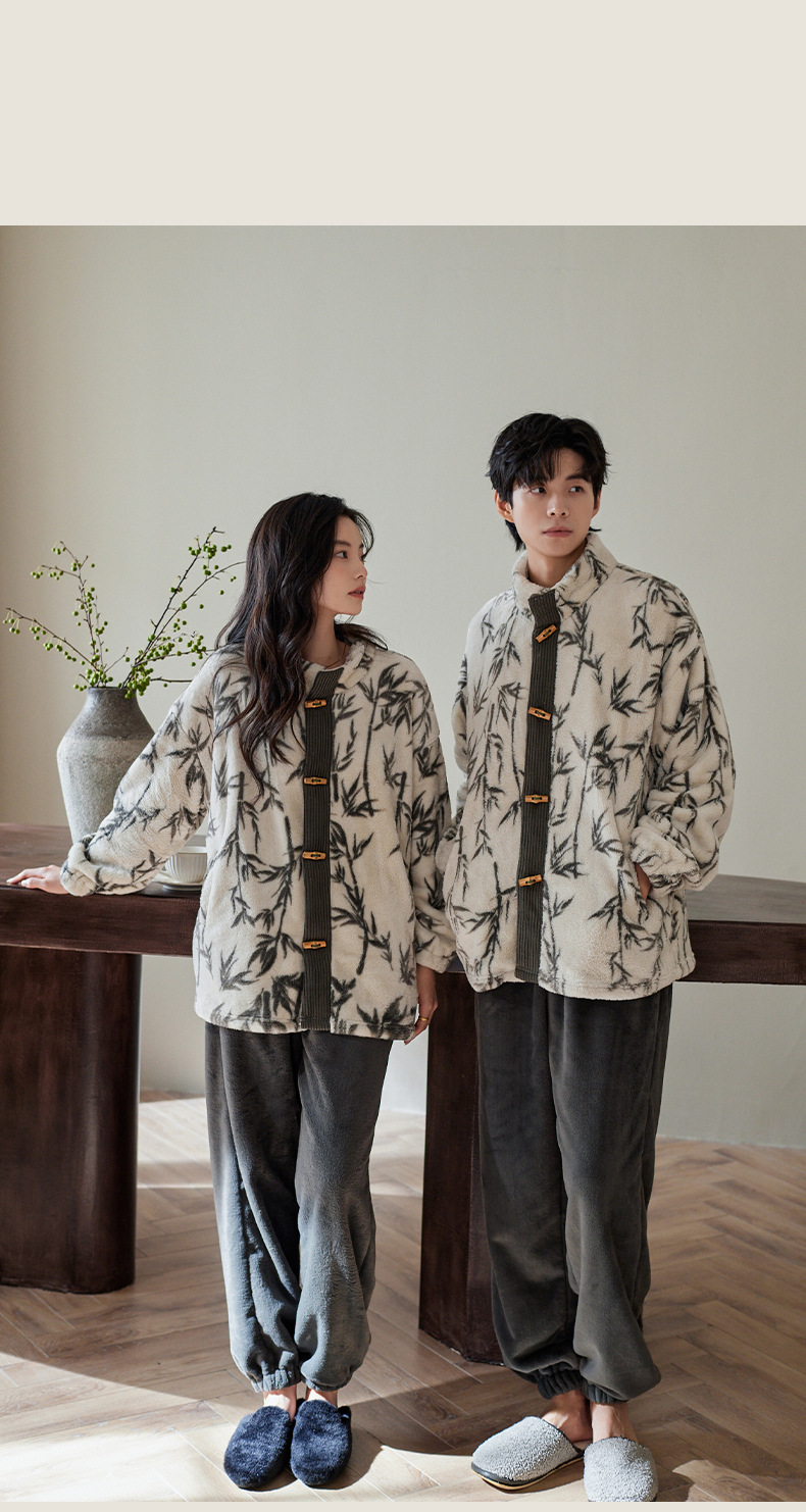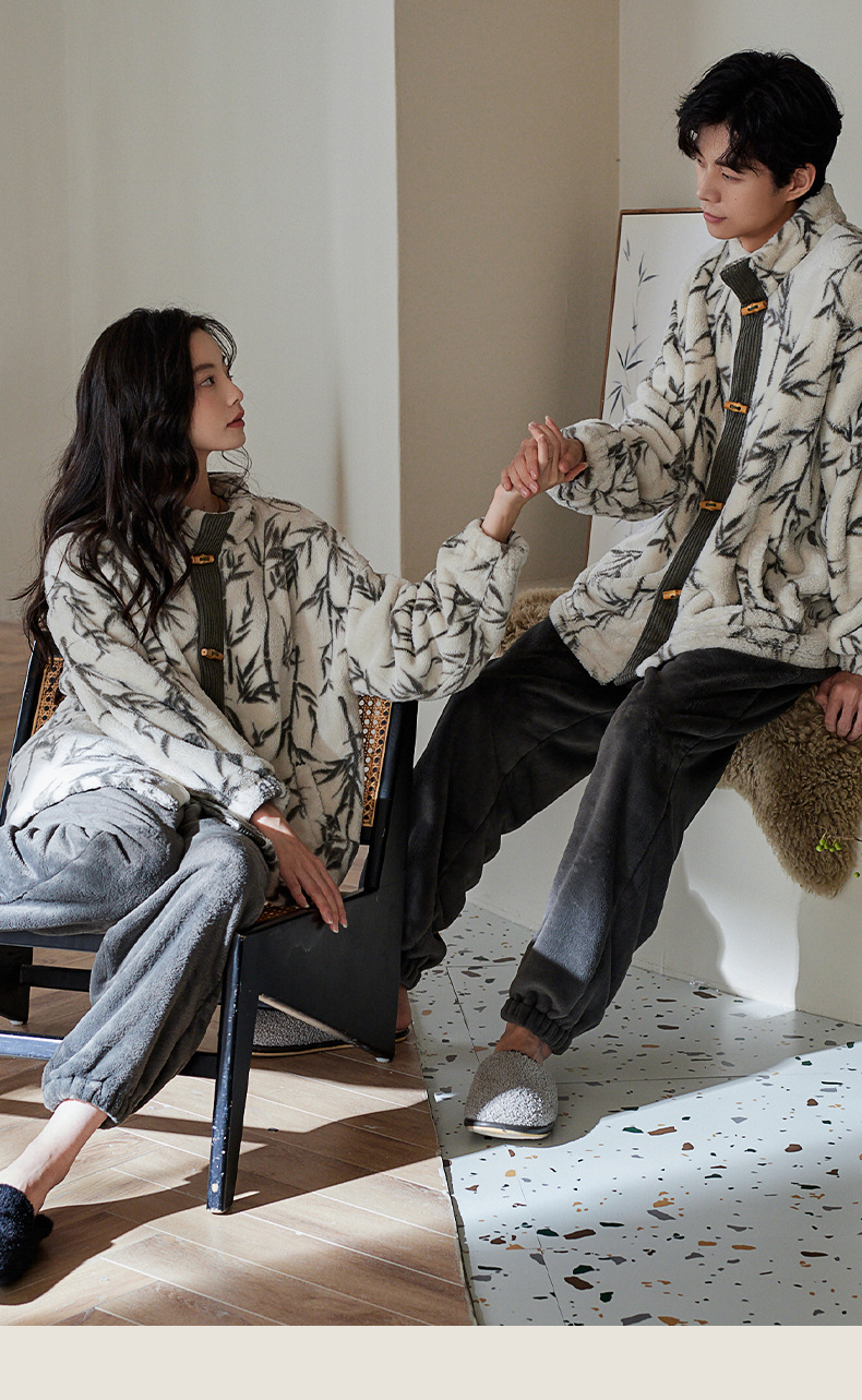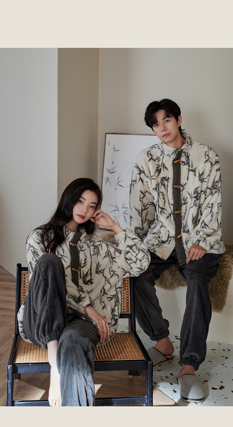 커플의 잠옷 겨울 산호 양털 두꺼운 기모 국가 스타일 고급 따뜻한 유지 남성 홈 의류 여성의 세트 가을과 겨울