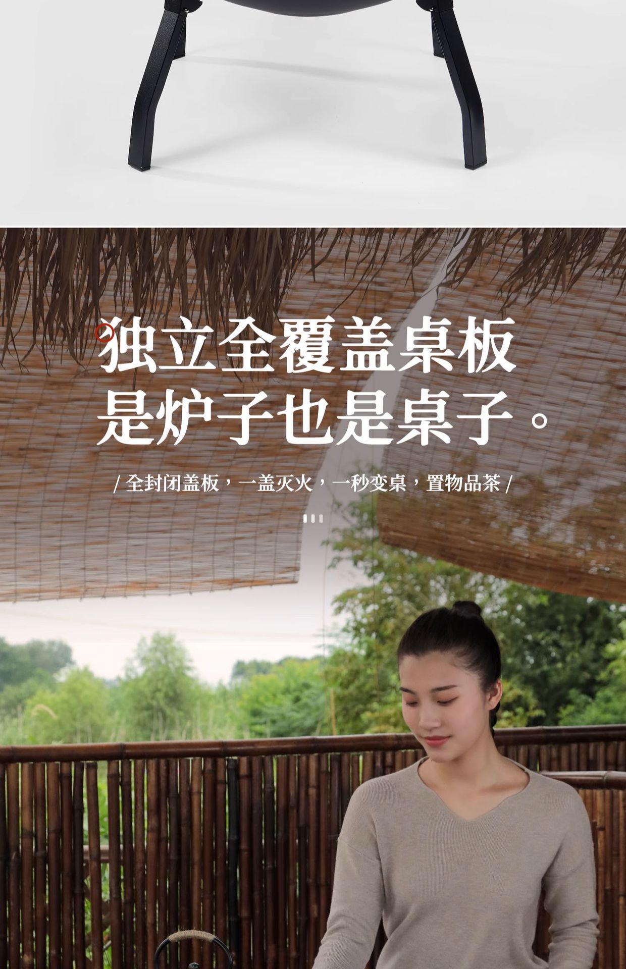 • 두꺼운 접이식 스토브 + 그릴 커버 + 1.2L 주철 주전자 + 강철 숯 3kg개(6개 세트 + 알코올 블록 + 숯 클립 포함)