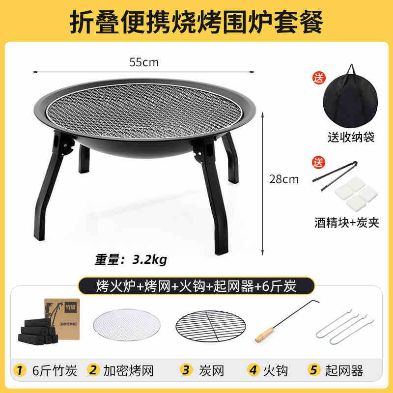 • 두꺼운 접이식 바비큐 난로 [직경 55cm] 무료 6종 세트