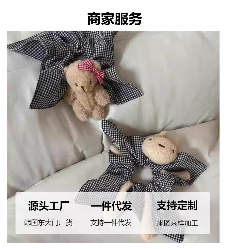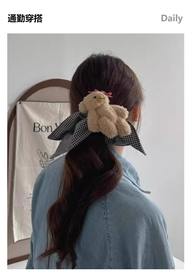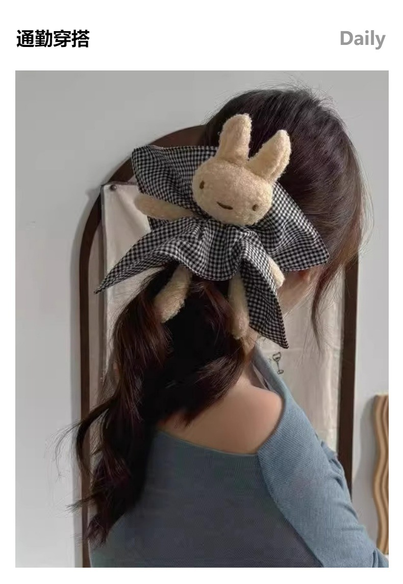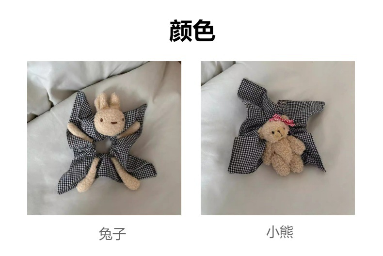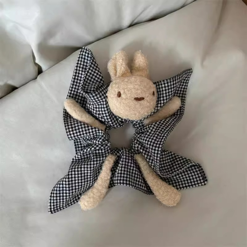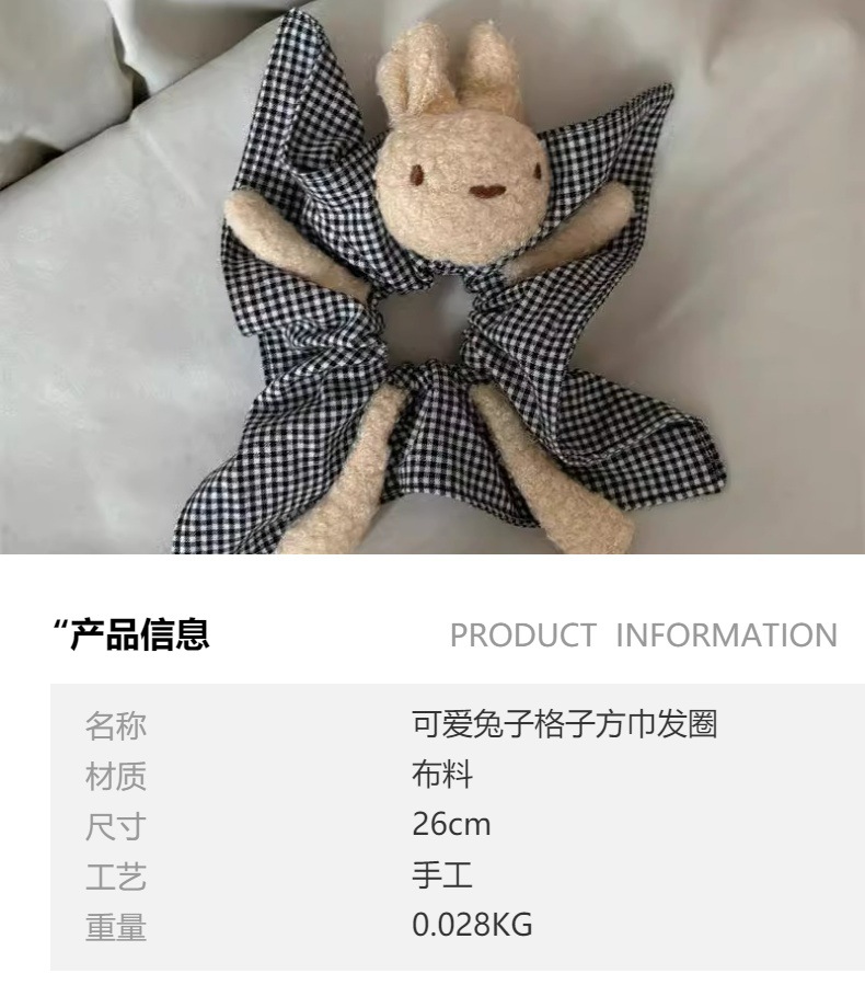 가을과 겨울 새로운 귀여운 올 매치 흑백 격자 무늬 만화 토끼 광장 스카프 헤어 로프 헤어 액세서리 달콤한 인터넷 축하스토어 가기