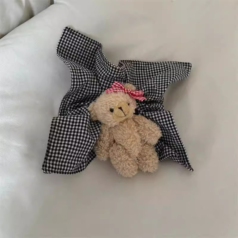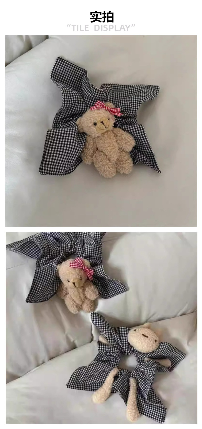 가을과 겨울 새로운 귀여운 올 매치 흑백 격자 무늬 만화 토끼 광장 스카프 헤어 로프 헤어 액세서리 달콤한 인터넷 축하